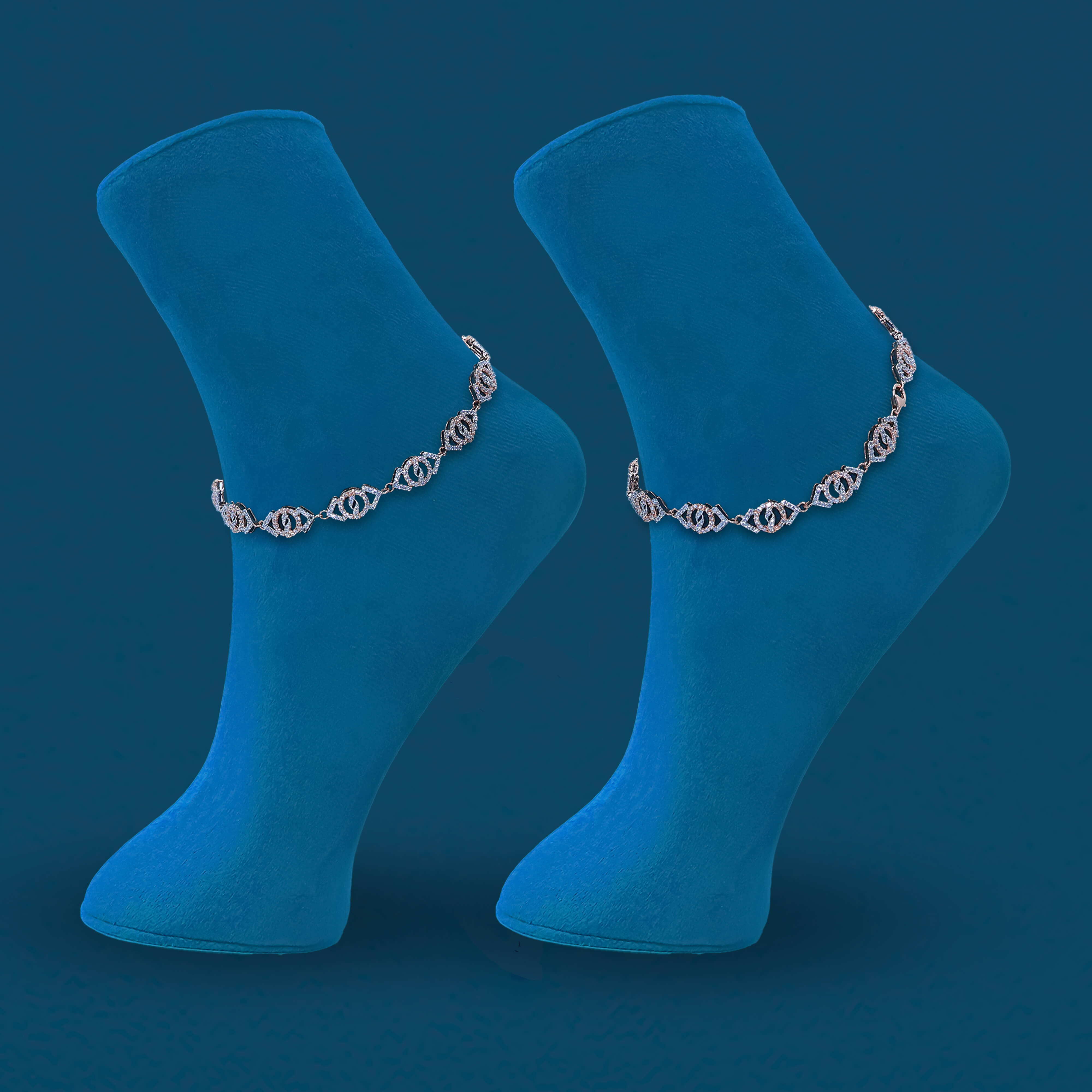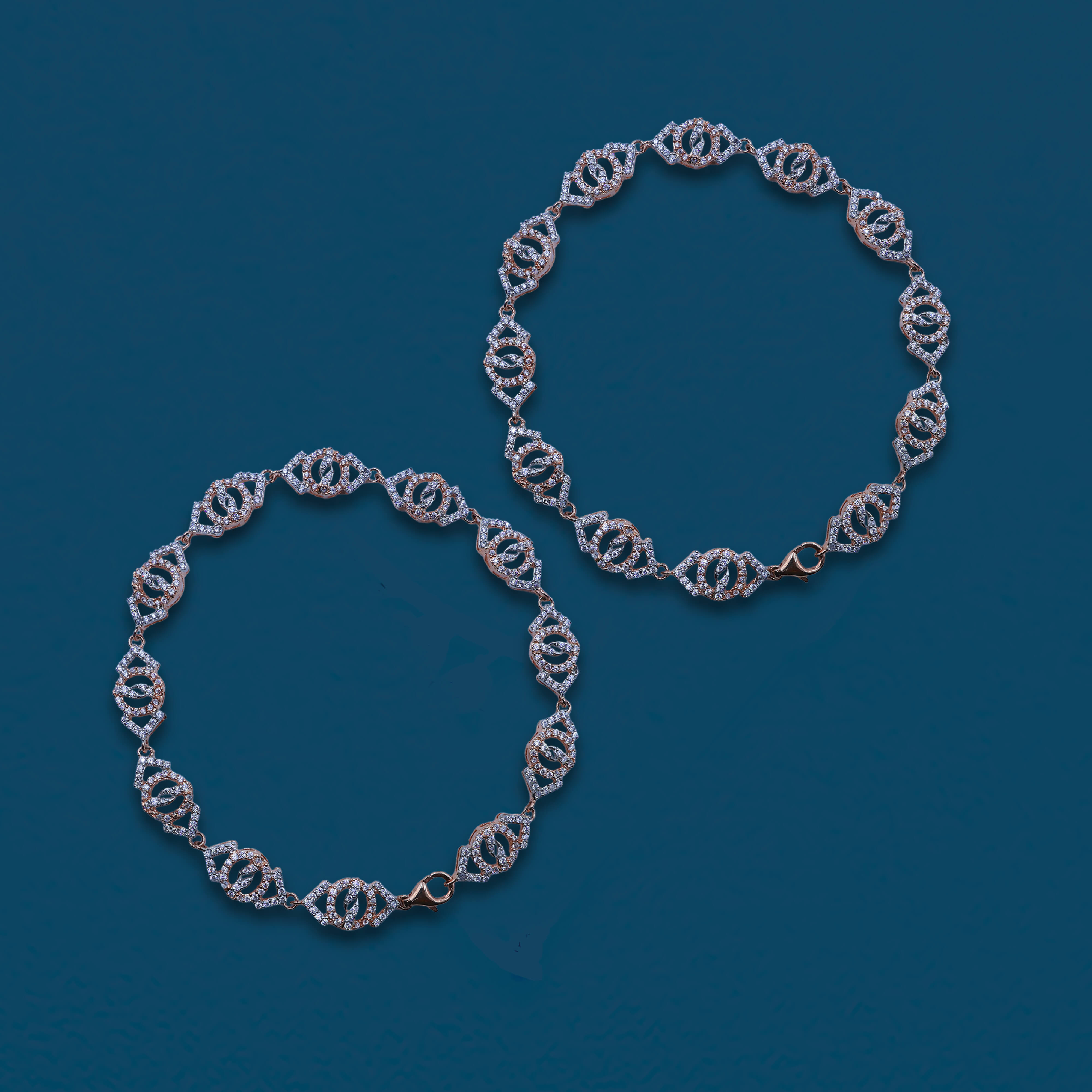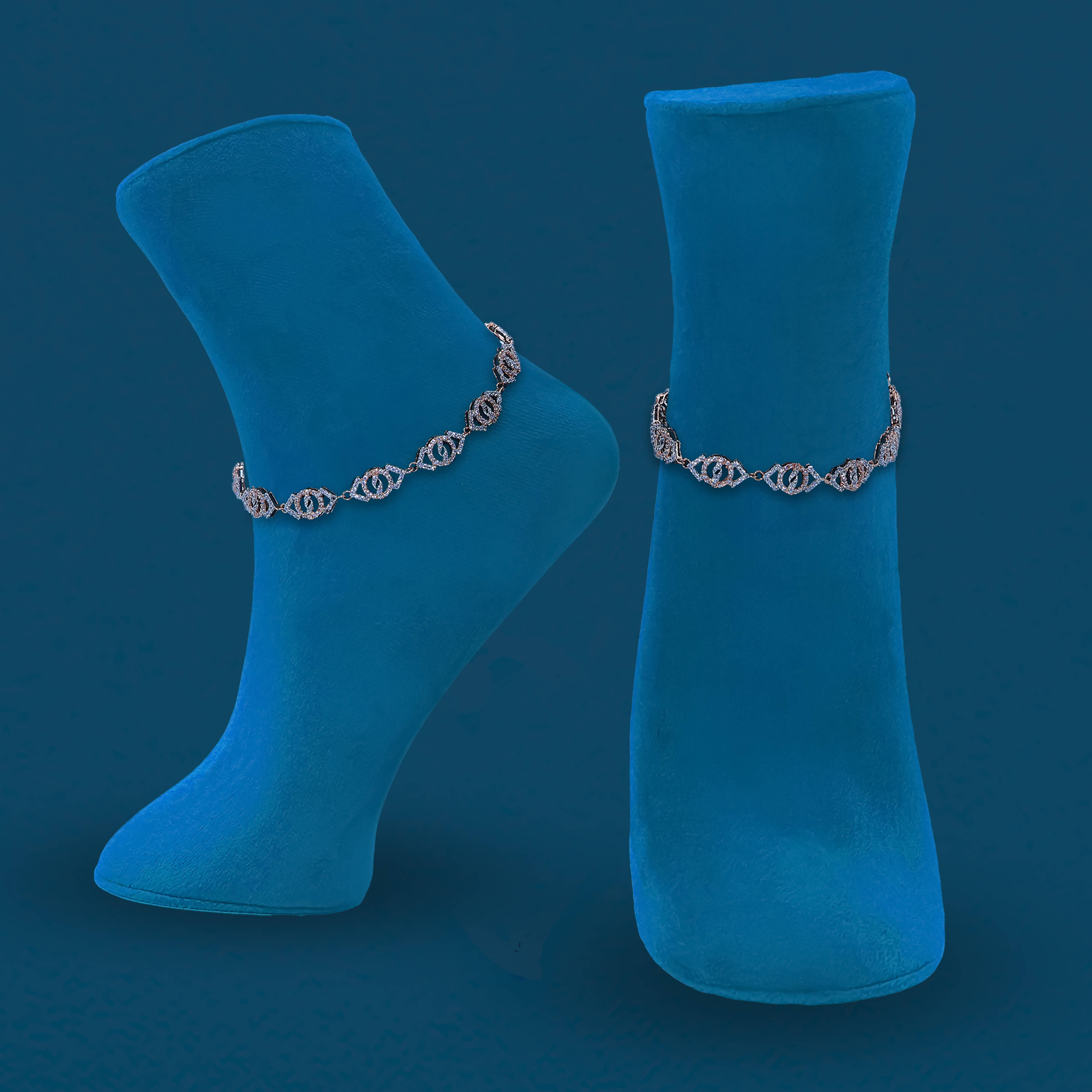This exquisite anklet is crafted from 925 sterling silver with a stunning rose gold polish, showcasing a delicate design inspired by blooming rose petals. Adorned with sparkling white zircons, it adds a touch of elegance and brilliance to any outfit. Perfect for both everyday wear and special occasions, this anklet is a beautiful accessory that captures the essence of grace and charm.