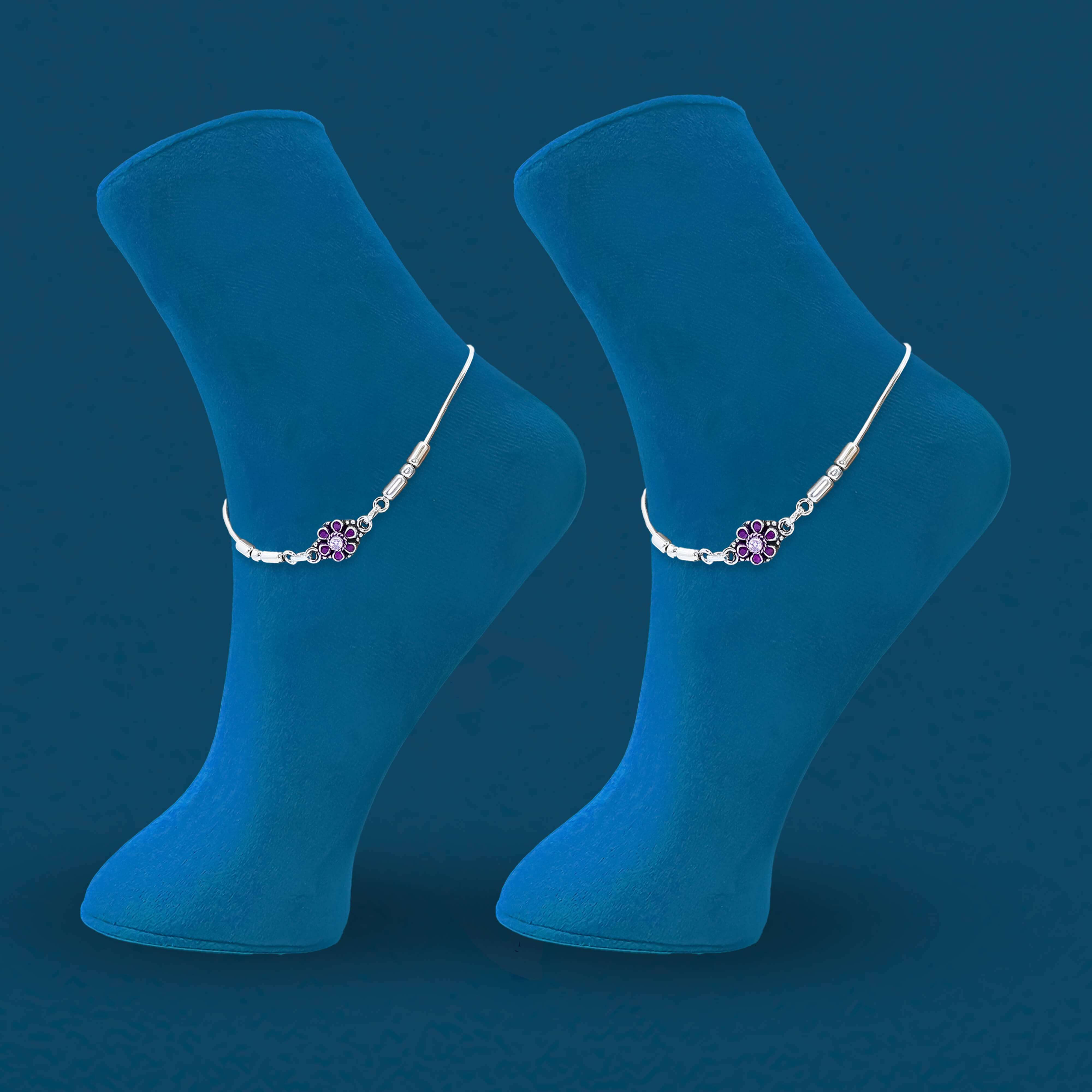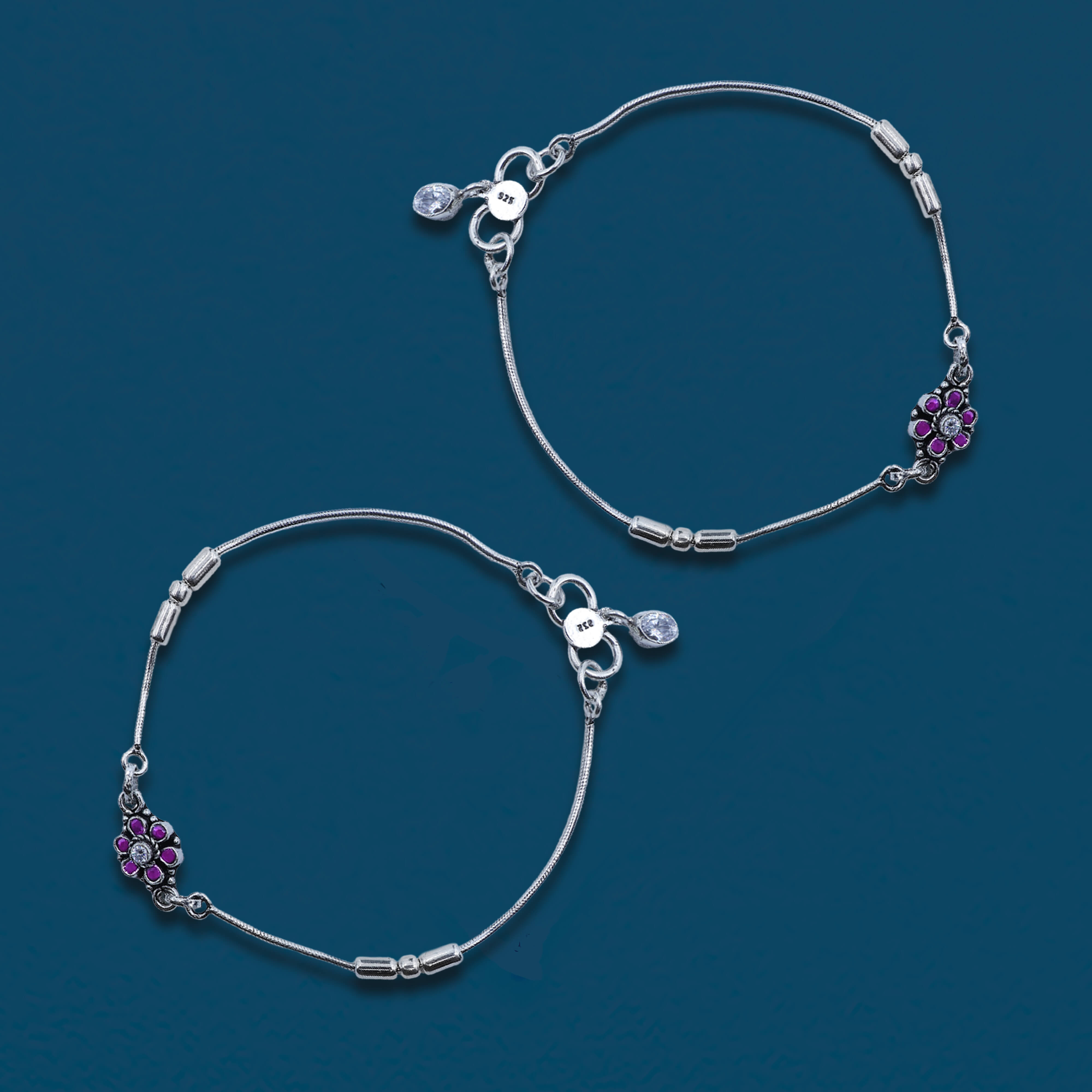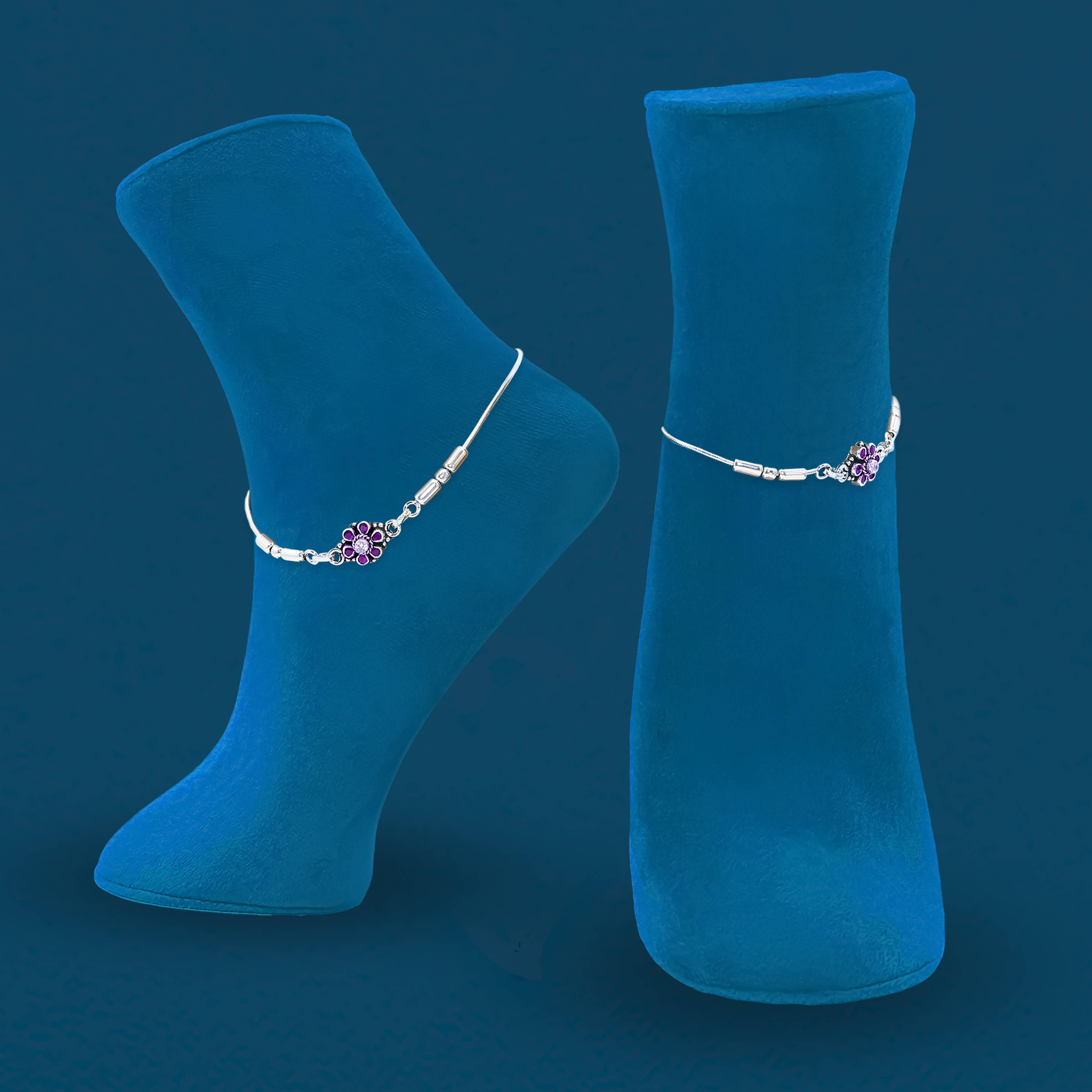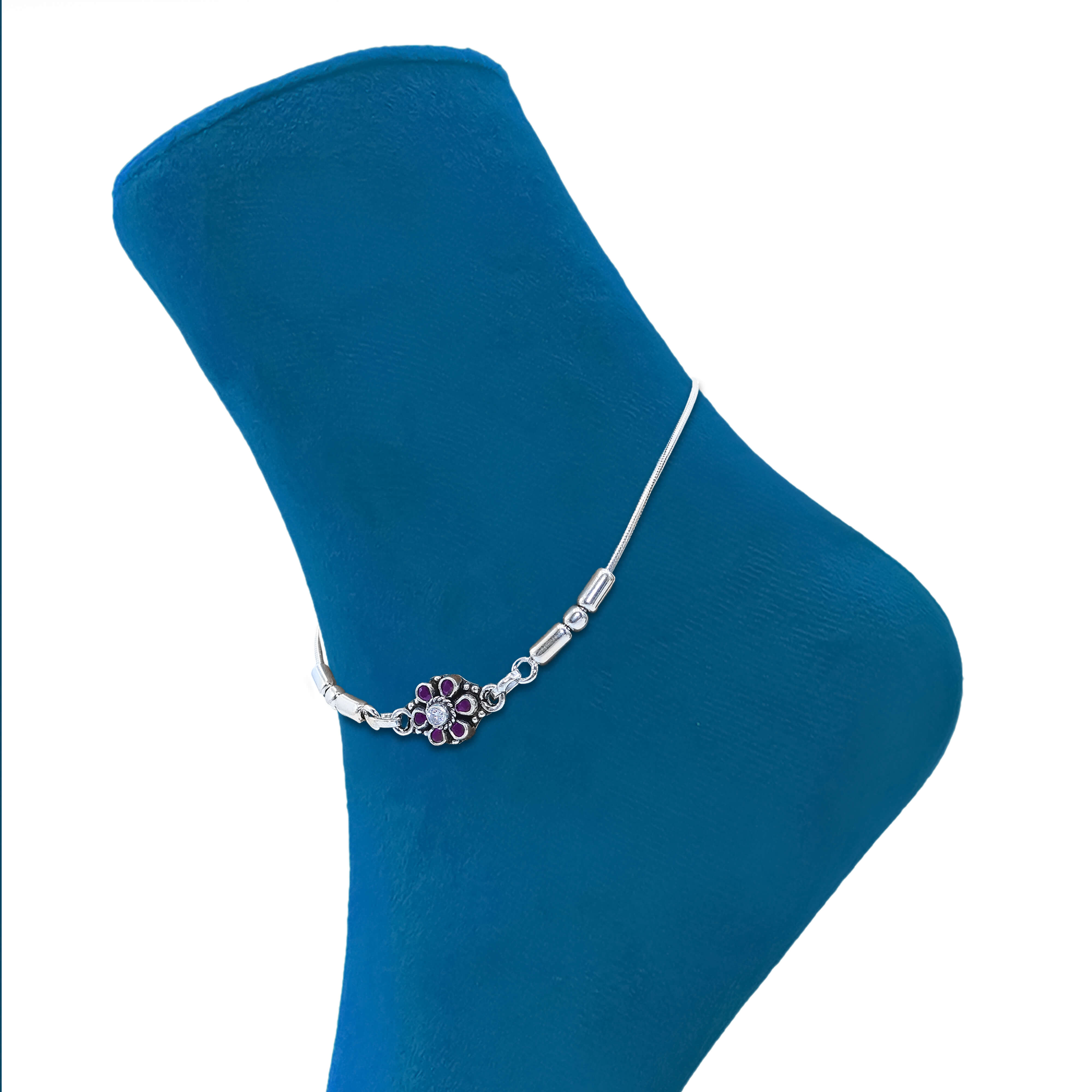 The Kundan Blossom Anklet is an elegant piece crafted from 925 oxidized silver, featuring intricate Kundan stone accents arranged in a delicate blossom pattern. The oxidized finish gives it a vintage charm, while the sparkling Kundan stones add a touch of regal elegance. Being lightweigh, this anklet is perfect for special occasions or everyday wear, blending traditional craftsmanship with timeless beauty. A stunning addition to any jewelry collection, the Kundan Blossom Anklet radiates grace and sophistication.