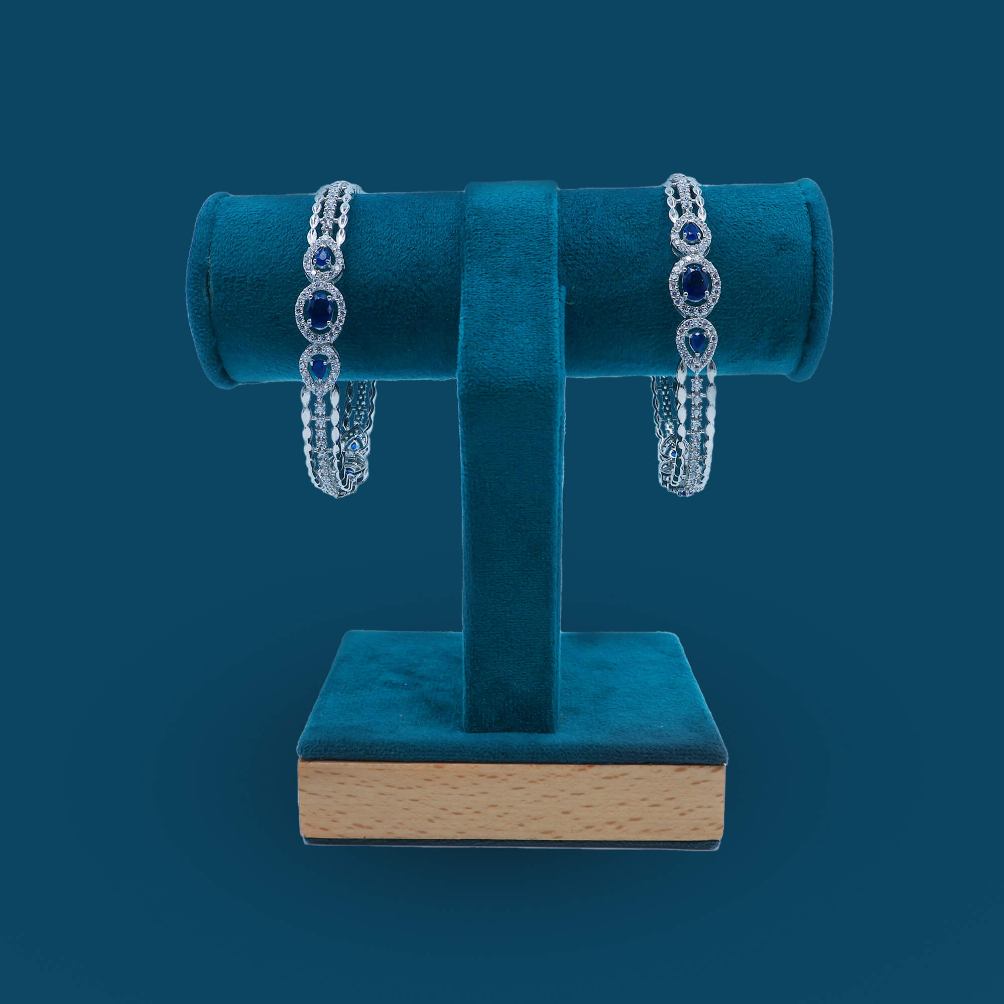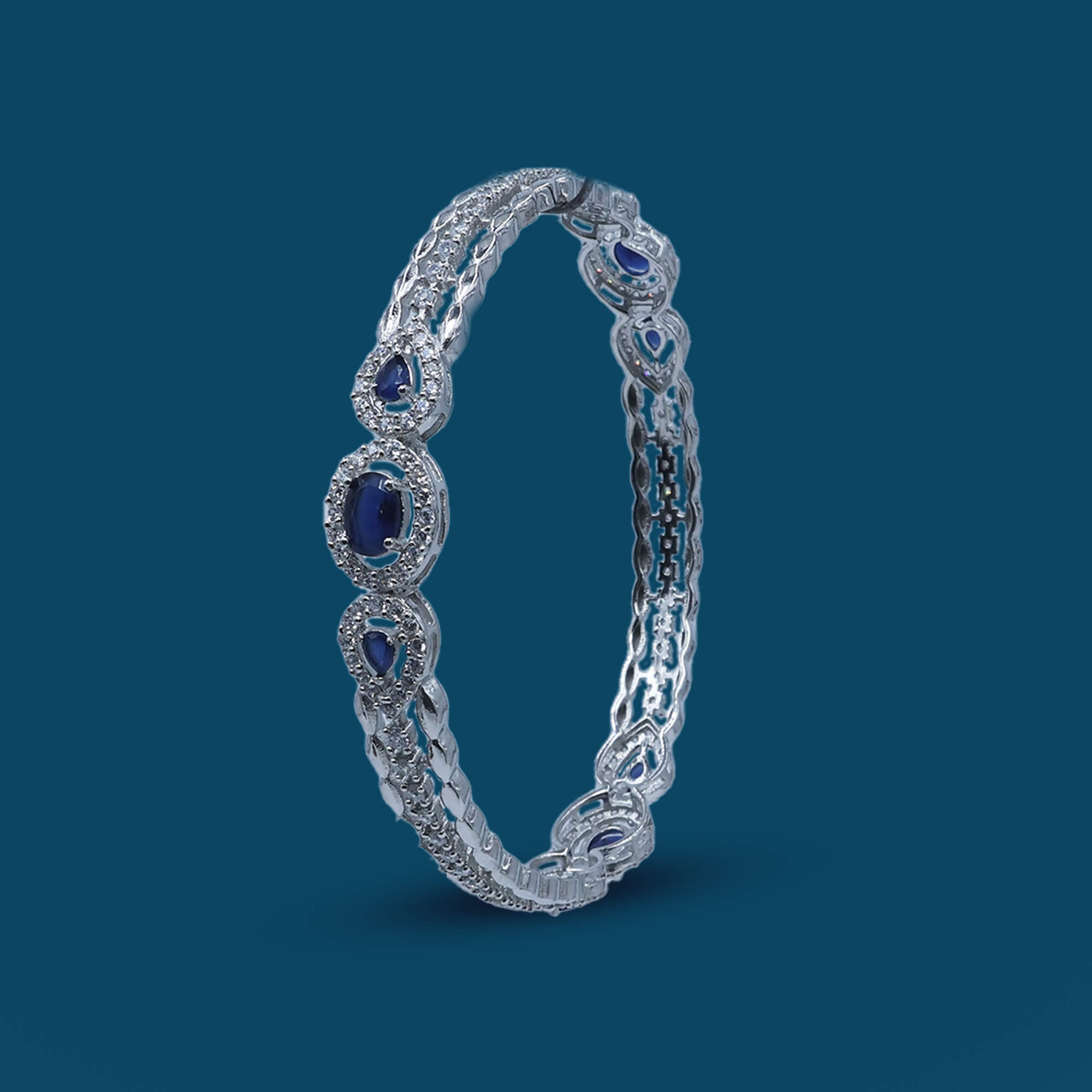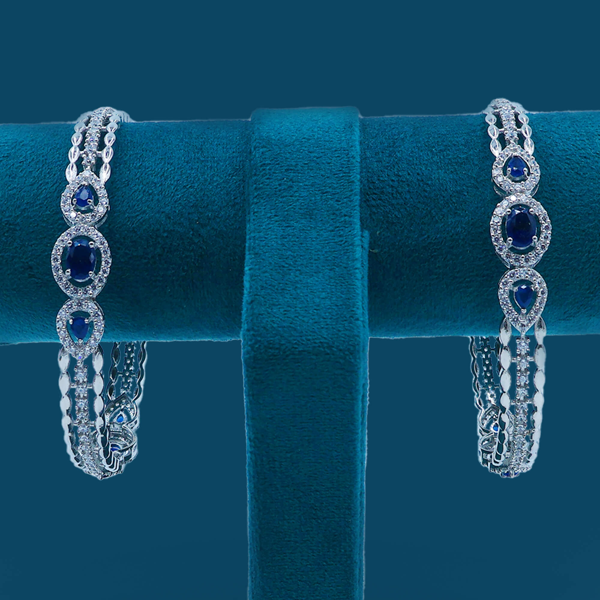 Add a touch of luxury and elegance to your wrist with the Sapphire Sparkle CZ Bangles. Crafted in high-quality 925 sterling silver, these bangles are adorned with stunning Cubic Zirconia (CZ) stones in a captivating sapphire blue hue, creating a radiant sparkle that catches the light beautifully. The sleek, polished design ensures versatility, making these bangles perfect for both casual and formal occasions. Whether worn alone for a subtle statement or stacked for a bold look, the Sapphire Sparkle CZ Bangles bring a dazzling pop of color and glamour to any ensemble.