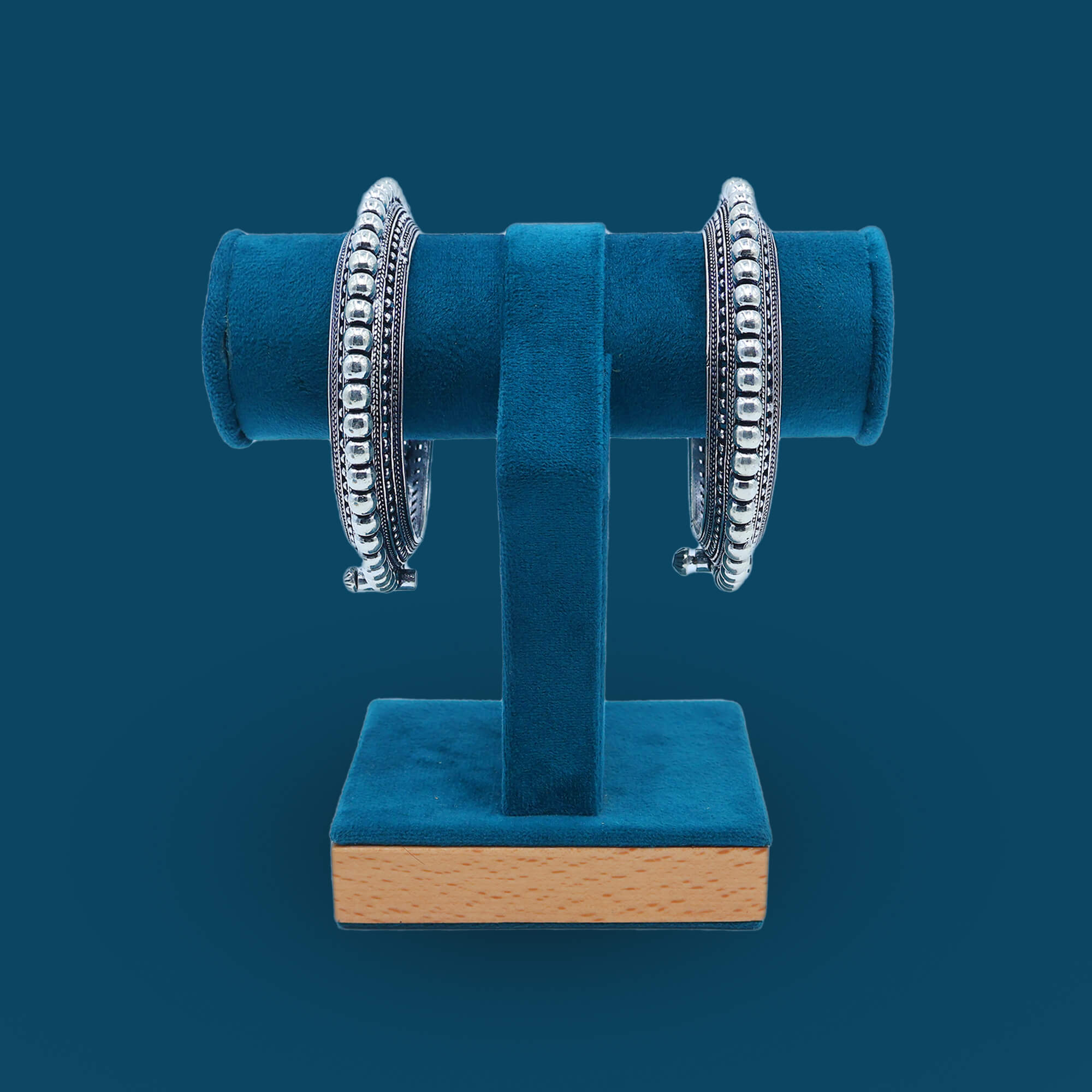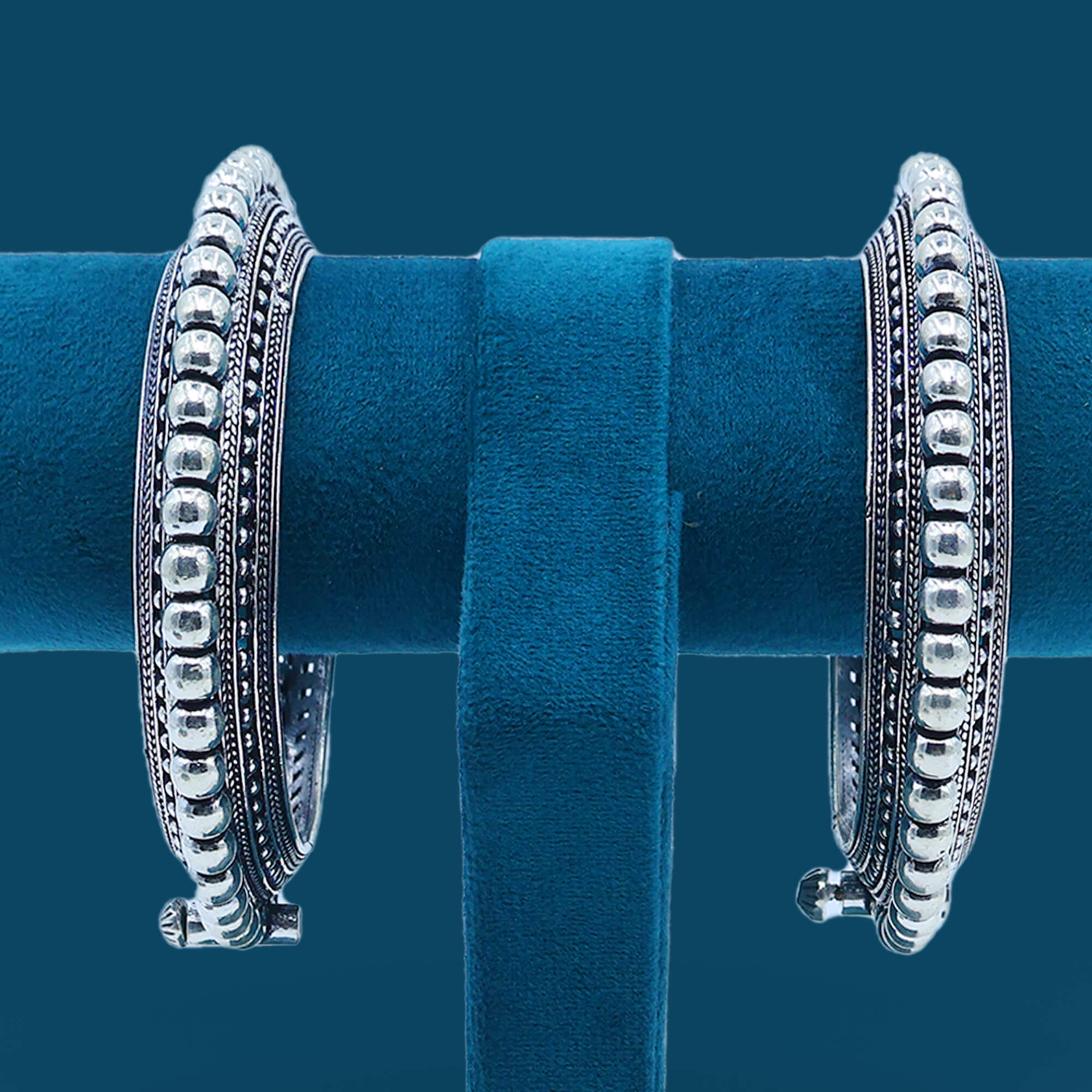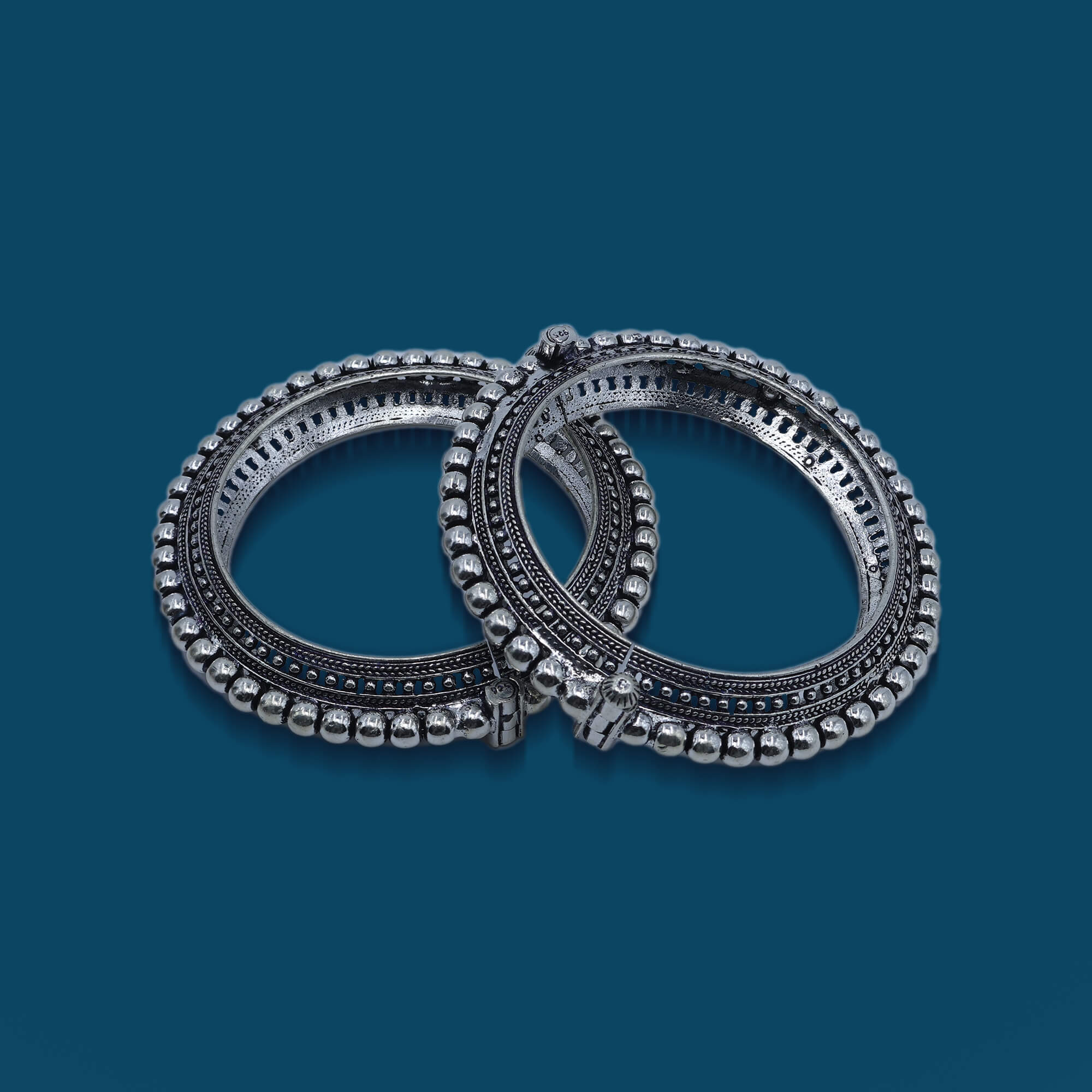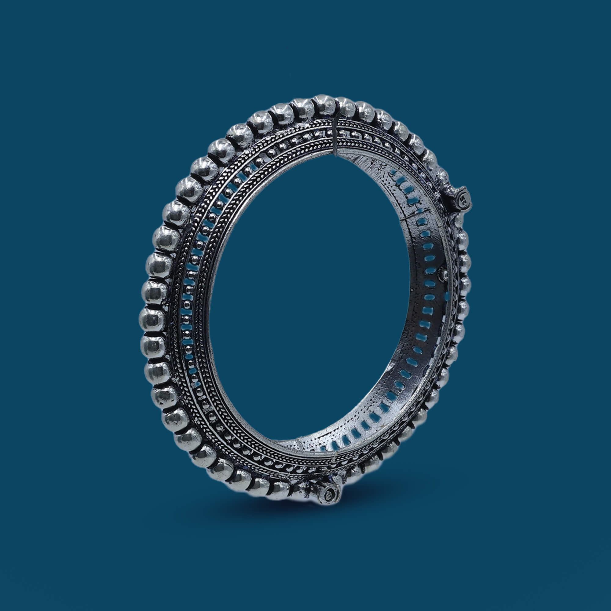 Inspired by royal heritage, the Oxidized Rajwada Kangan combines timeless Indian craftsmanship with a touch of vintage charm. Made from high-quality 925 sterling silver with an oxidized finish, this kangan features intricate traditional designs, evoking the grandeur and elegance of Rajwada (royal) jewelry. Its antique look, with delicate carvings and ornate patterns, adds a regal touch to any outfit. Ideal for festive occasions, weddings, or special events, the Oxidized Rajwada Kangan brings a piece of royal history to your jewelry collection.
