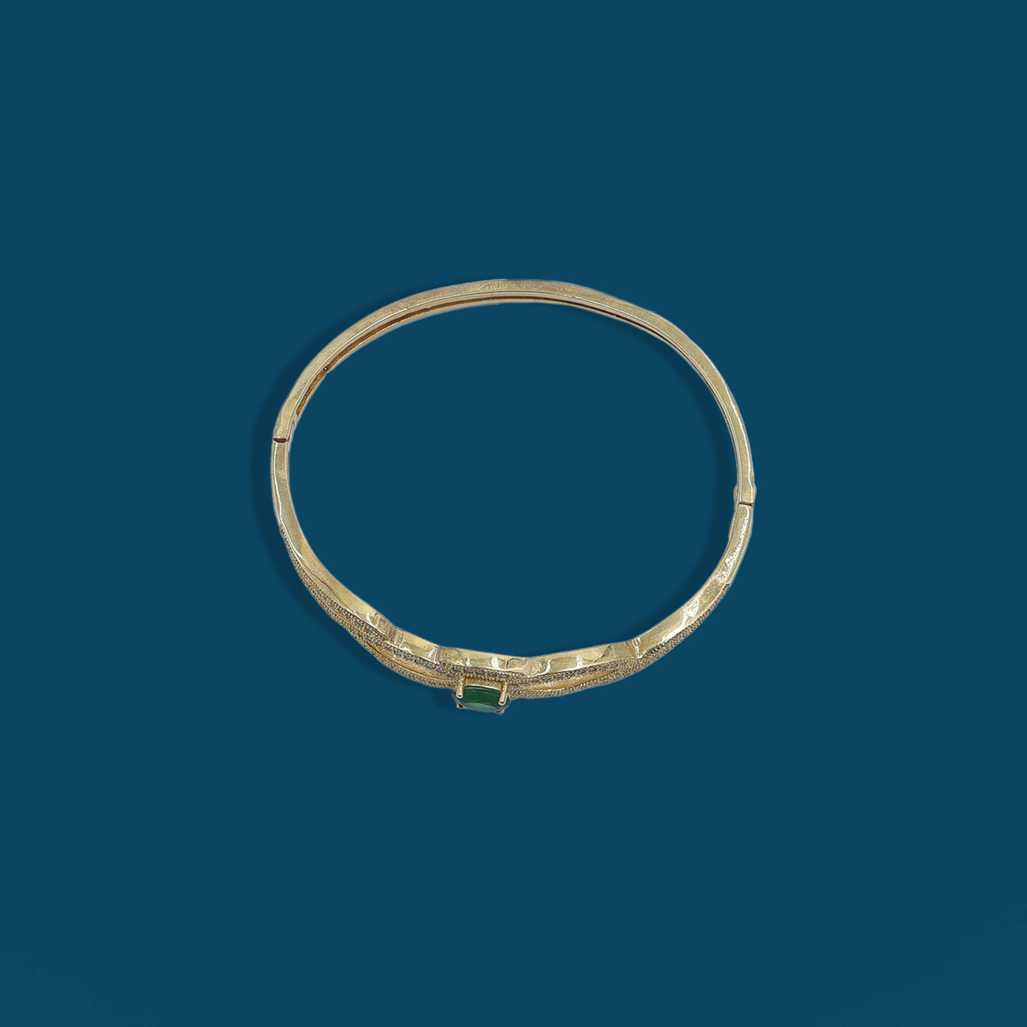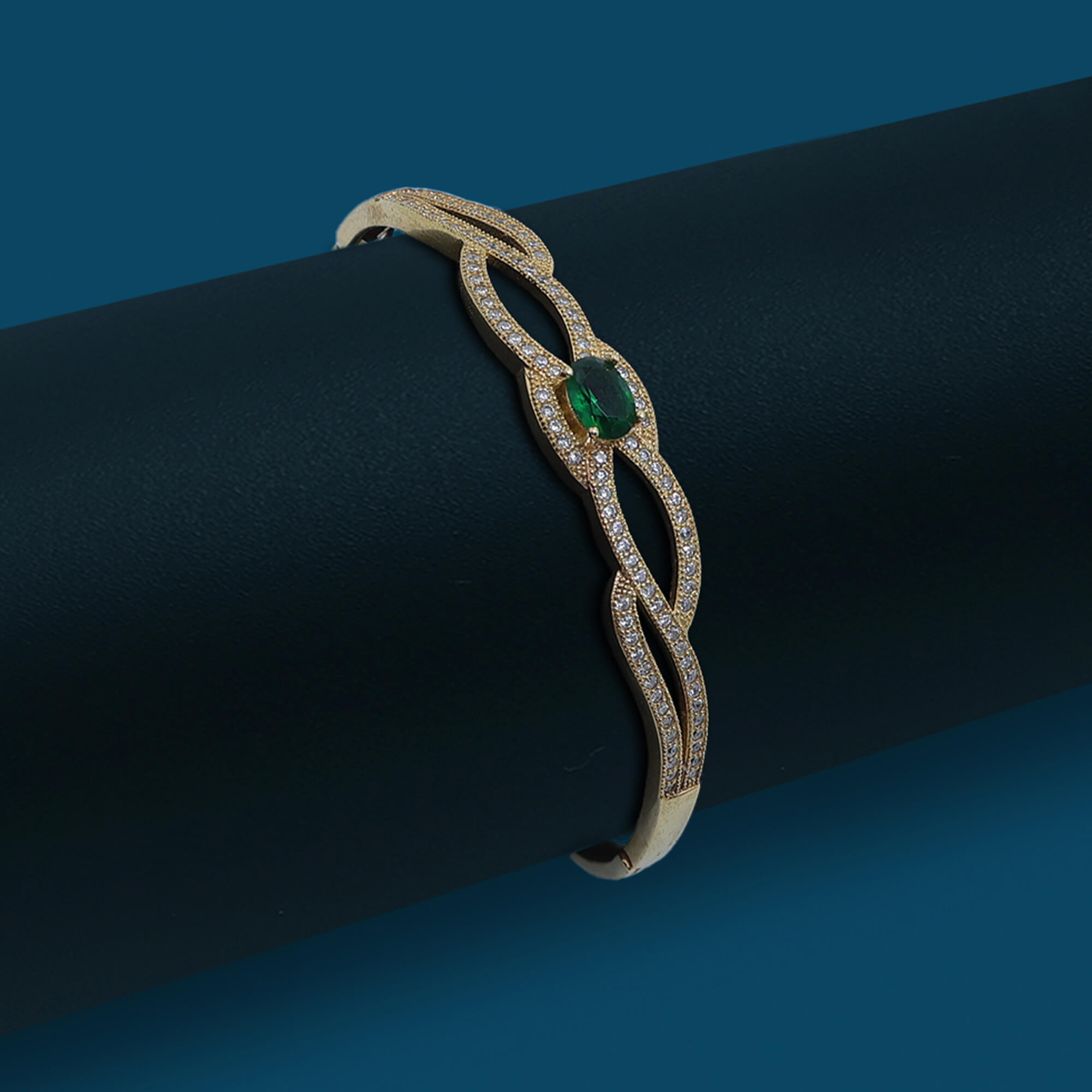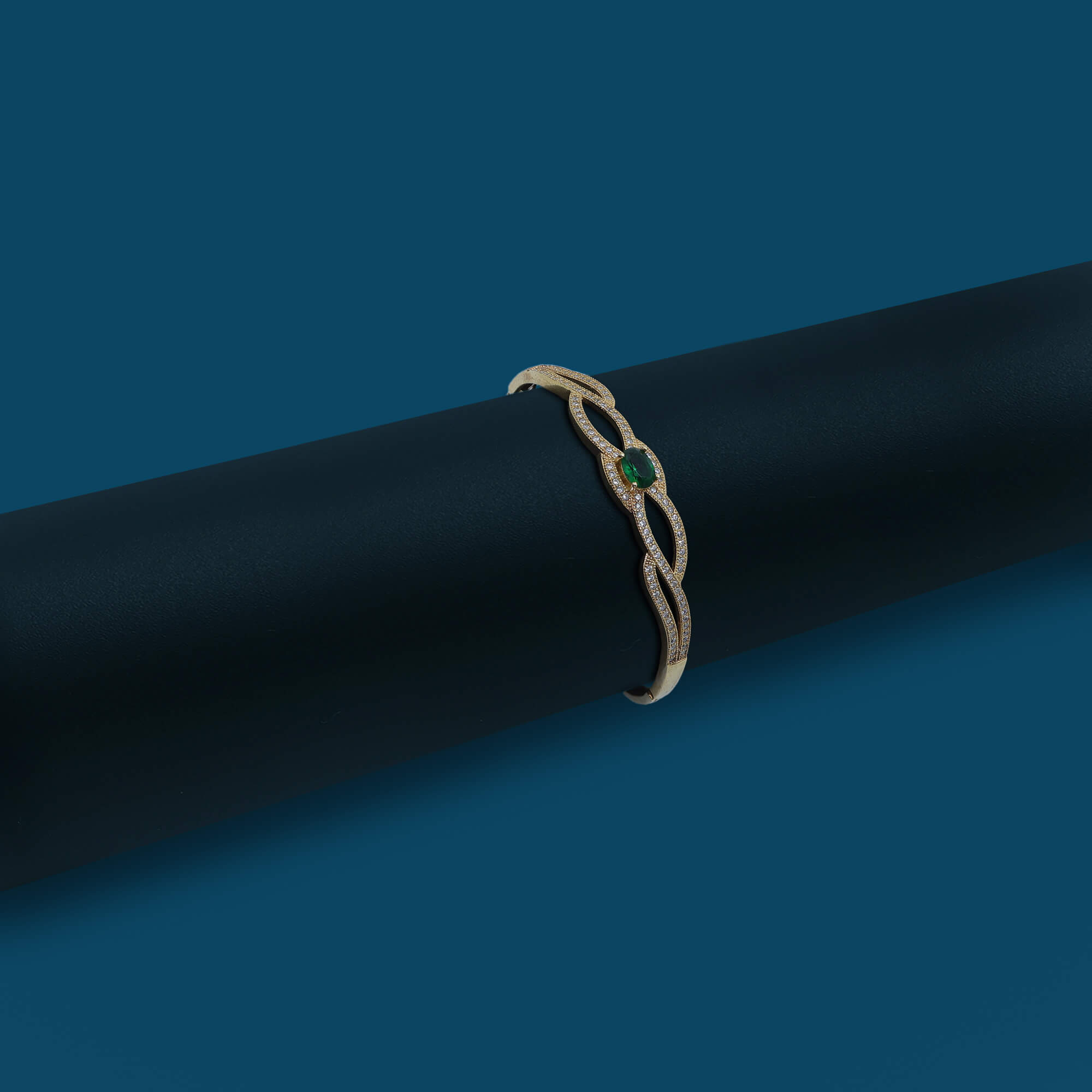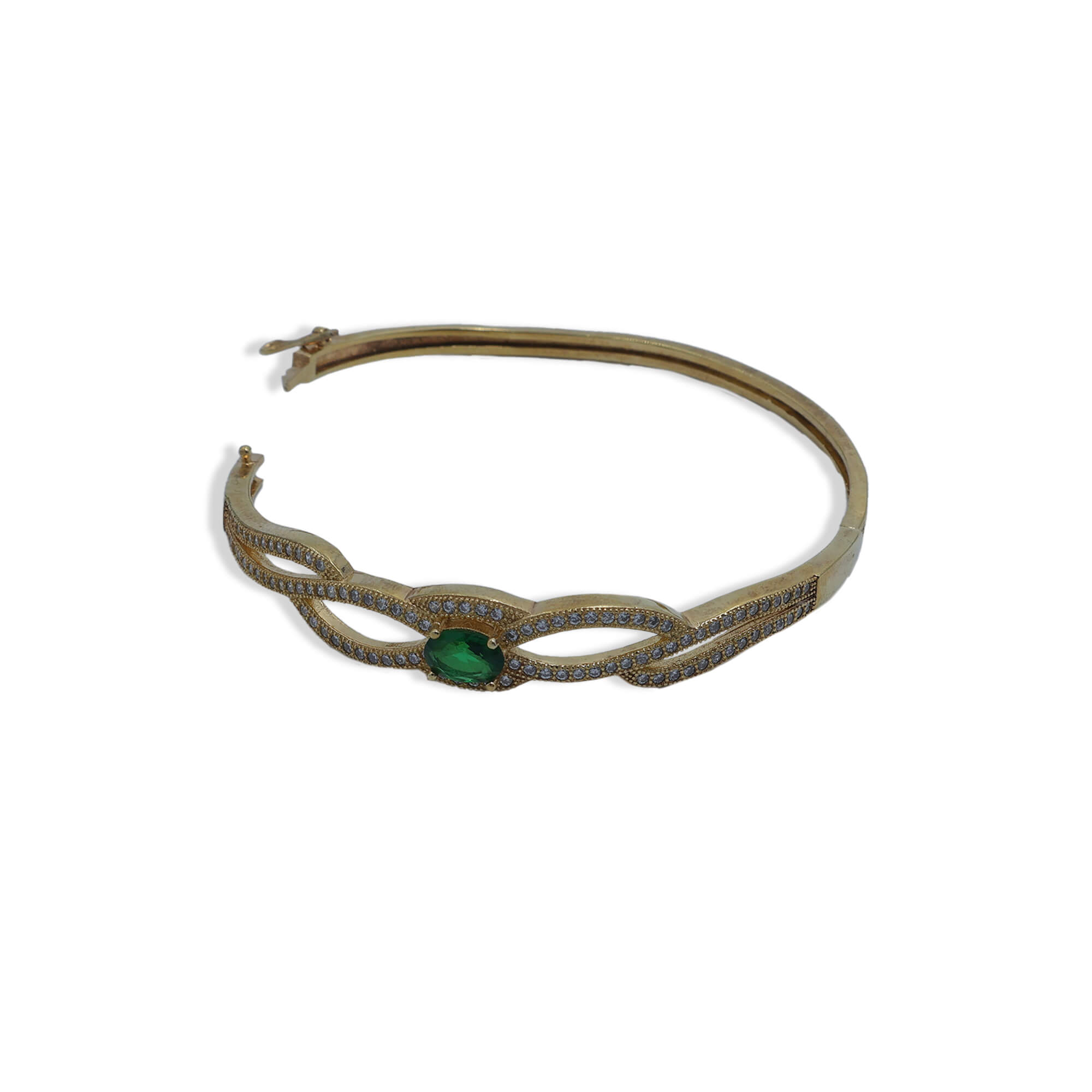 The Emerald Shine Bracelet is crafted in 925 sterling silver with a luxurious golden polish, featuring brilliant white CZ stones and a captivating green centerpiece. This elegant bracelet combines timeless charm with a touch of vibrant color, perfect for adding sophistication and style to any occasion.
