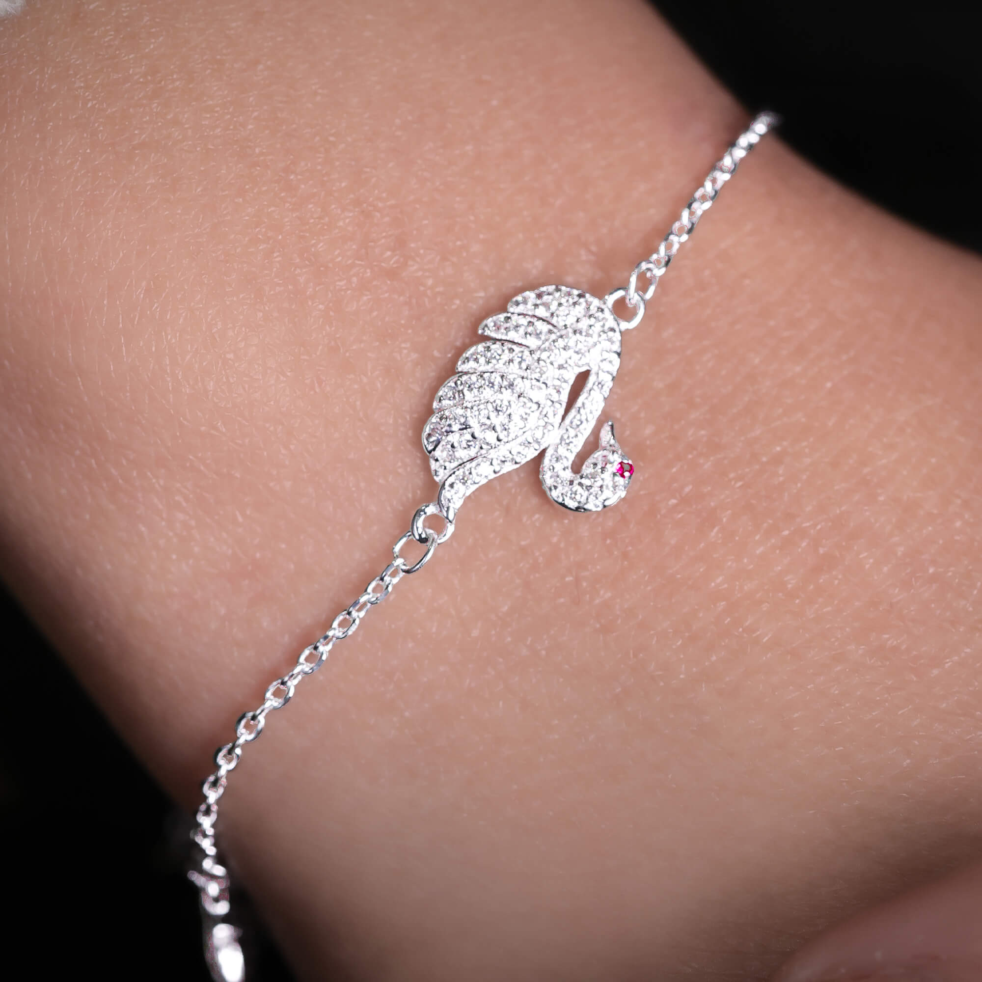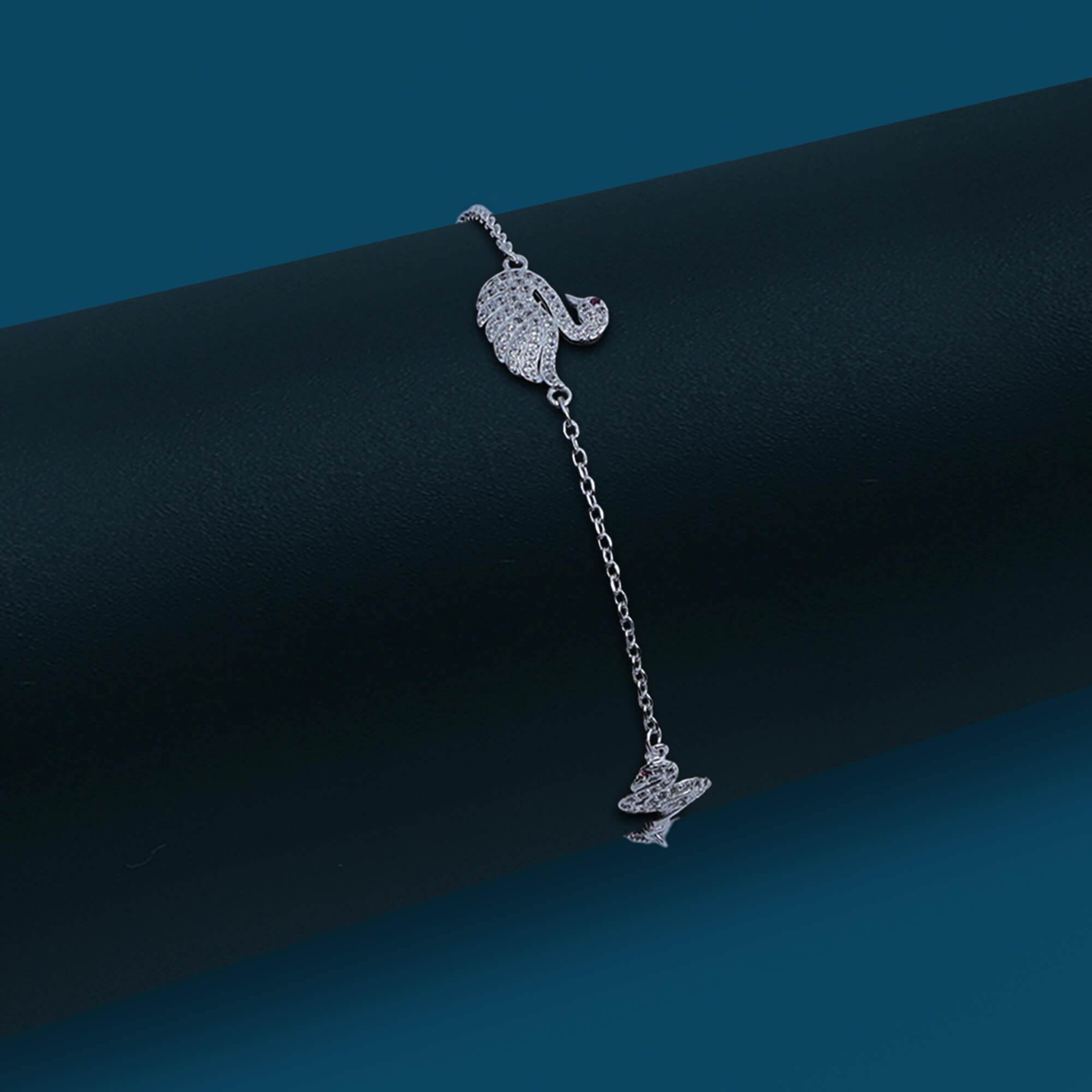 The Swan Ladies Bracelet in 925 sterling silver combines timeless elegance with premium quality. Crafted from high-grade 925 silver, this bracelet features delicate, intricately designed swan motifs adorned with sparkling crystals, creating a radiant, sophisticated look. The durable sterling silver ensures lasting shine and wear-resistance, making it a perfect choice for daily elegance or special occasions. Adjustable for comfort, this bracelet beautifully complements any style and makes a meaningful gift, symbolizing purity, grace, and elegance.