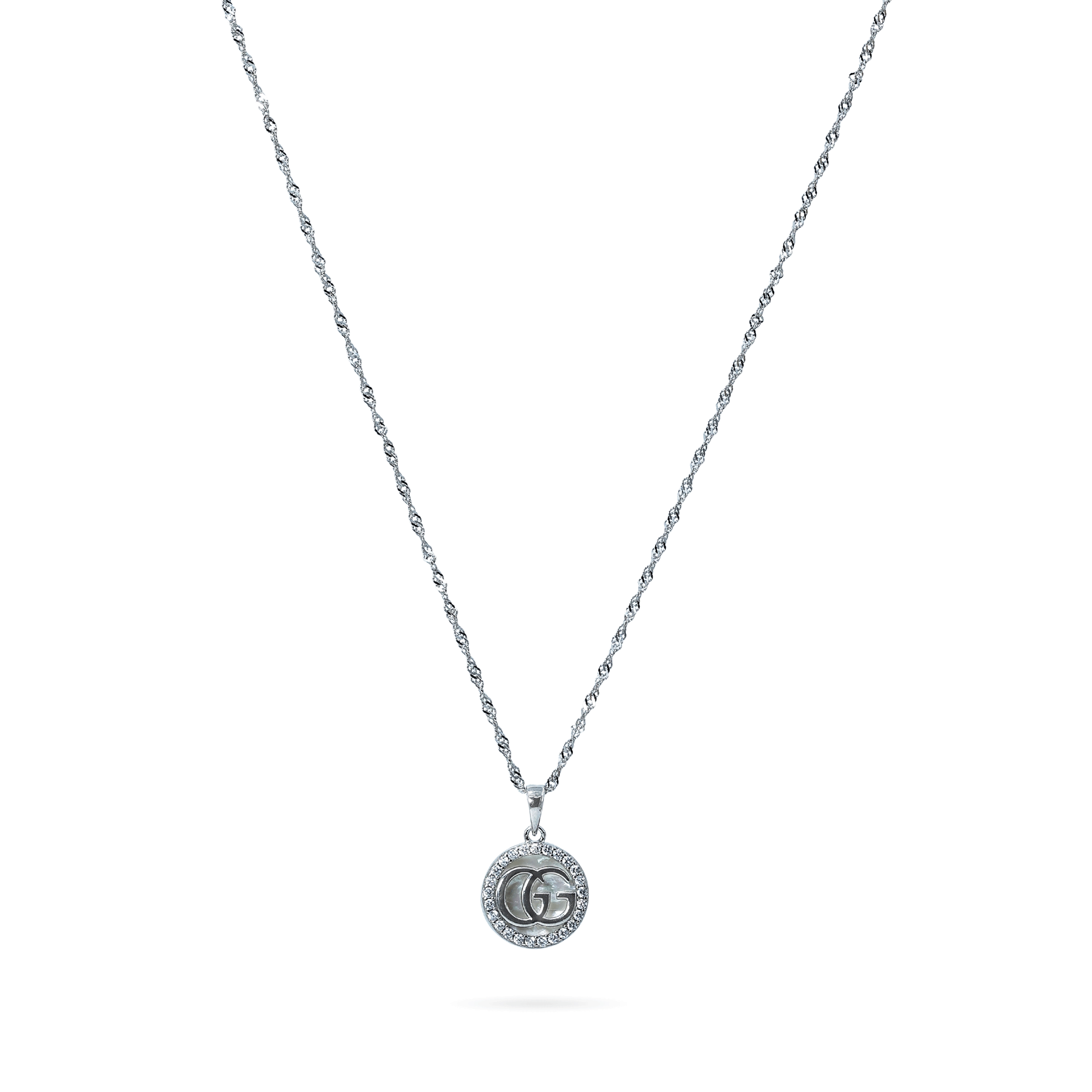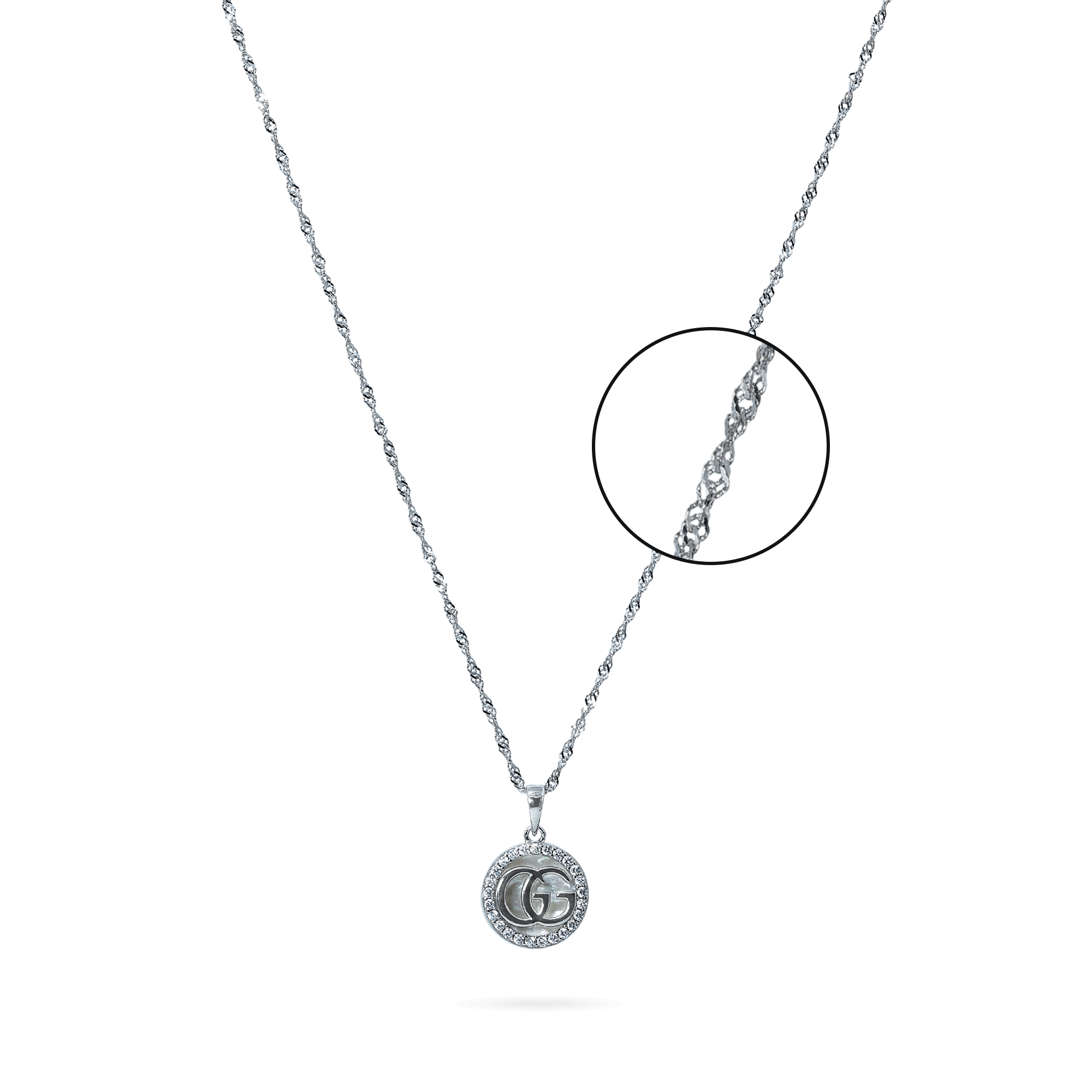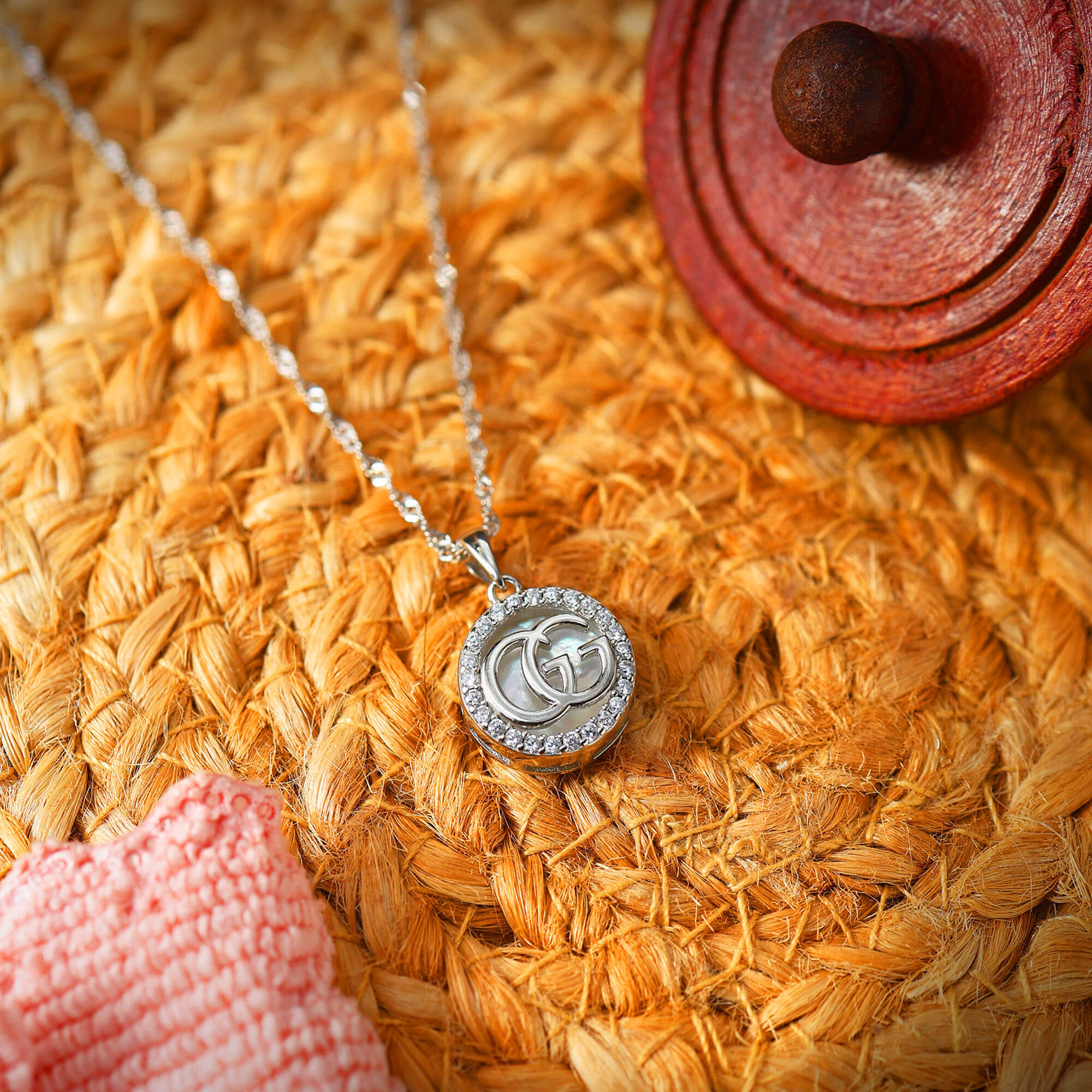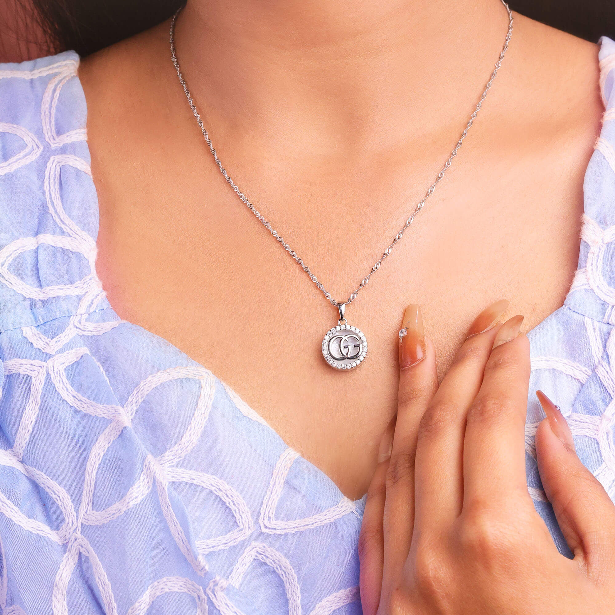 "The Urban G-Link Silver Chain is crafted in 925 sterling silver and features a sleek, modern chain paired with an interlocking G–style symbol locket. Designed for a bold yet minimal look, this piece blends contemporary fashion with everyday comfort. Lightweight and stylish, it can be worn solo as a statement accessory or layered for a trend-forward look. Perfect for daily wear, casual outings, and modern gifting."