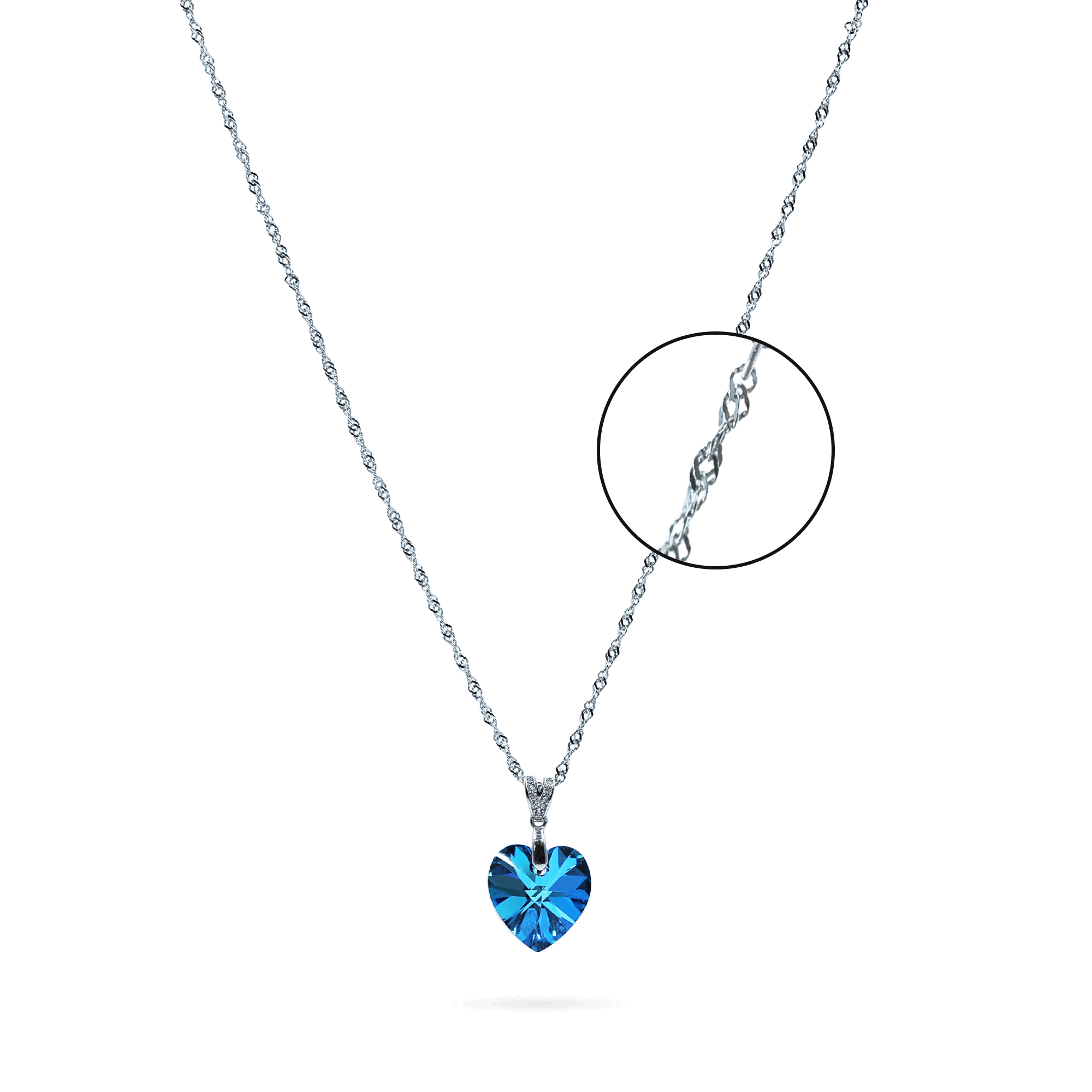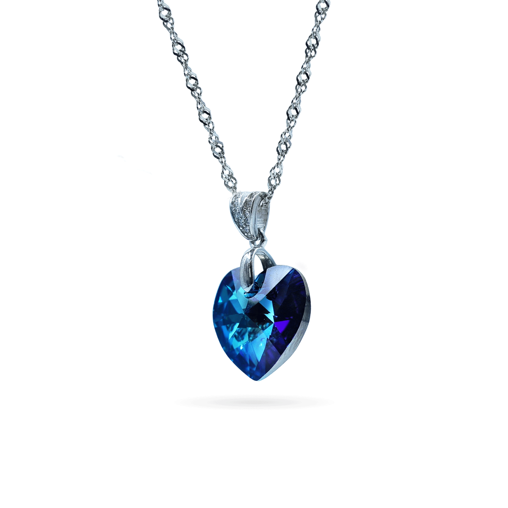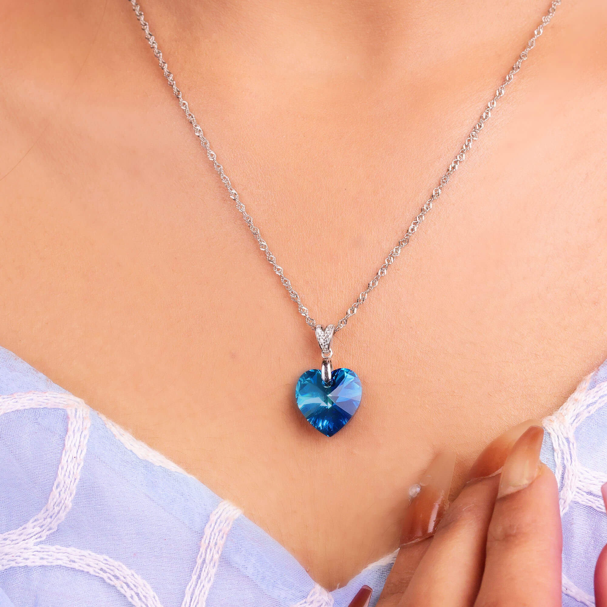 "Delicate and graceful, the Blue Crystal Heart Silver Chain is crafted in 925 sterling silver and features a sleek, lightweight chain paired with a heart-shaped blue crystal pendant that adds a touch of soft sparkle and charm. Designed for everyday comfort, this chain is perfect for daily wear, office styling, and romantic gifting. Its minimal yet expressive design makes it a beautiful symbol of love and elegance, suitable for all age groups."