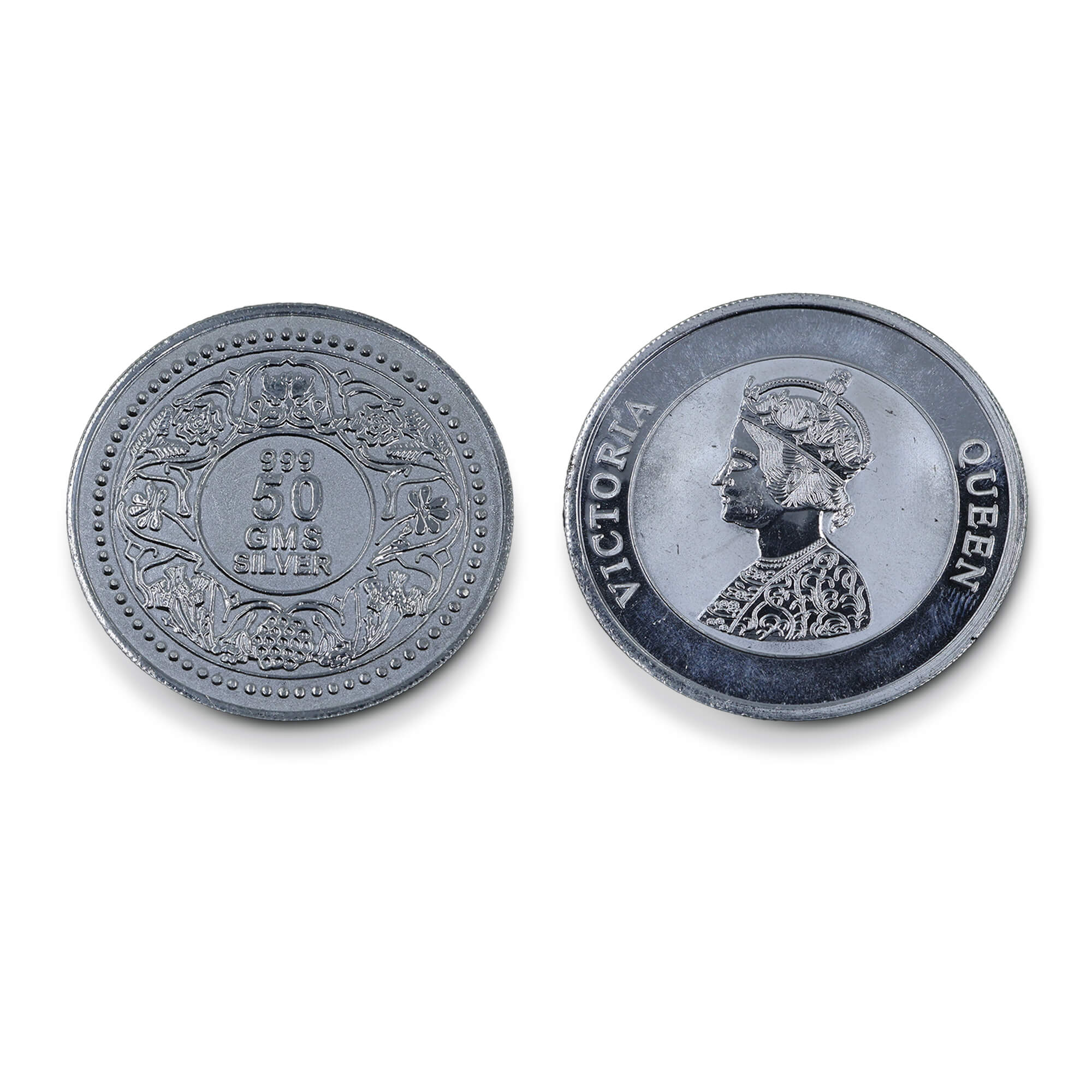 The 50 gm Dollar Silver Coin is a stunning piece crafted from 100% pure silver, showcasing the timeless elegance of Queen Victoria. This beautifully detailed coin features a classic design that captures the essence of historical craftsmanship. Weighing 50 grams, it is perfect for collectors or as a unique gift for special occasions. Its high silver content ensures lasting value, making it a cherished addition to any collection. Ideal for those who appreciate both history and fine silver artistry.