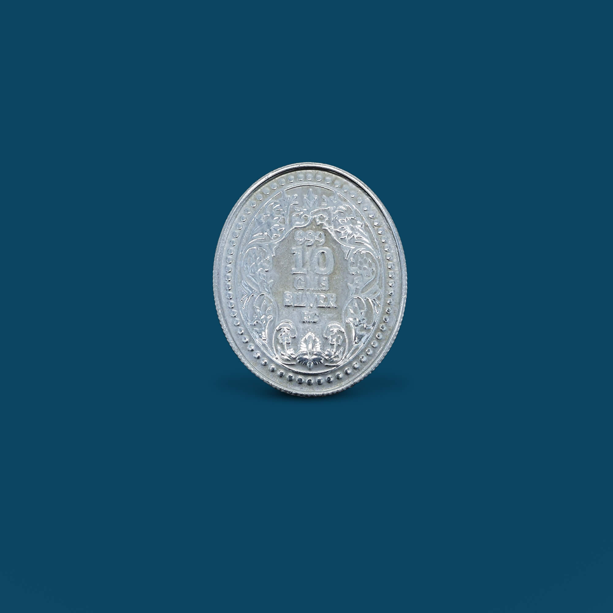 The 10 gm Oval Dollar Coin is a striking piece made from 100% pure silver, featuring a unique oval shape that sets it apart from traditional coin designs. Weighing 10 grams, this coin showcases fine detailing and a polished finish that enhances its beauty and value. Perfect for collectors and investors, it represents both artistic craftsmanship and the enduring allure of silver. This coin makes an exceptional gift for special occasions or a memorable addition to any collection, embodying elegance and timeless charm.