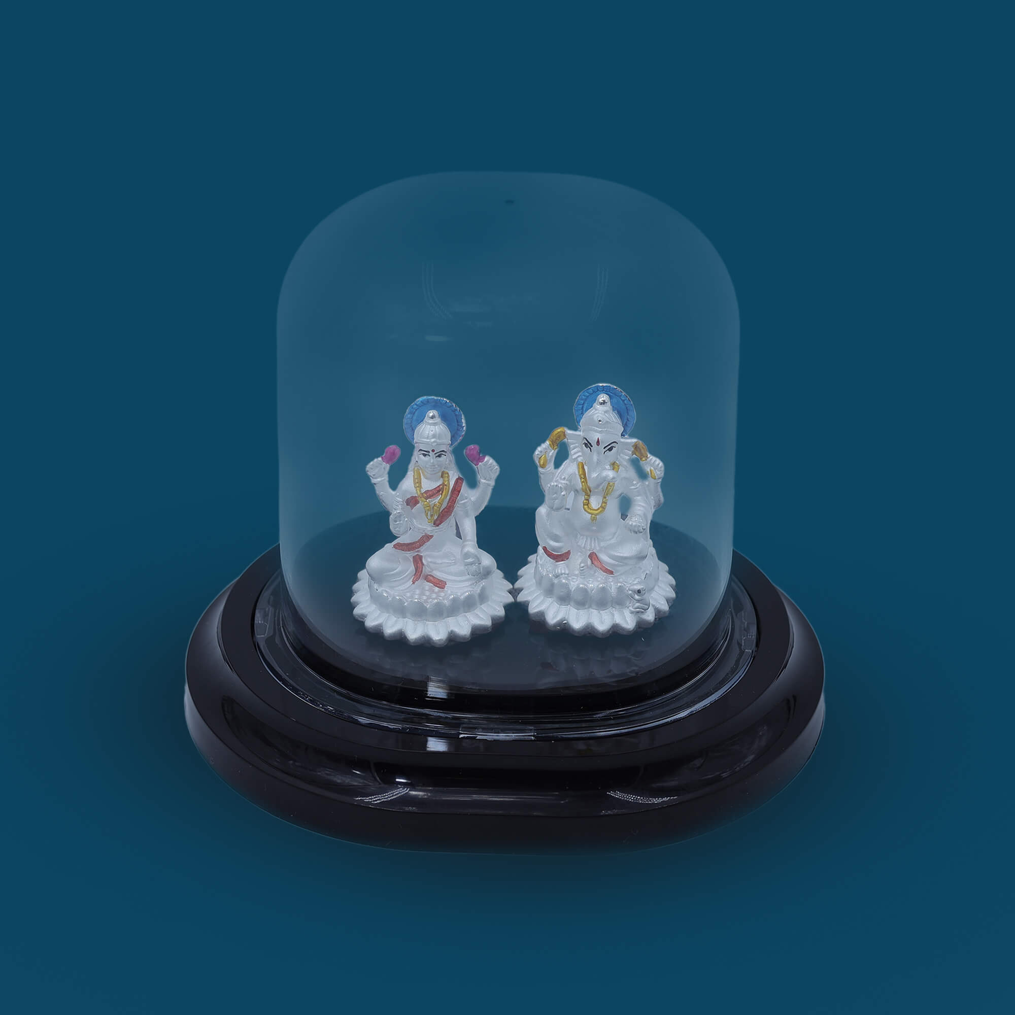 A 100% pure silver Laxmi Ganesh Ji Murti symbolizes wealth, wisdom, and prosperity, crafted from 99.9% pure silver with intricate detailing and a polished or antique finish. Goddess Lakshmi, the deity of fortune and abundance, and Lord Ganesha, the remover of obstacles and bringer of wisdom, are worshipped together, especially during Diwali and auspicious ceremonies. This tarnish-resistant and durable idol is perfect for puja rituals, home temples, and gifting on special occasions like festivals, weddings, and housewarmings. Placing Laxmi Ganesh Ji at home or the workplace invites success, positivity, and blessings into life.