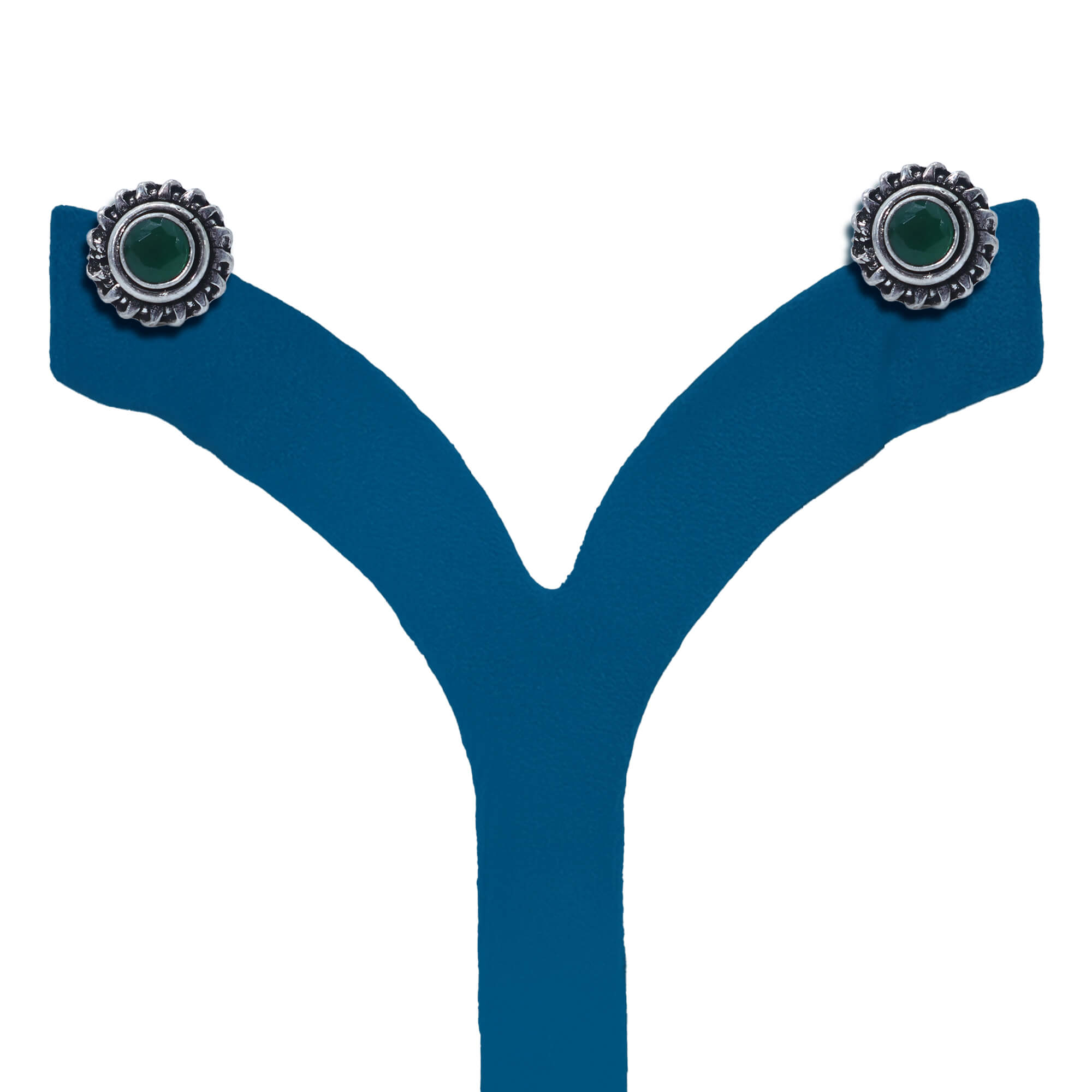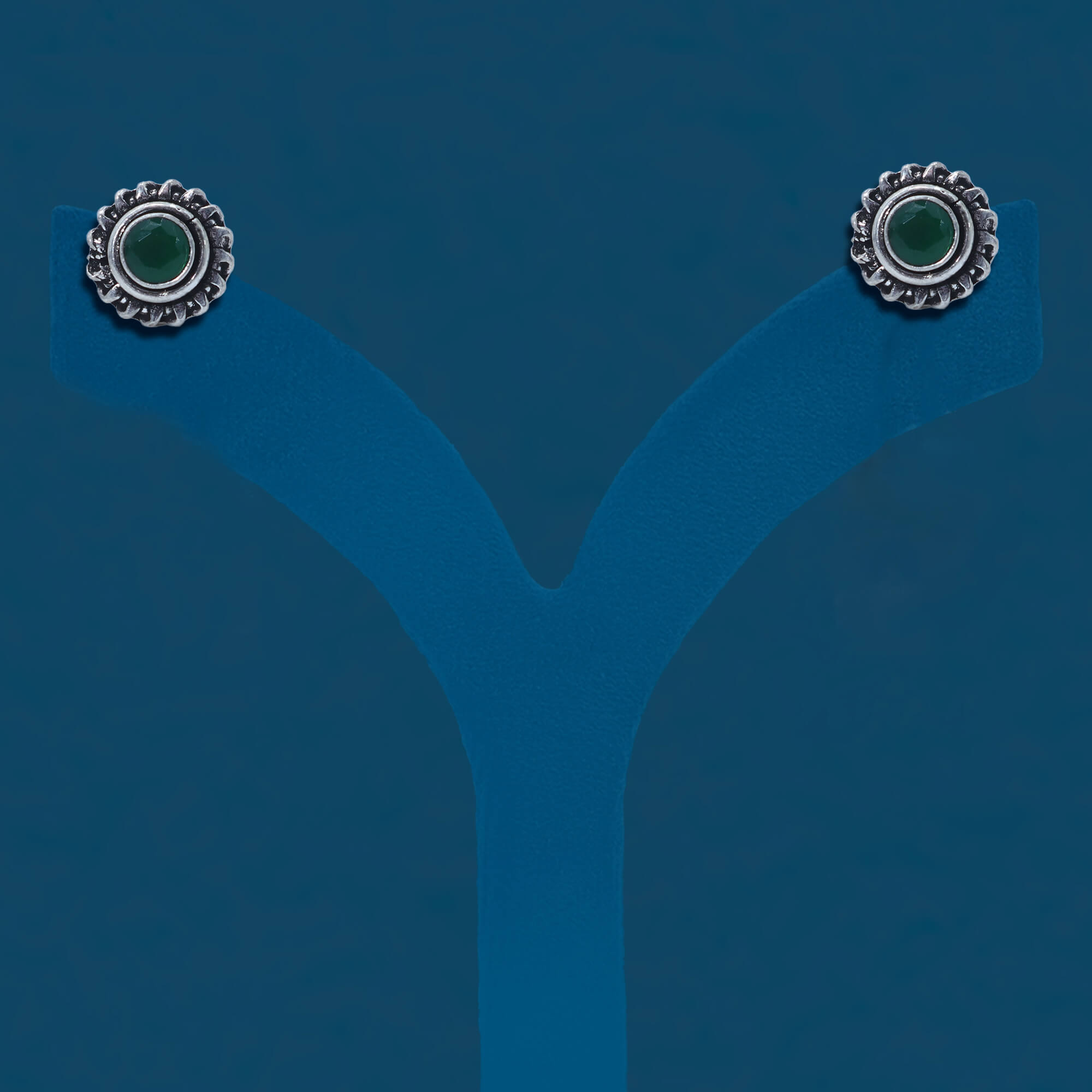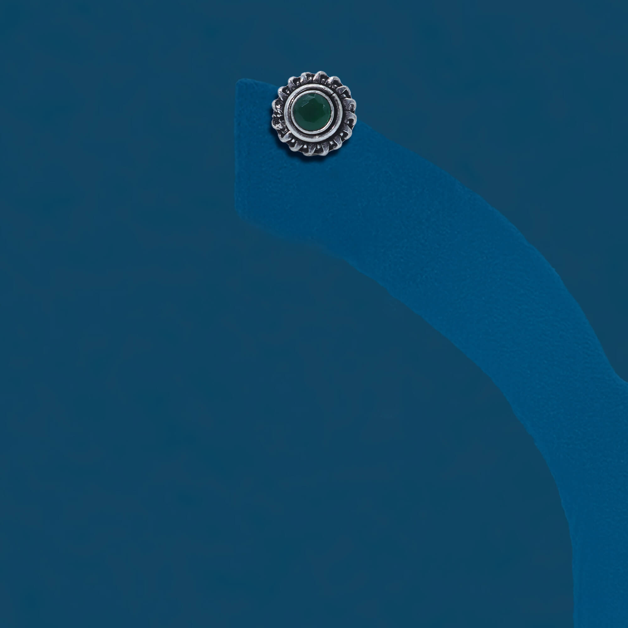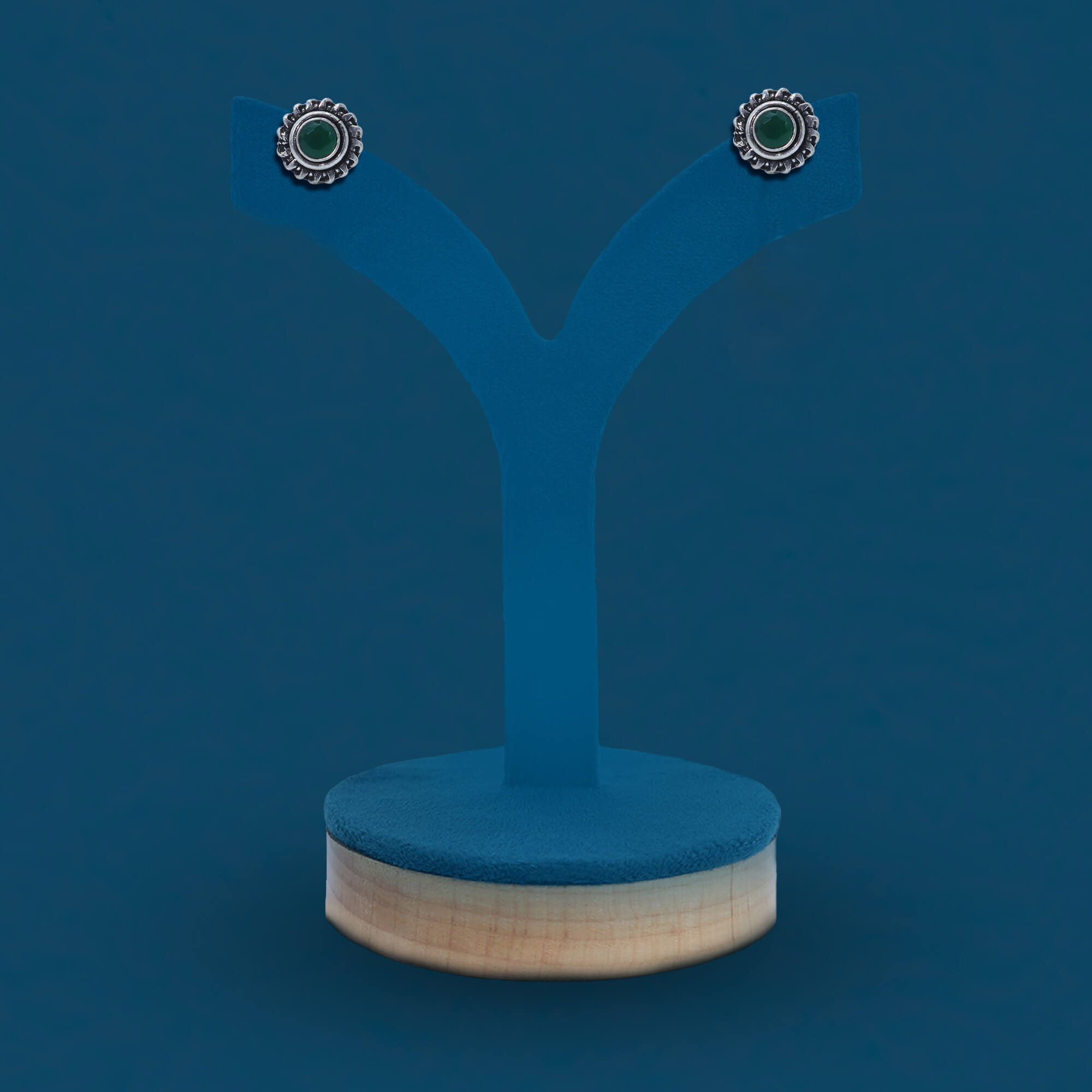 The Forest Gem Studs are exquisite earrings crafted from 925 oxidized silver, featuring a captivating green stone at the center. The intricate oxidized finish enhances the natural beauty of the design, evoking the essence of a lush forest. Lightweight and comfortable, these studs are perfect for everyday wear or special occasions, adding a touch of earthy elegance to any outfit. With their unique charm and vibrant color, the Forest Gem Studs are a beautiful addition to any jewelry collection.