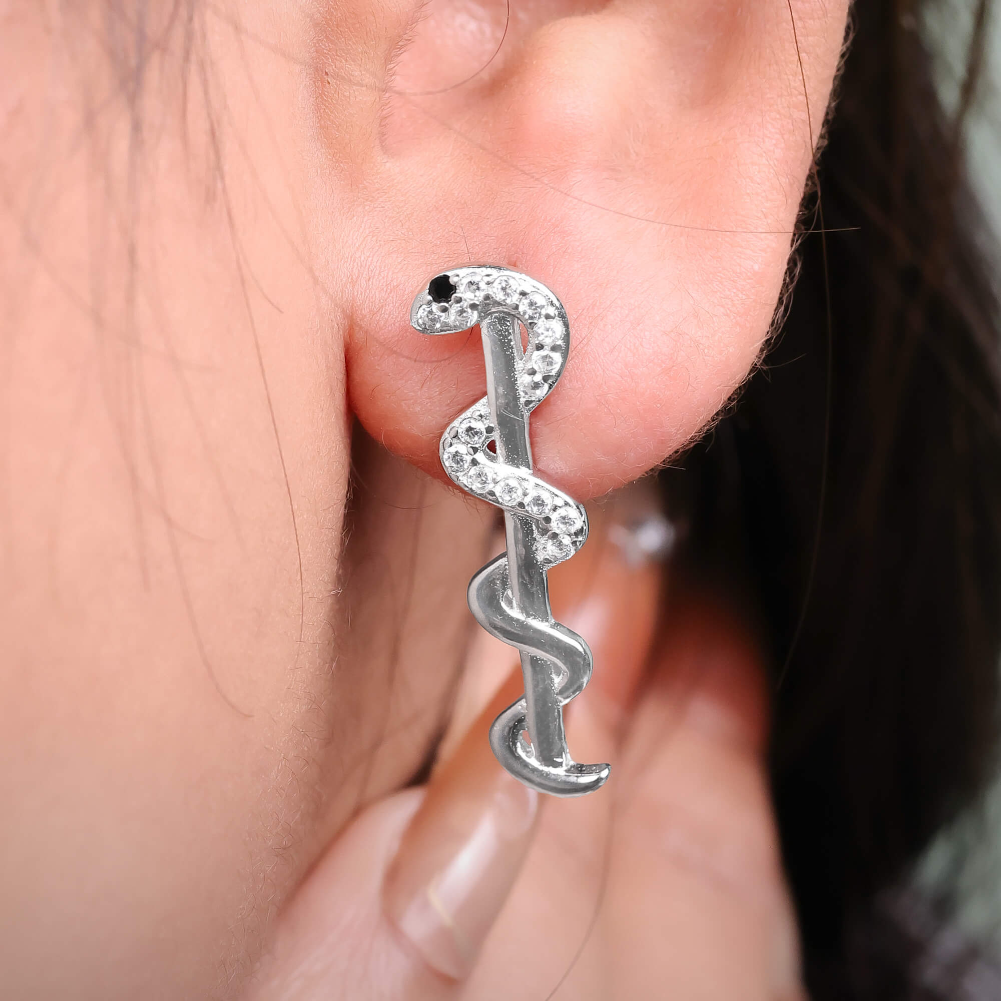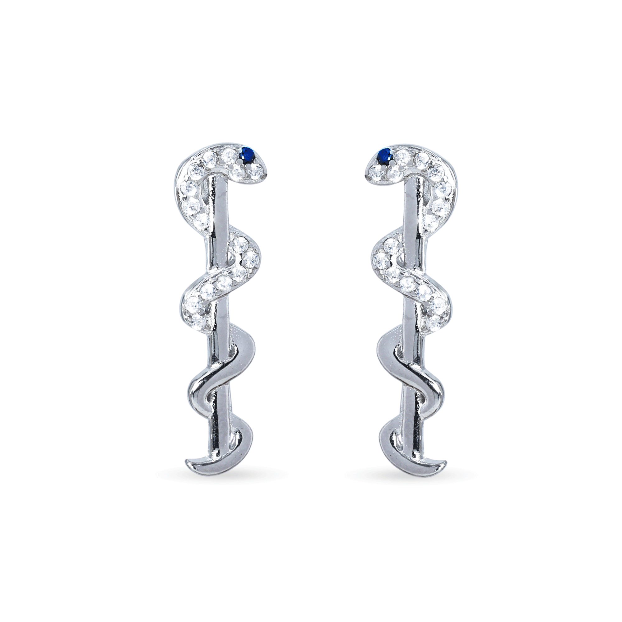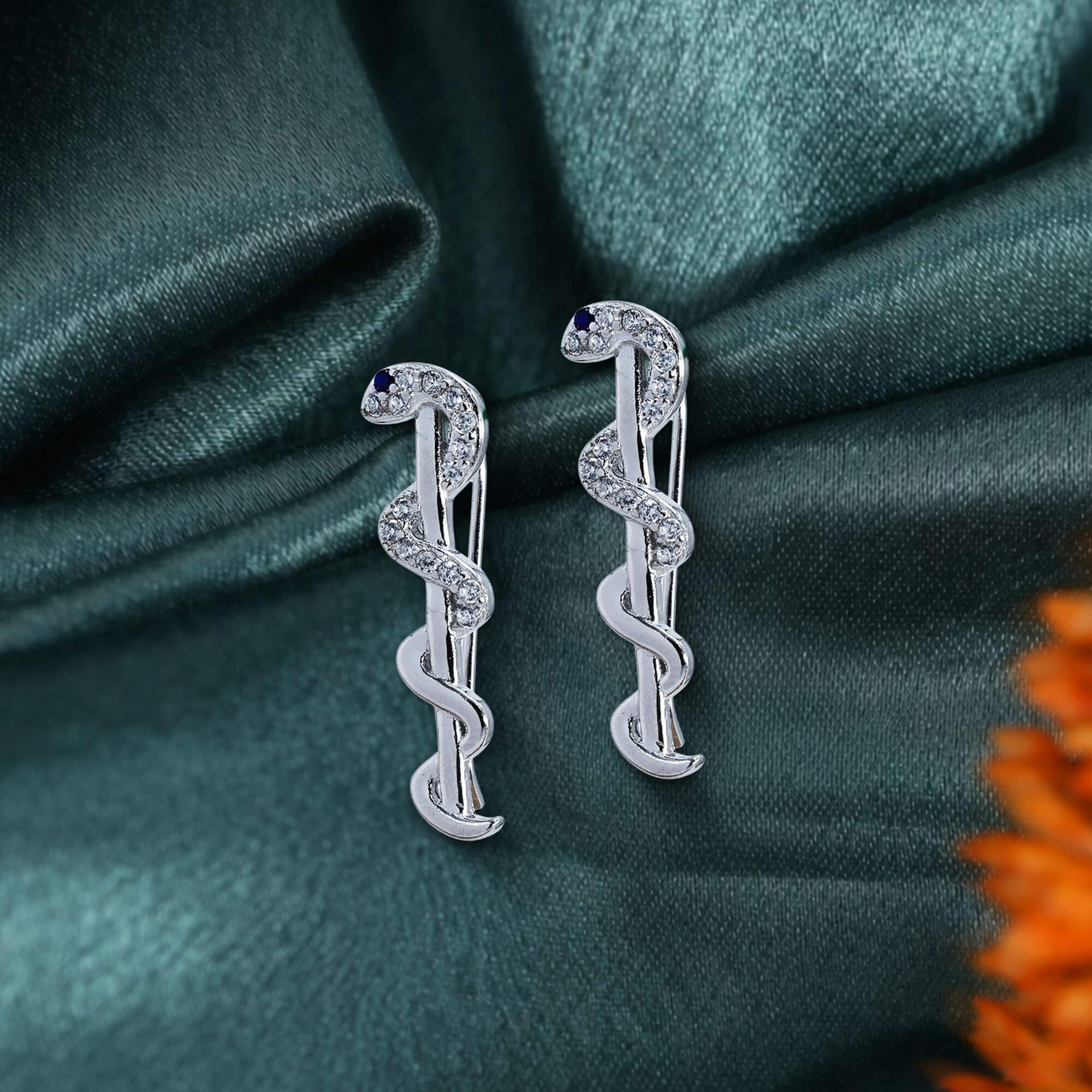 "Elegant with a bold edge, the Serpent Spark Silver Stick Tops are crafted in 925 sterling silver and feature a sleek stick design inspired by a flowing snake pattern. Micro white cubic zirconia stones are delicately embedded along the design, adding a refined sparkle that enhances the graceful curves. Lightweight and comfortable, these tops are perfect for daily wear, office styling, and modern minimal looks. The snake motif symbolises strength and elegance, while the subtle shimmer keeps the design classy and wearable."