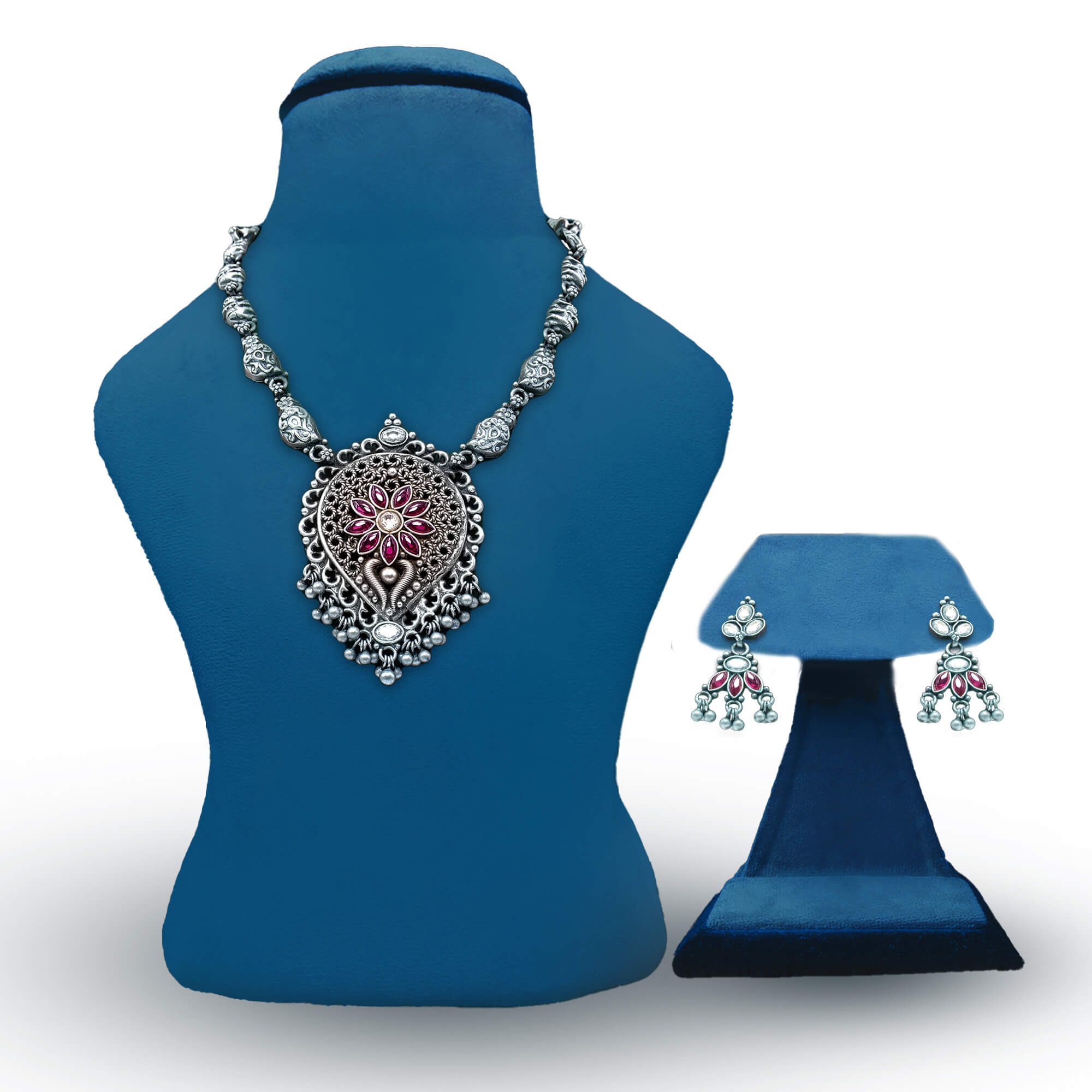 The Leafy Luminance Collar Necklace Set is a stunning and sophisticated piece that brings nature-inspired beauty to life. The collar-style necklace features intricate leaf-shaped designs, each adorned with sparkling CZ stones that catch the light with every movement. The set includes matching earrings that complement the necklace elegant design, creating a cohesive and radiant look. Crafted from high-quality 925 sterling silver with a polished finish, this set exudes a refined, luminous charm. Perfect for formal events or adding a touch of glamour to any outfit, the Leafy Luminance Collar Necklace Set is a true statement of elegance and nature grace.