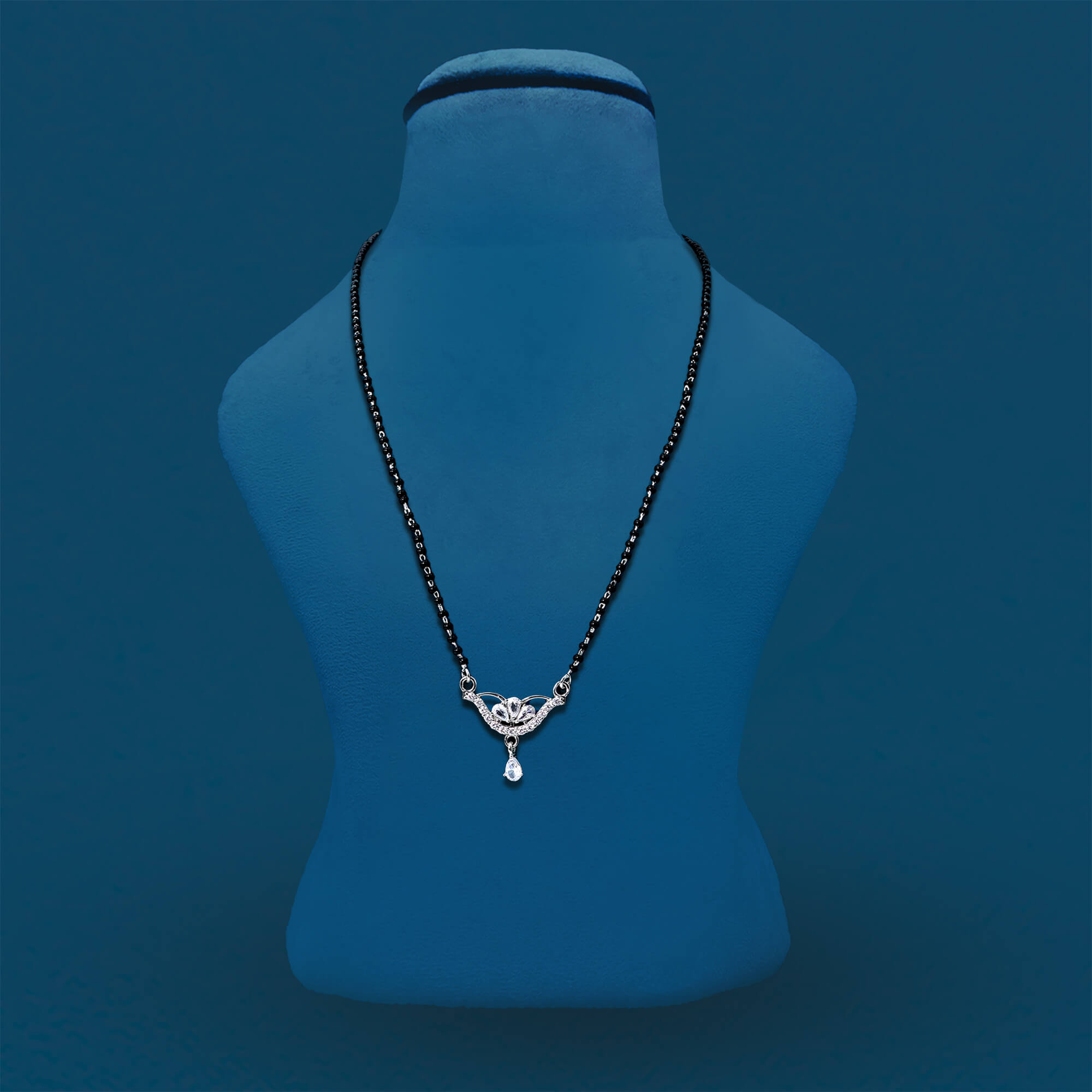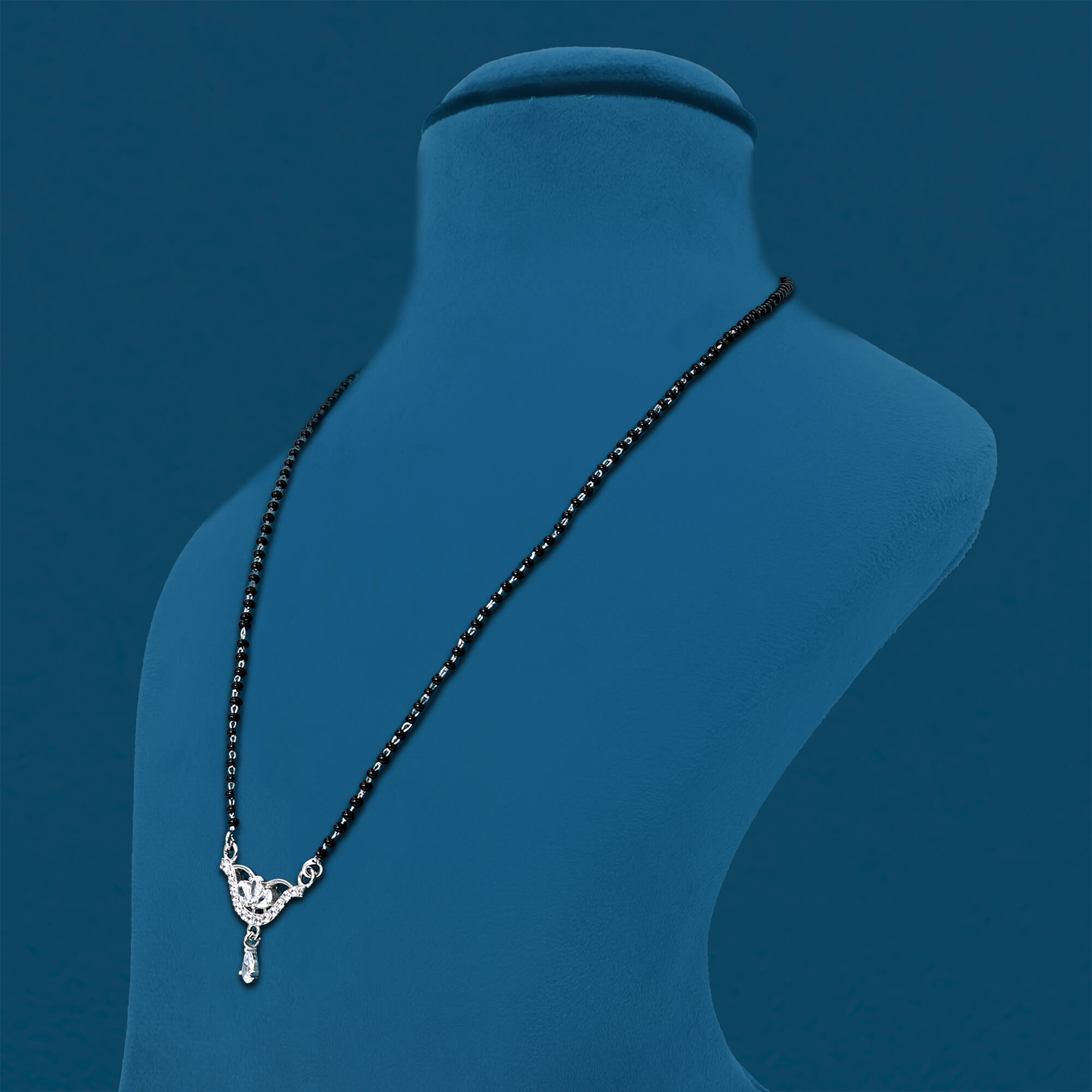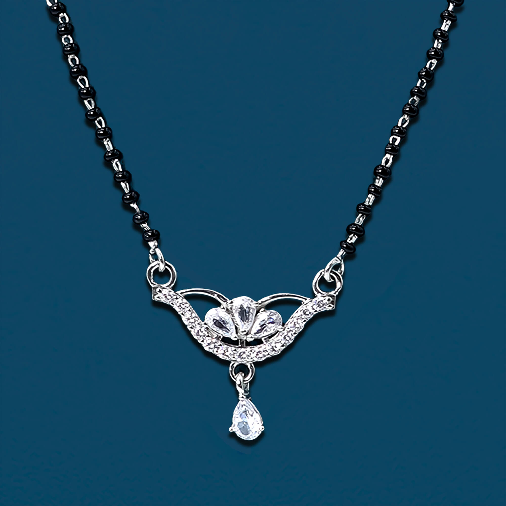 The Radiant Bliss Mangal Sutra is a beautiful and sophisticated piece of jewelry, crafted from high-quality 925 sterling silver. This mangal sutra features a delicate locket adorned with sparkling CZ stones that add a touch of elegance and brilliance. A small pendant hangs gracefully from the locket, enhancing its timeless charm. The intricate design blends tradition with a modern twist, making it a perfect choice for contemporary brides. With its radiant shine and meaningful symbolism, the Radiant Bliss Mangal Sutra is a symbol of love and commitment, perfect for special occasions and everyday wear.