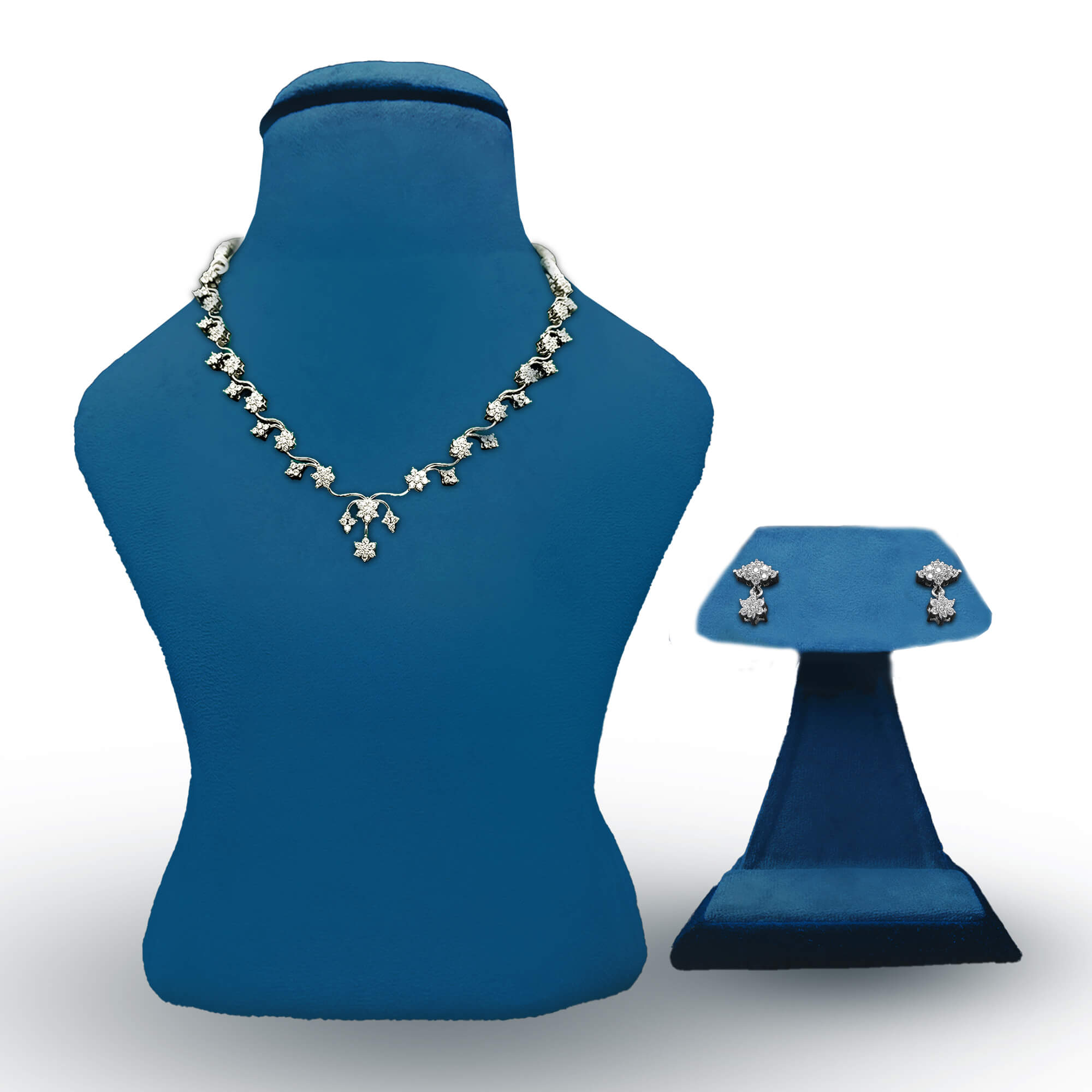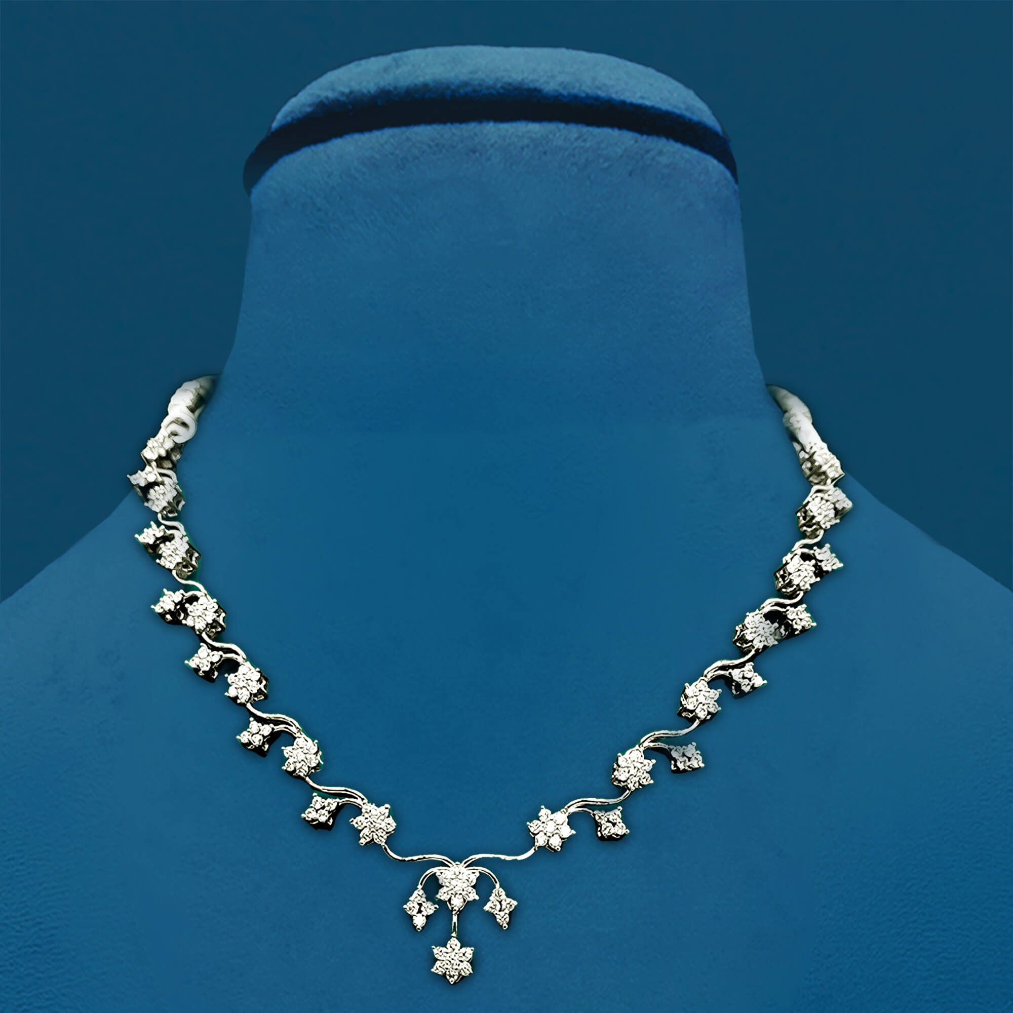 The Crystal Petal Necklace Set is a delicate and elegant piece crafted with flower-shaped white stones that shimmer with every movement. Designed for lightweight comfort, this set exudes a soft, radiant charm that enhances any outfit. The necklace features beautifully arranged petals, each sparkling with crystal clarity, creating a refined and sophisticated look. Paired with matching earrings, this set offers a perfect balance of elegance and grace, making it ideal for both formal occasions and casual wear. The Crystal Petal Necklace Set is a timeless accessory that adds a touch of floral beauty and radiance to your jewelry collection.