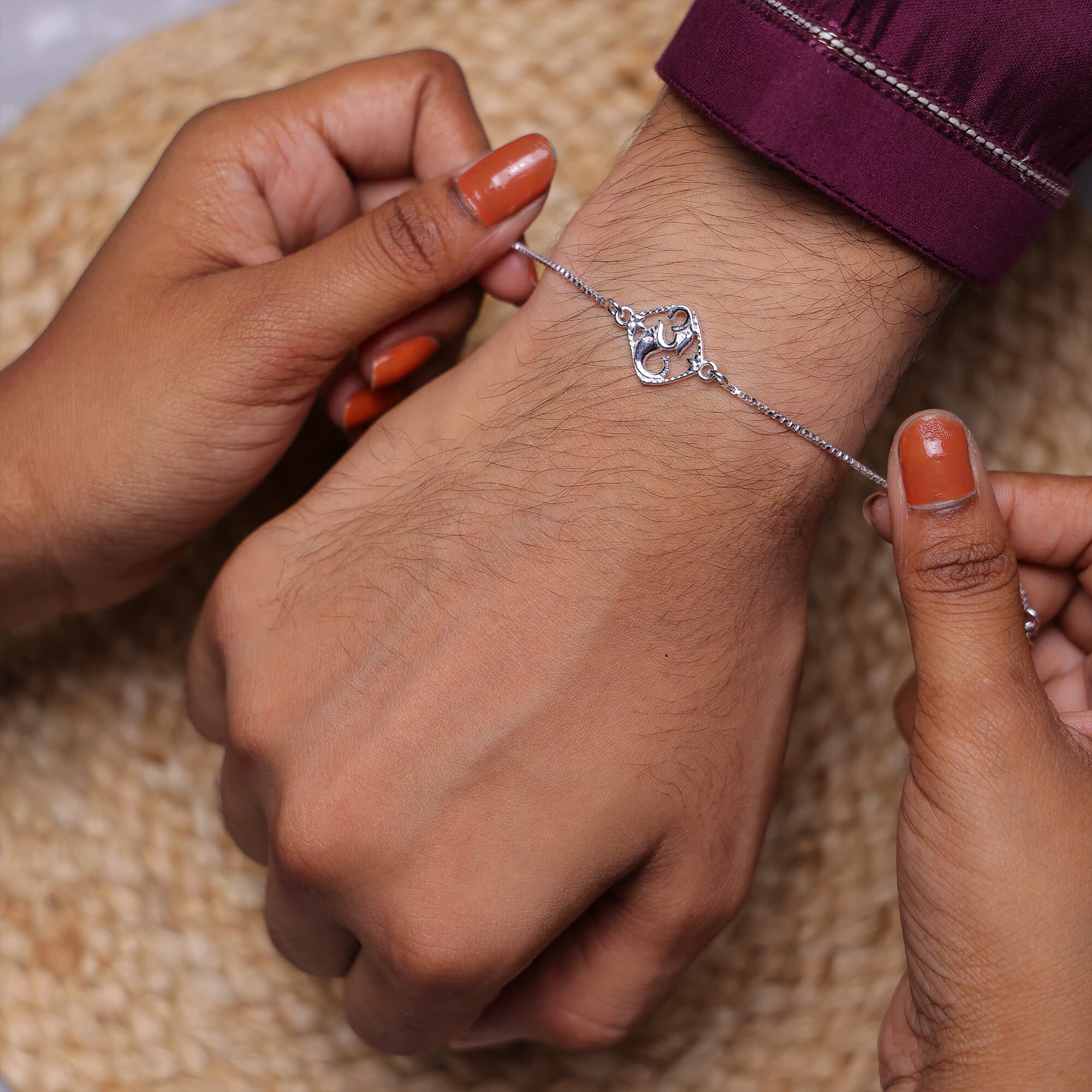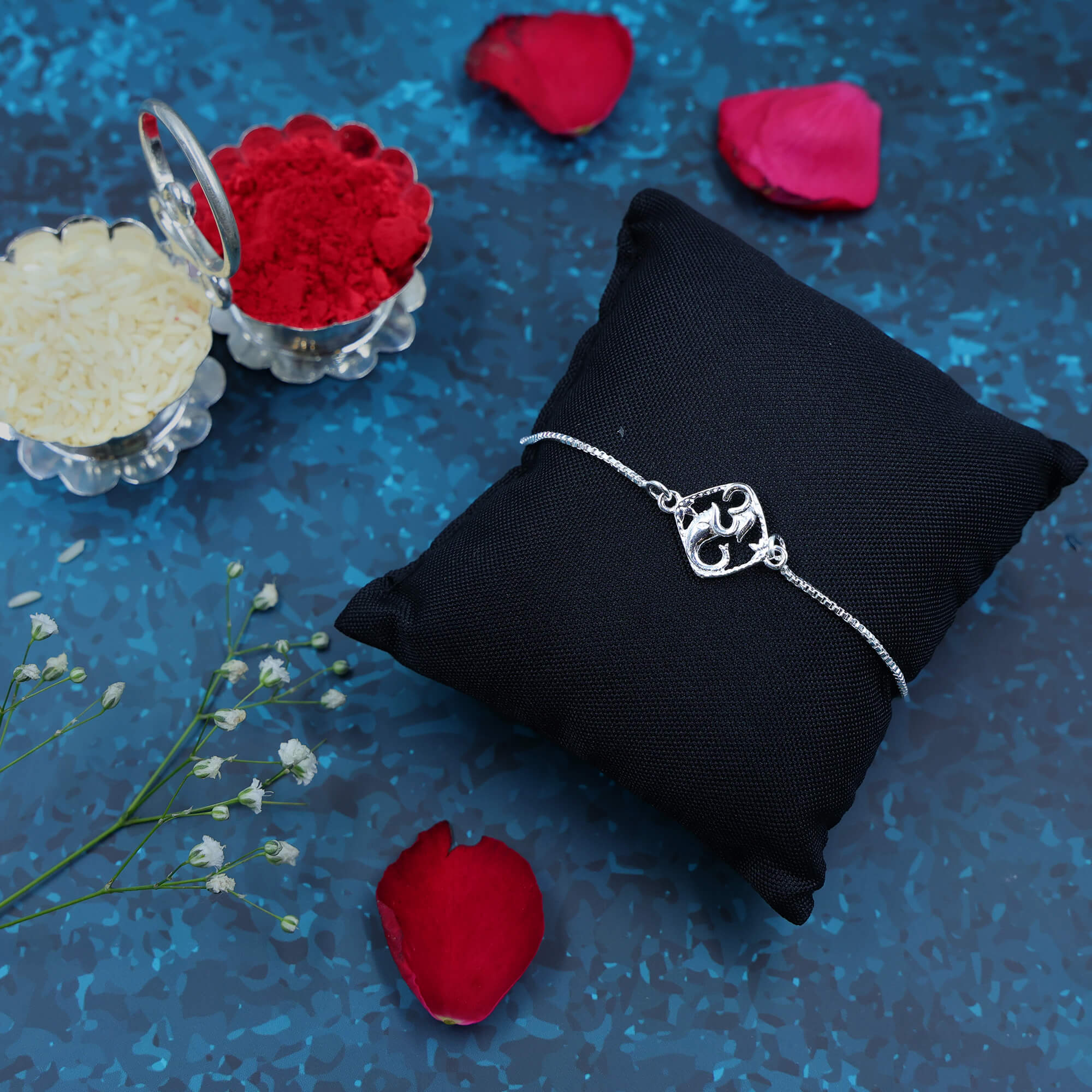 Invoke the divine presence of Lord Ganesha with the Siddhivinayak Sutra Rakhi, crafted in pure 925 silver. This sacred rakhi combines the eternal power of ‘Om’ with the grace of Lord Siddhivinayak (Ganpati) – the remover of obstacles and the giver of wisdom, wealth, and success. A perfect spiritual token of love, protection, and divine blessings for your brother.