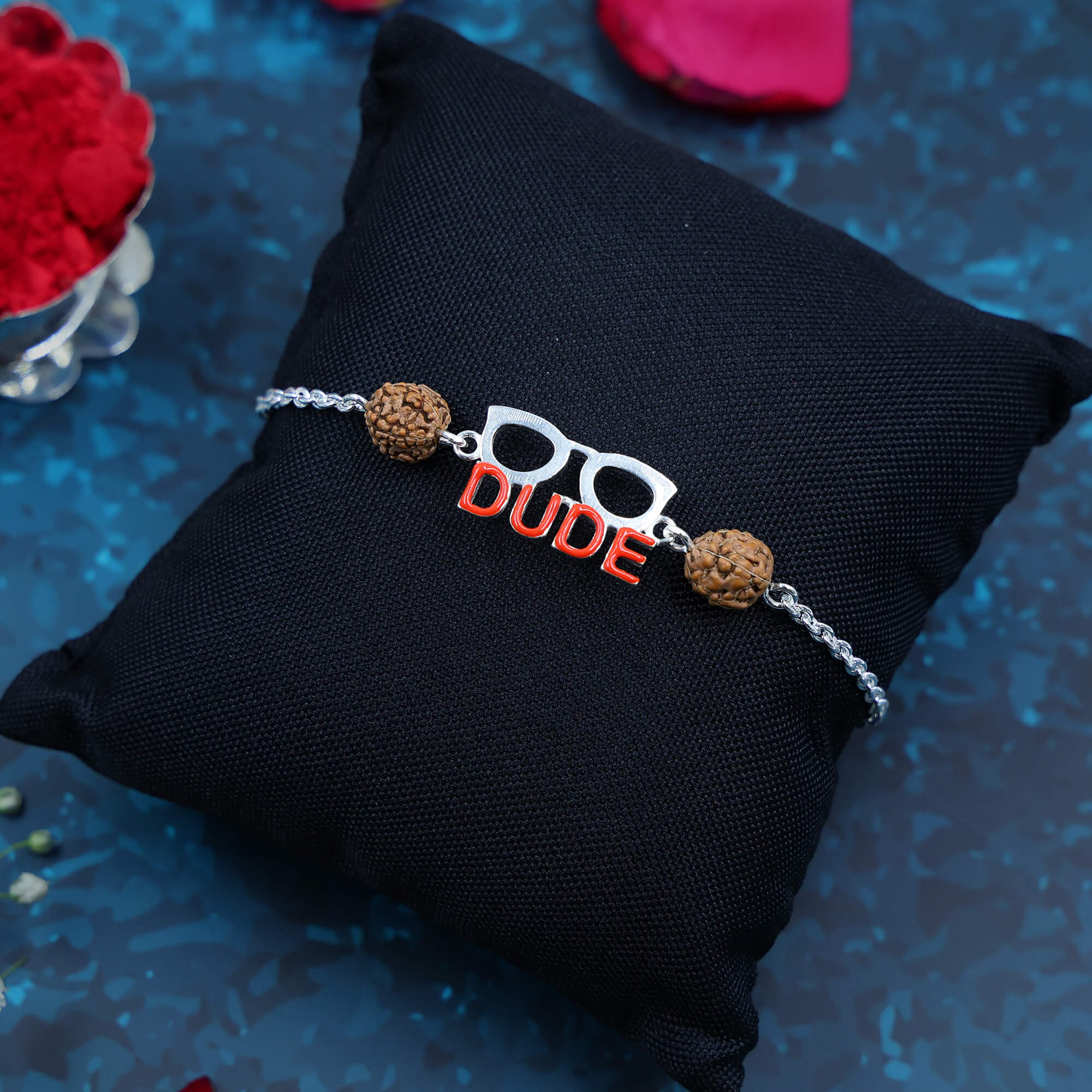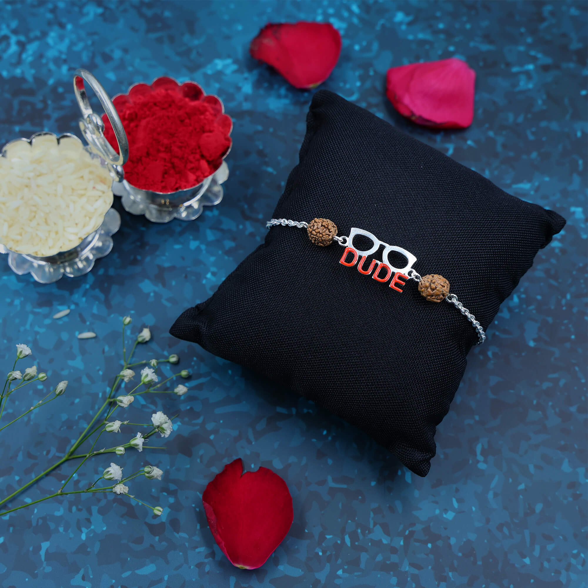 Break the usual with this playful and stylish CoolDude Bandhan Rakhi, crafted in hallmarked 925 silver. Featuring funky goggles and the word “Dude” boldly etched, this rakhi is a perfect pick for the modern-day brother who’s full of swag, humor, and heart. It’s not just a Rakhi – it’s a statement for the coolest bhai in town.