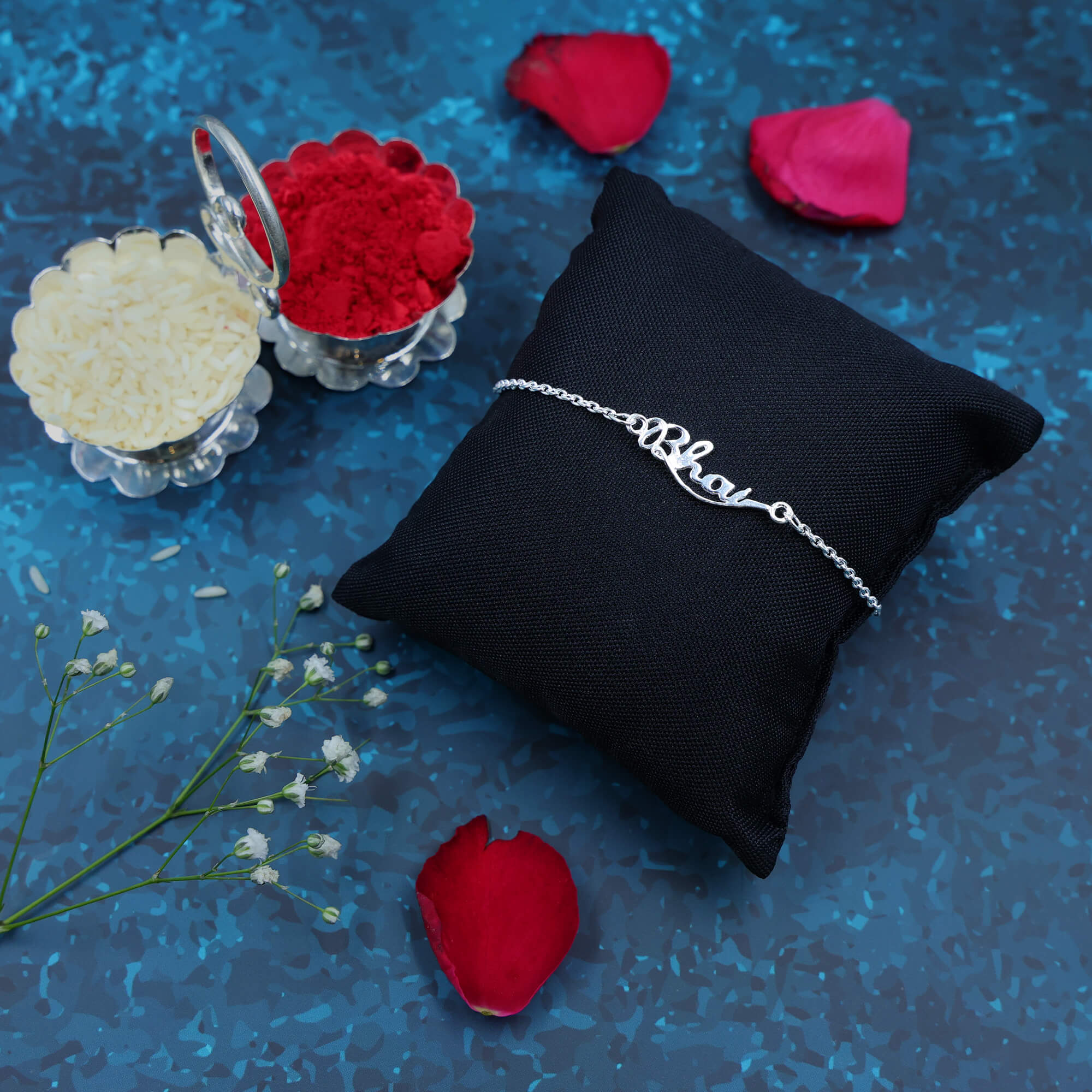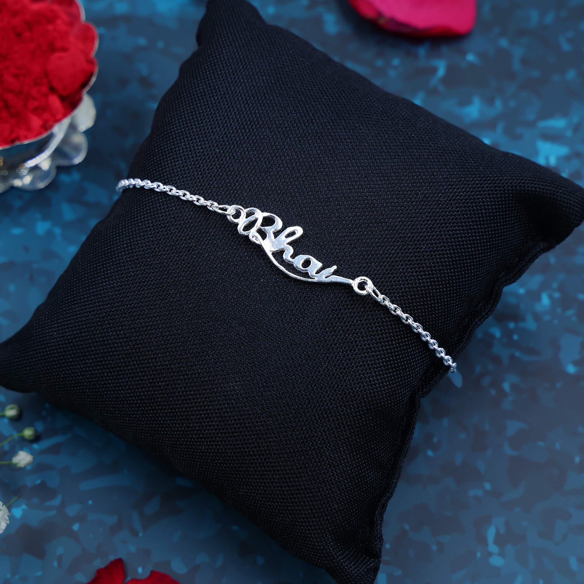 Add a touch of timeless elegance to Raksha Bandhan with the SignatureBhai Rakhi, designed in pure 925 sterling silver. The word “Bhai” is engraved in graceful cursive script, capturing the beauty of handwriting and the strength of brotherhood in a single piece. Perfect for the brother who values both style and sentiment, this rakhi becomes a lasting memento of love — one he’ll wear and cherish long after the festival.