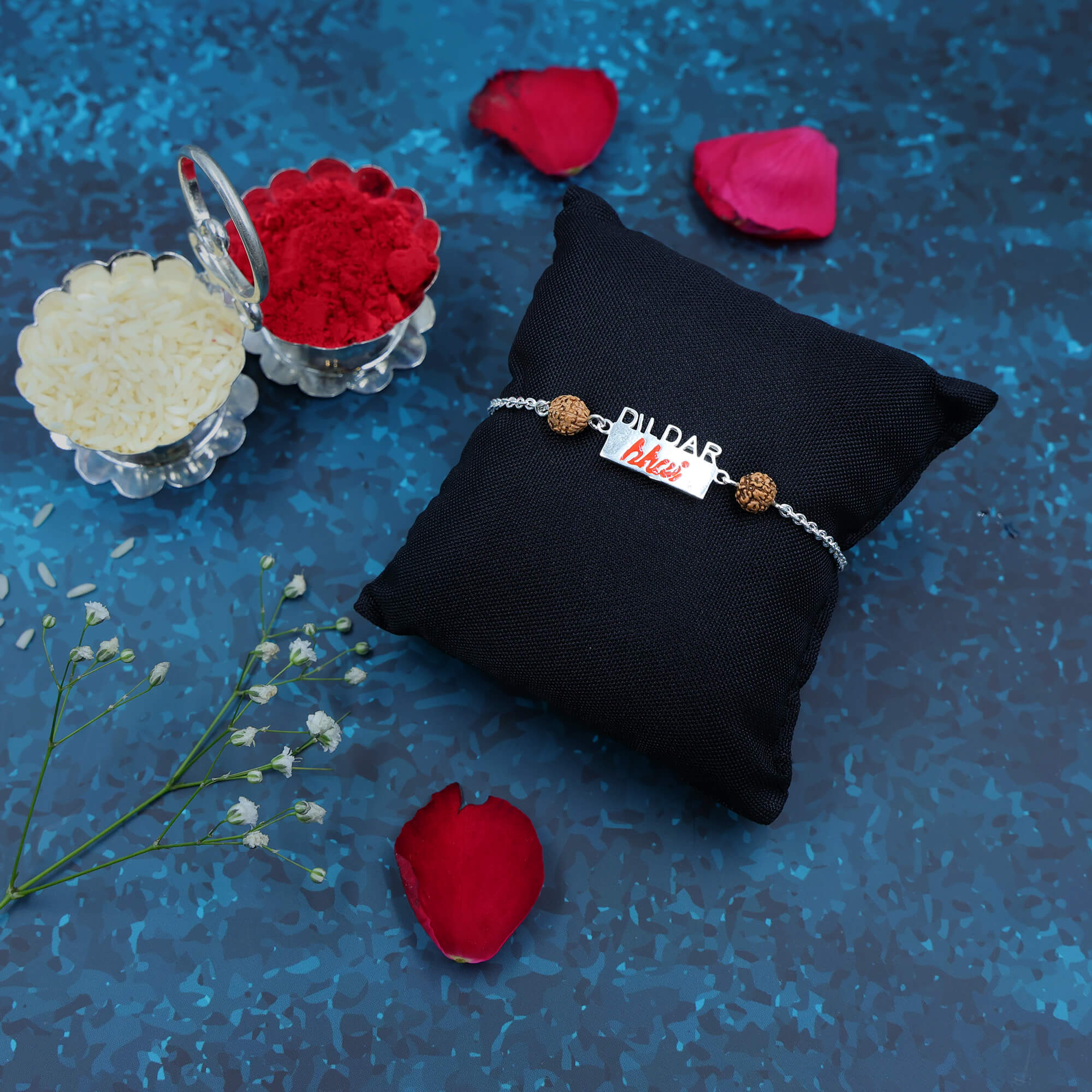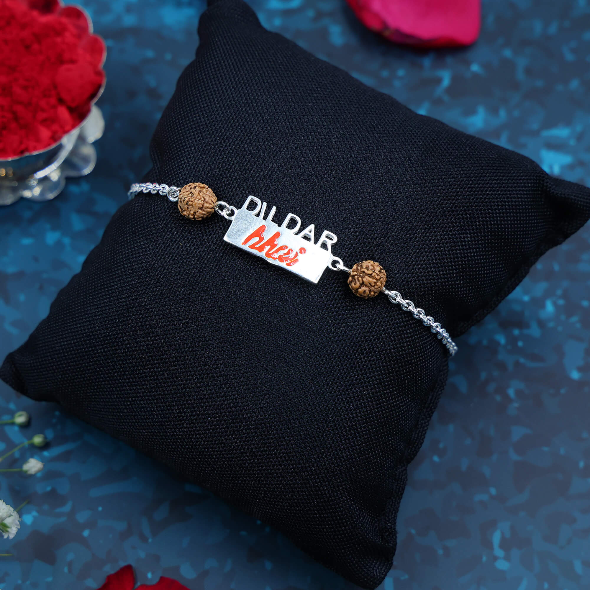 Celebrate your fun-loving, generous, and ever-smiling brother with the vibrant DildarBhai Rakhi. Crafted in hallmarked 925 sterling silver, this rakhi features the words “Dildar Bhai” in a bold and expressive style — a perfect tribute to the bhai who’s always got your back, gives without thinking twice, and fills every room with his energy. Whether he’s the family entertainer or the dependable rock, this rakhi honors his big heart with big style.