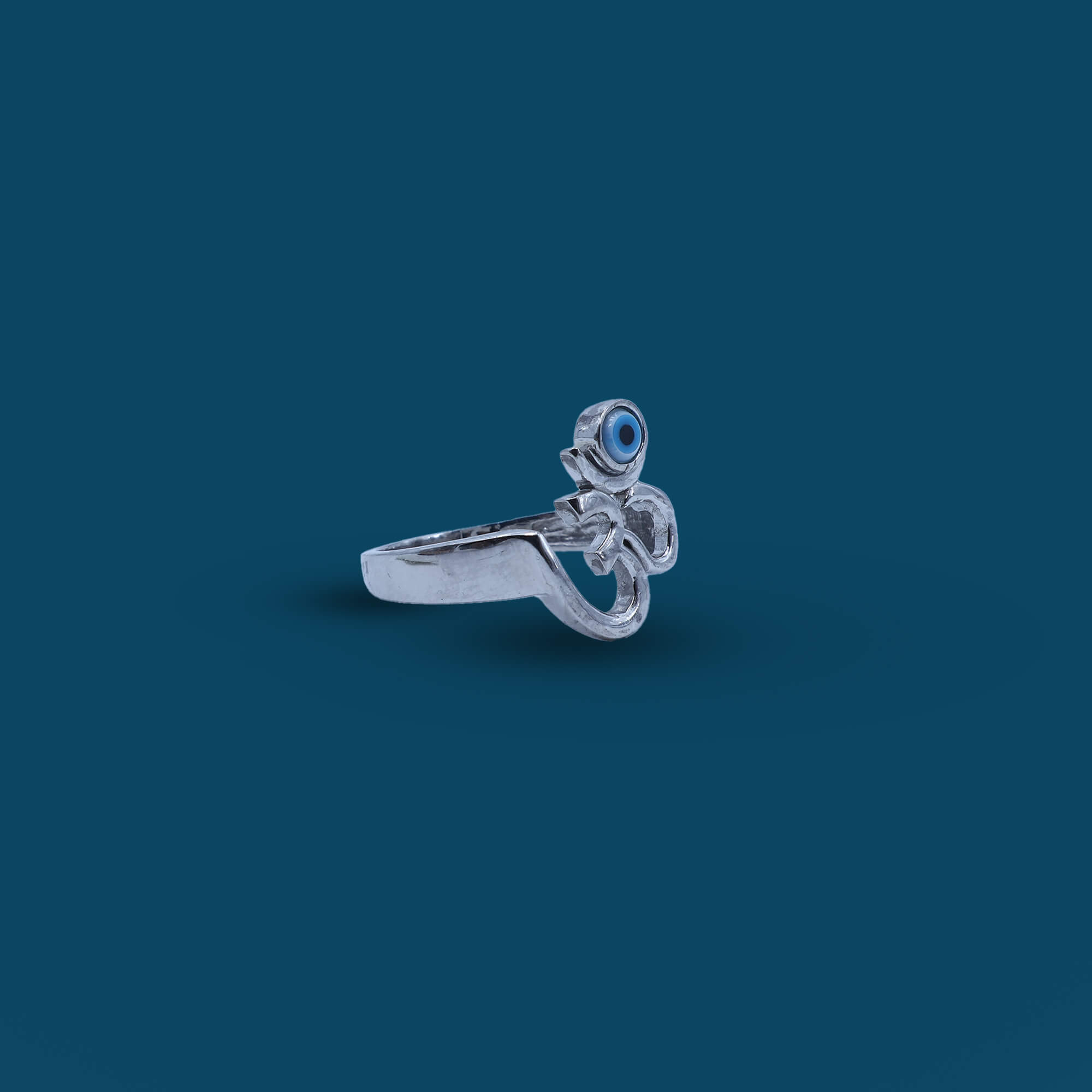 The Mystic Om Evil Eye Gents Ring is a bold and meaningful piece crafted from high-quality 925 sterling silver. This ring combines two powerful symbols: the Om, representing peace, spirituality, and enlightenment, and the Evil Eye, offering protection and warding off negative energy. The Om symbol is intricately detailed at the center, surrounded by a vibrant Evil Eye design, which is adorned with sparkling CZ stones for added shine and significance. The sleek silver band adds a modern touch to this spiritual and protective ring, making it the perfect accessory for those who value both style and symbolism. Ideal for daily wear or special occasions, the Mystic Om Evil Eye Gents Ring is a powerful expression of inner strength, peace, and protection.