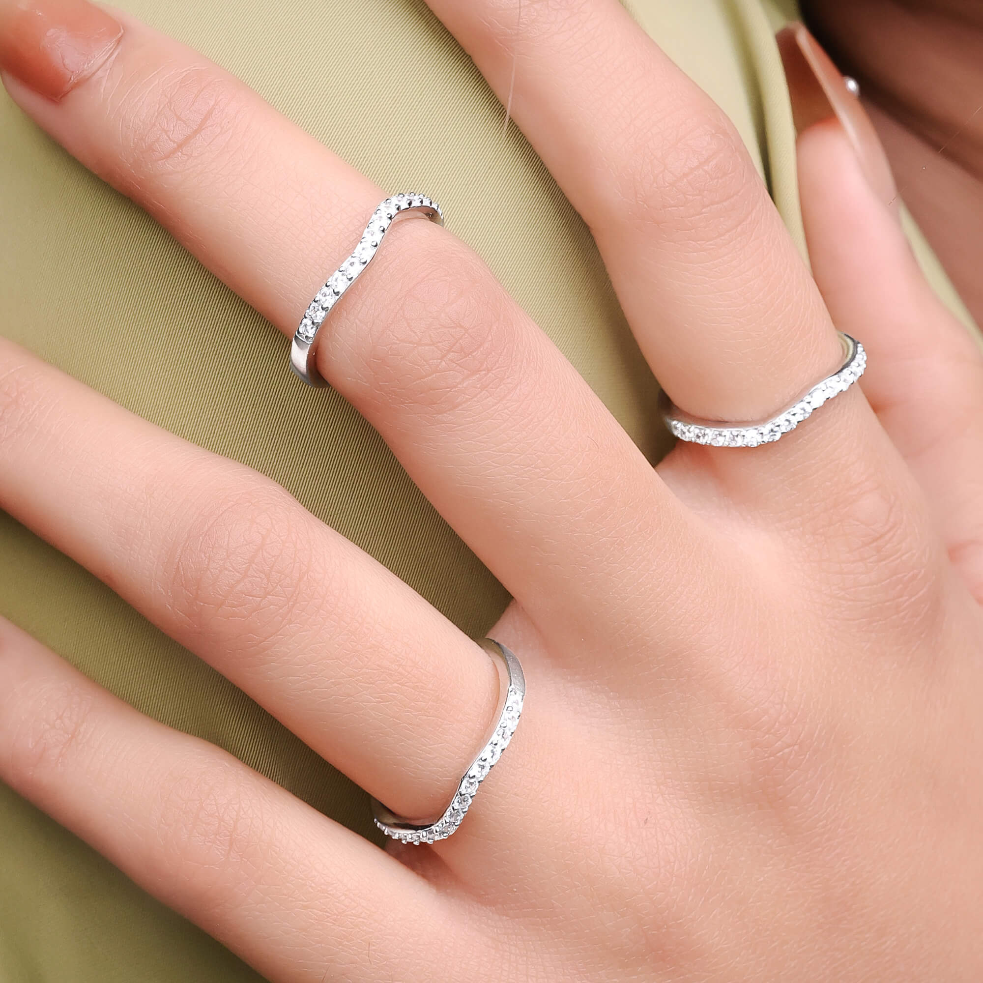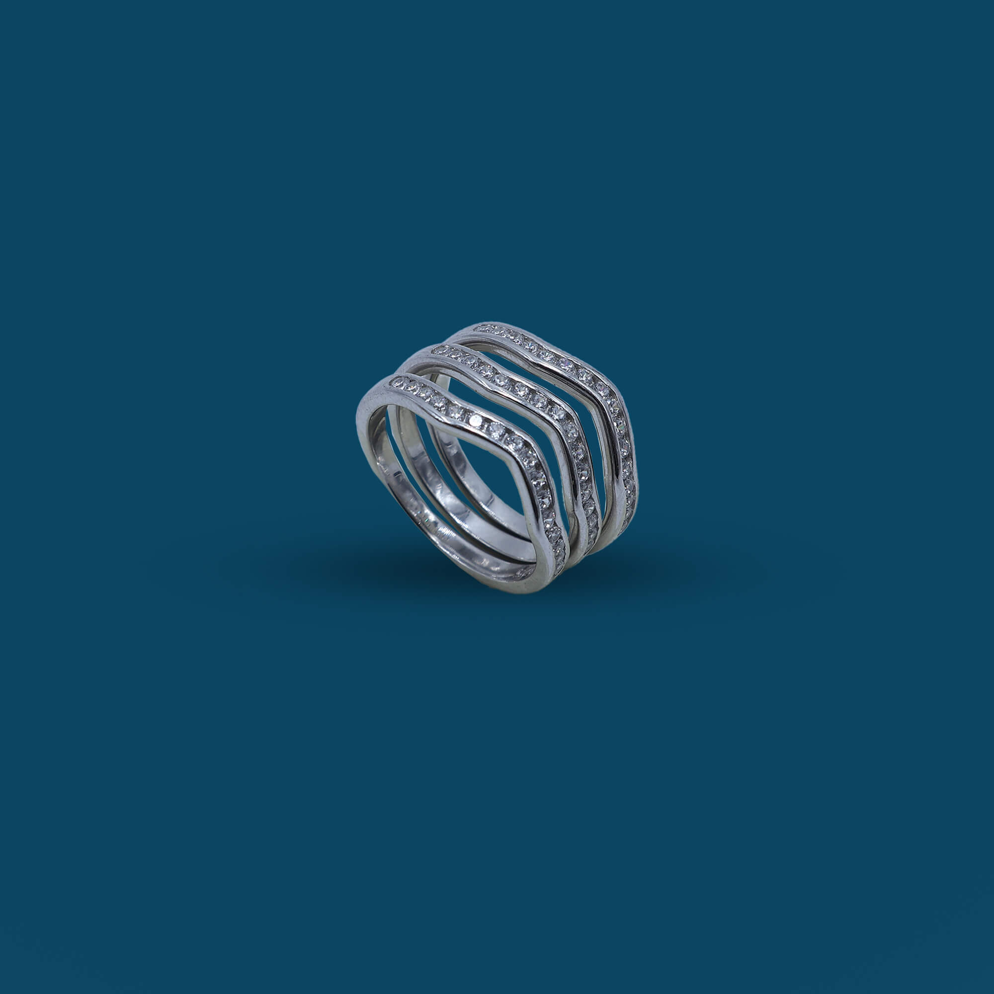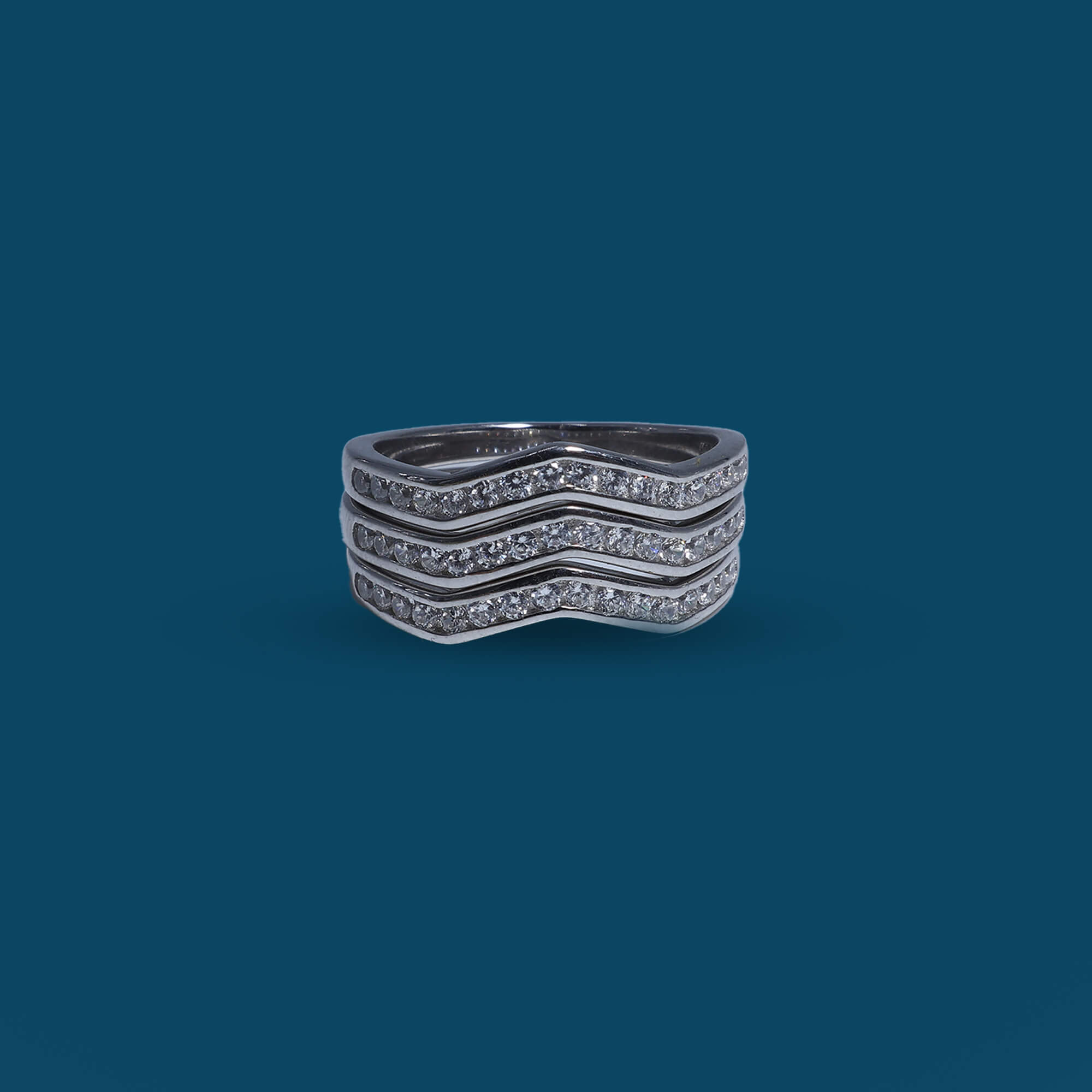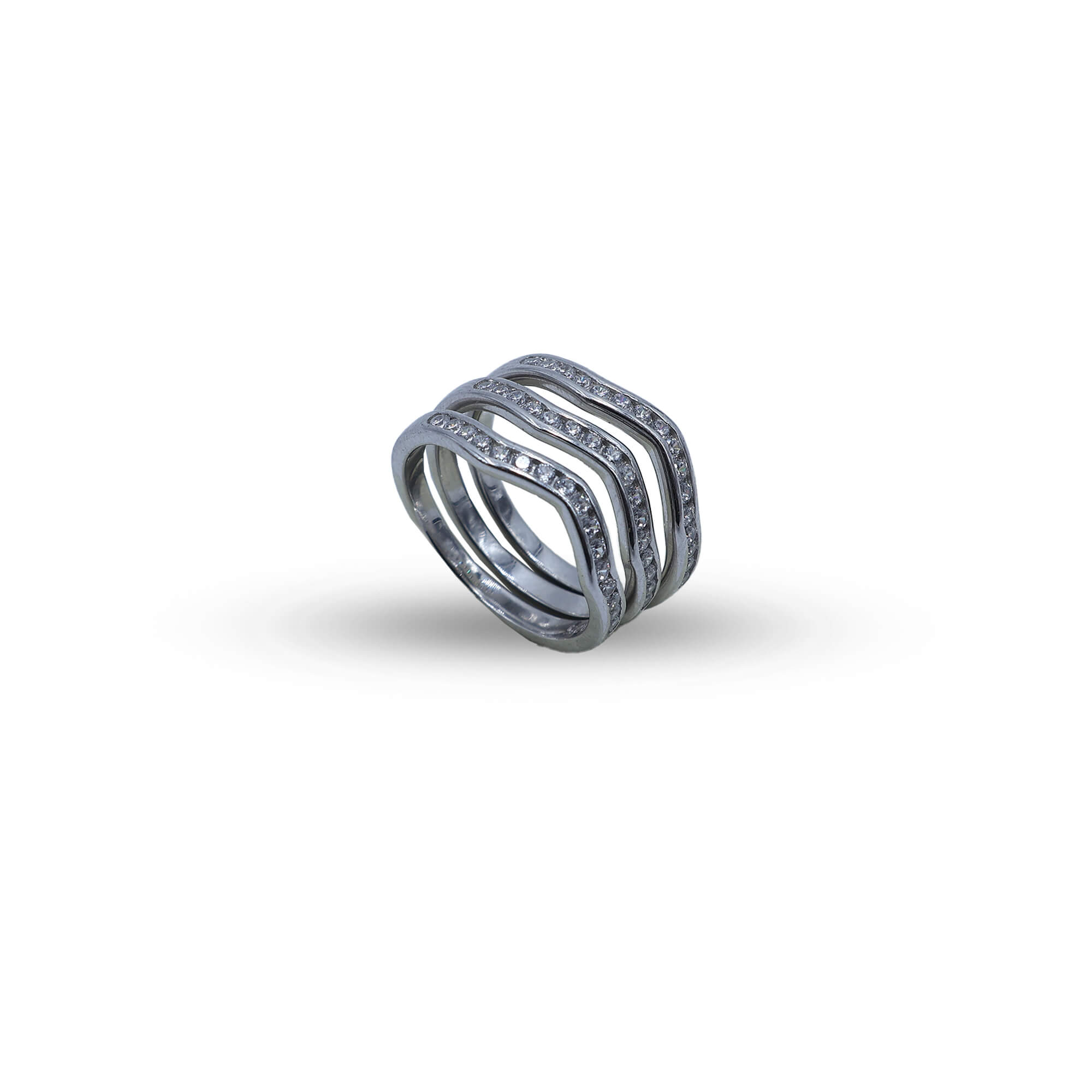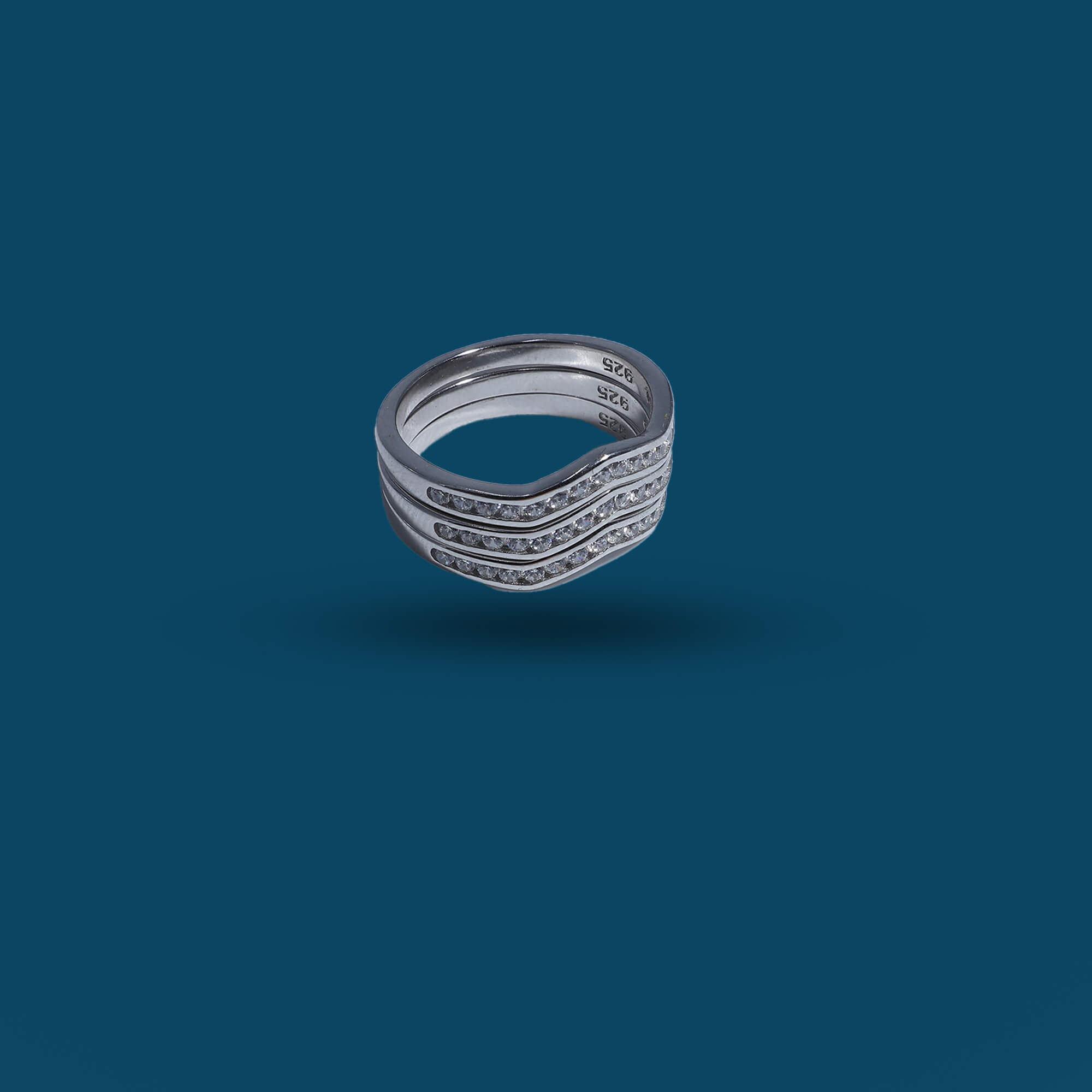 The Triple Gleam Set is a stunning trio of 925 sterling silver rings, each designed to complement the other with a radiant sparkle. This set features three slim, elegantly curved bands, adorned with glistening CZ stones that catch the light beautifully. The rings can be worn stacked for a bolder look or individually for a touch of understated elegance, offering versatility to suit any occasion. The polished silver finish enhances the brilliance of the stones, making each ring in the set a timeless accessory. Perfect for adding a touch of sophistication to any outfit, the Triple Gleam Set embodies elegance and charm.