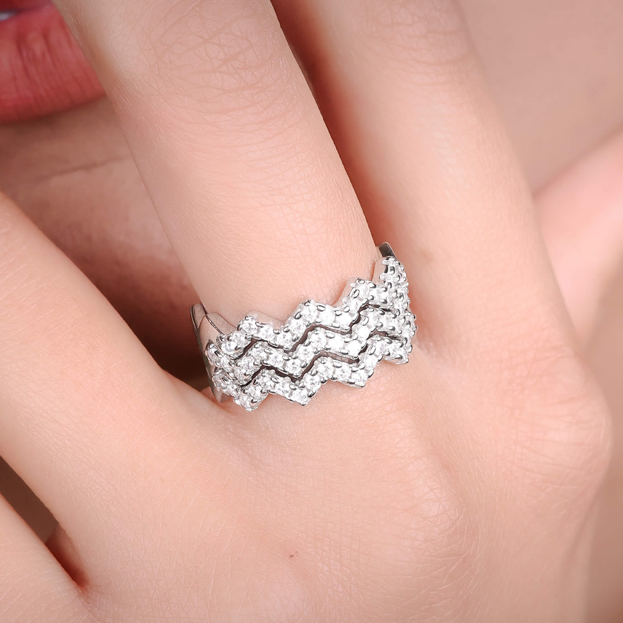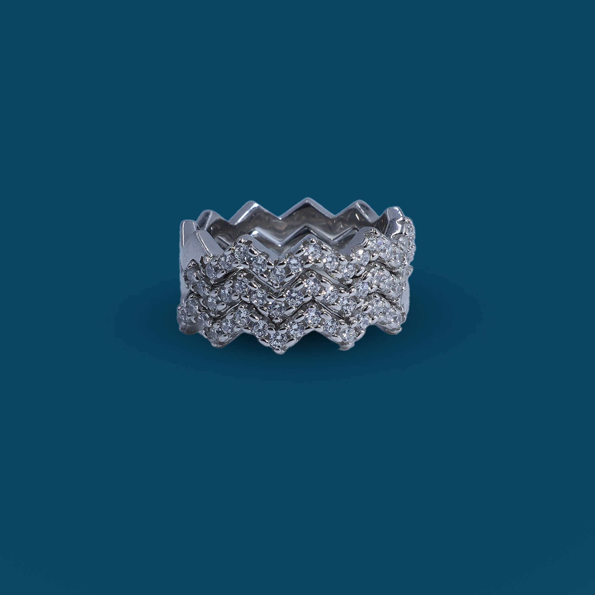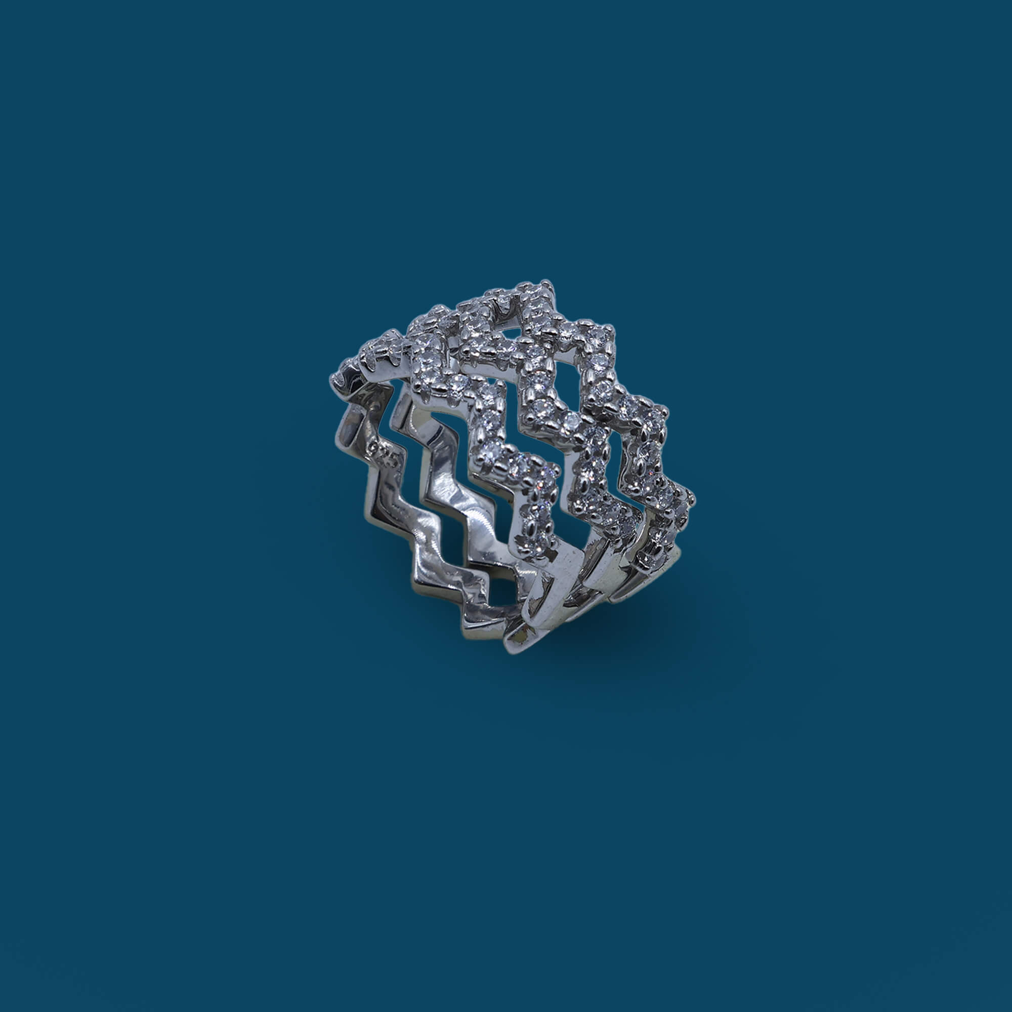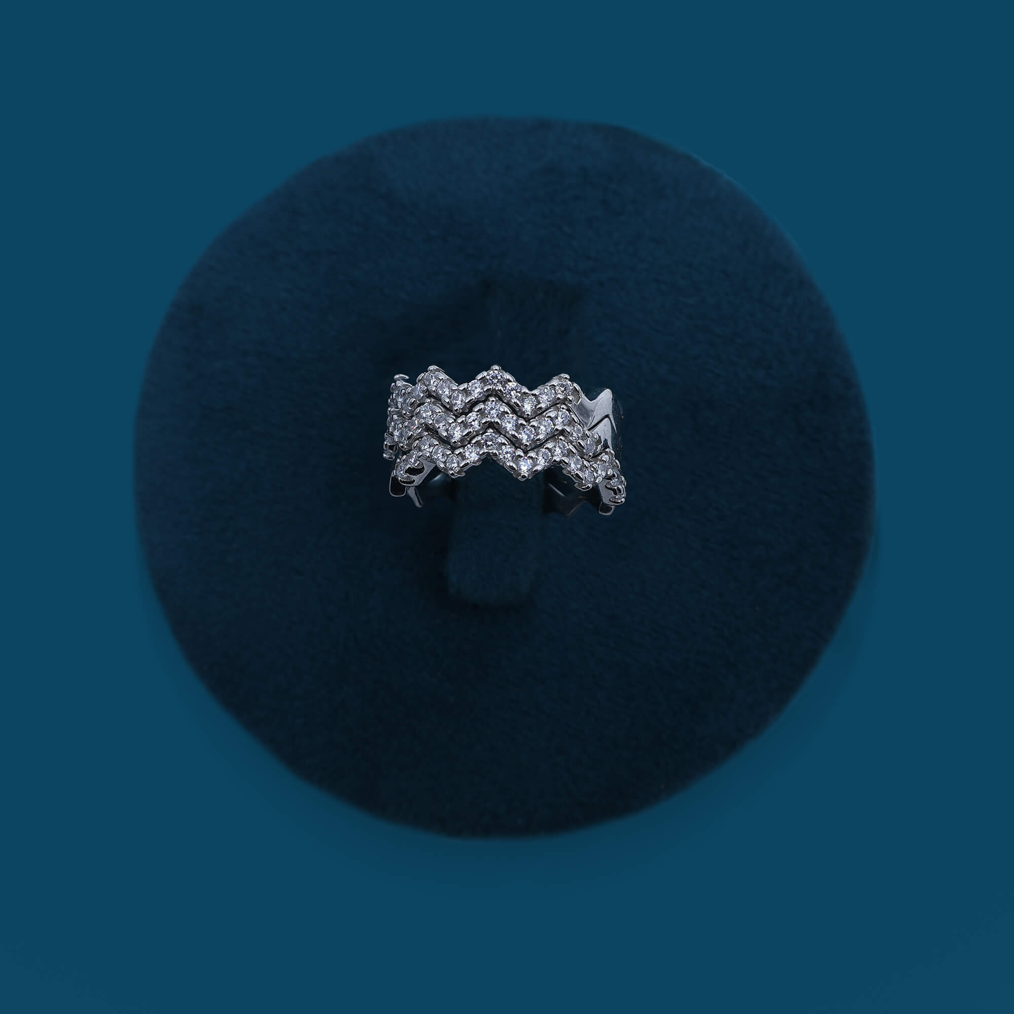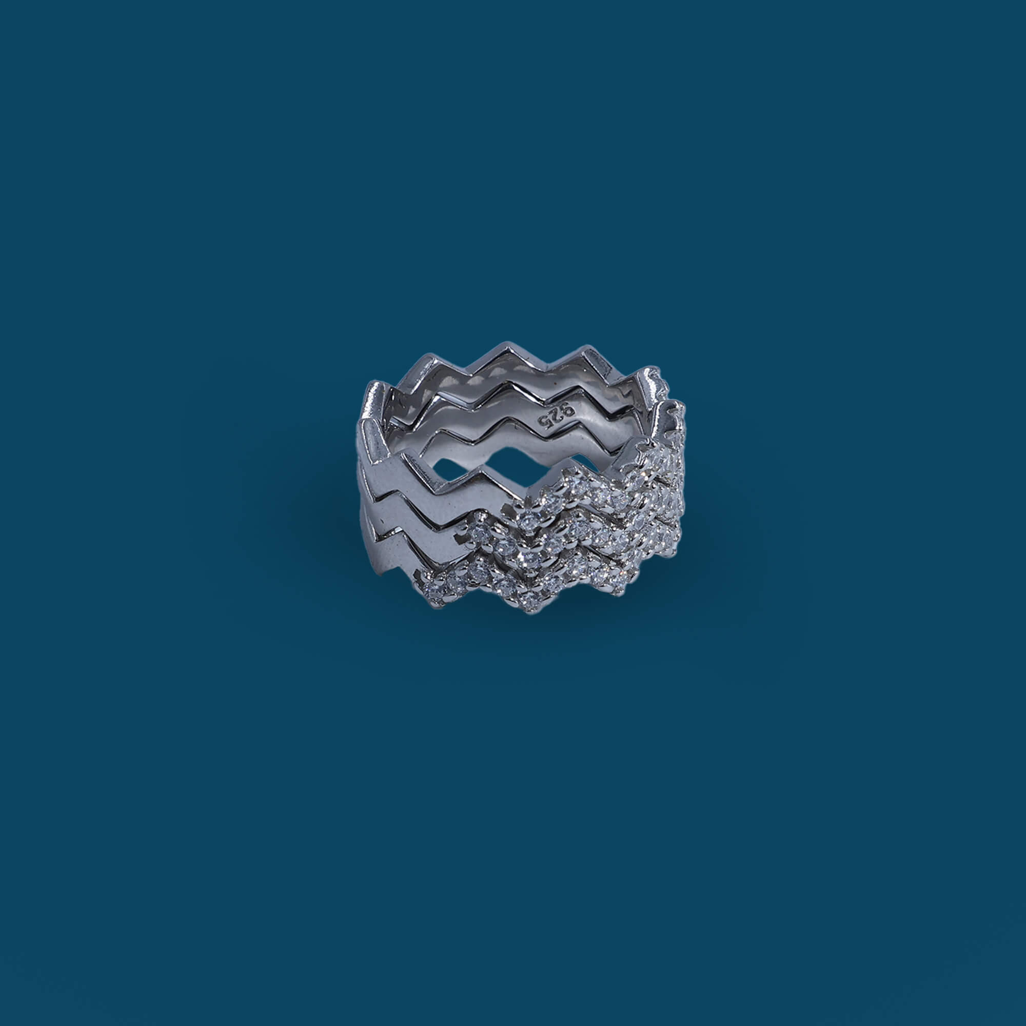 The Ziggle Spark Trio is a unique and stylish set of 925 sterling silver rings, each featuring a modern zig-zag pattern that adds a touch of playful elegance. Adorned with brilliant CZ stones along the zig-zag design, each ring sparkles beautifully, catching light from every angle. The slim bands can be worn stacked together for a bold, cohesive look or individually for a more subtle style. With its polished silver finish and intricate details, the Ziggle Spark Trio offers a fresh twist on classic elegance, making it a versatile accessory for both everyday wear and special occasions.