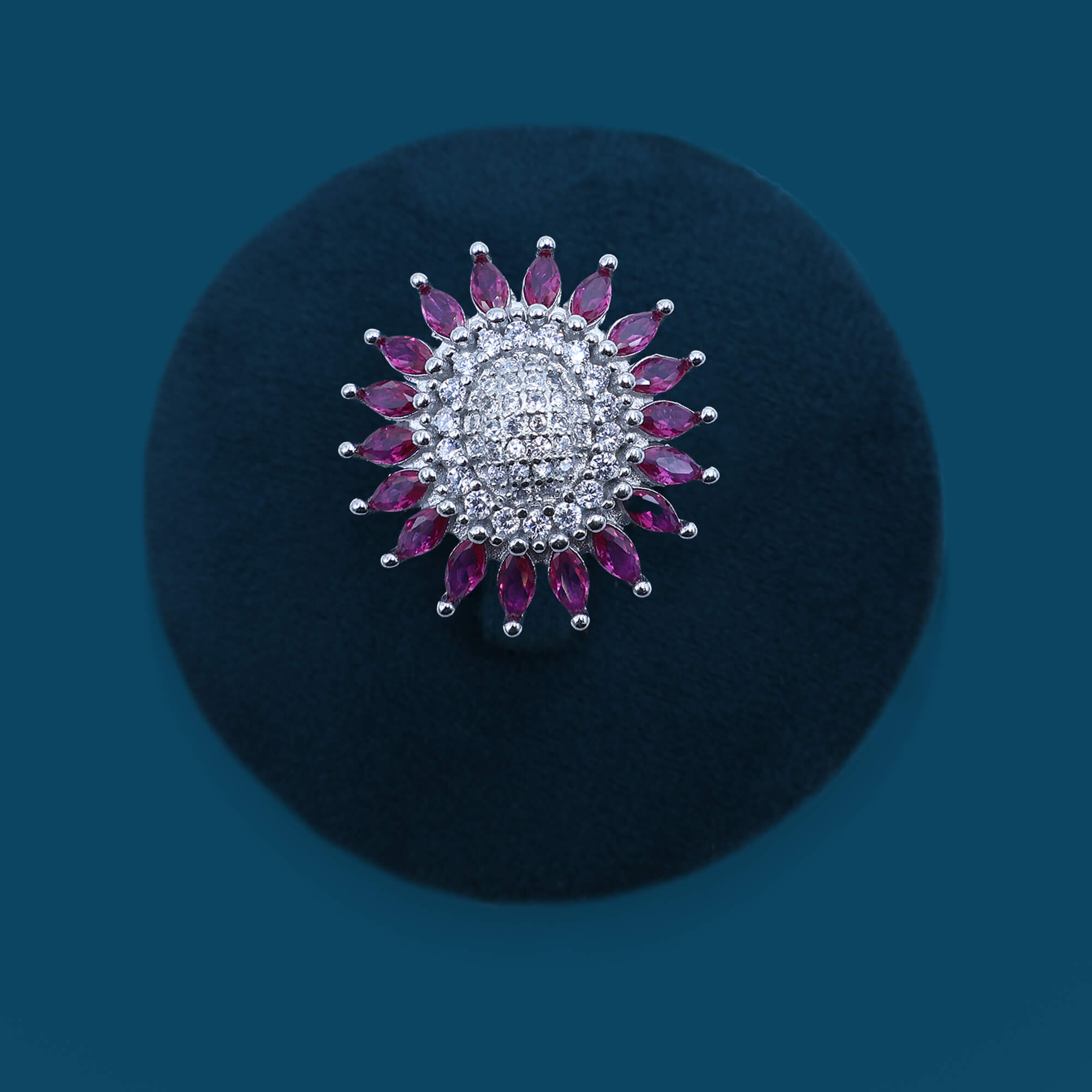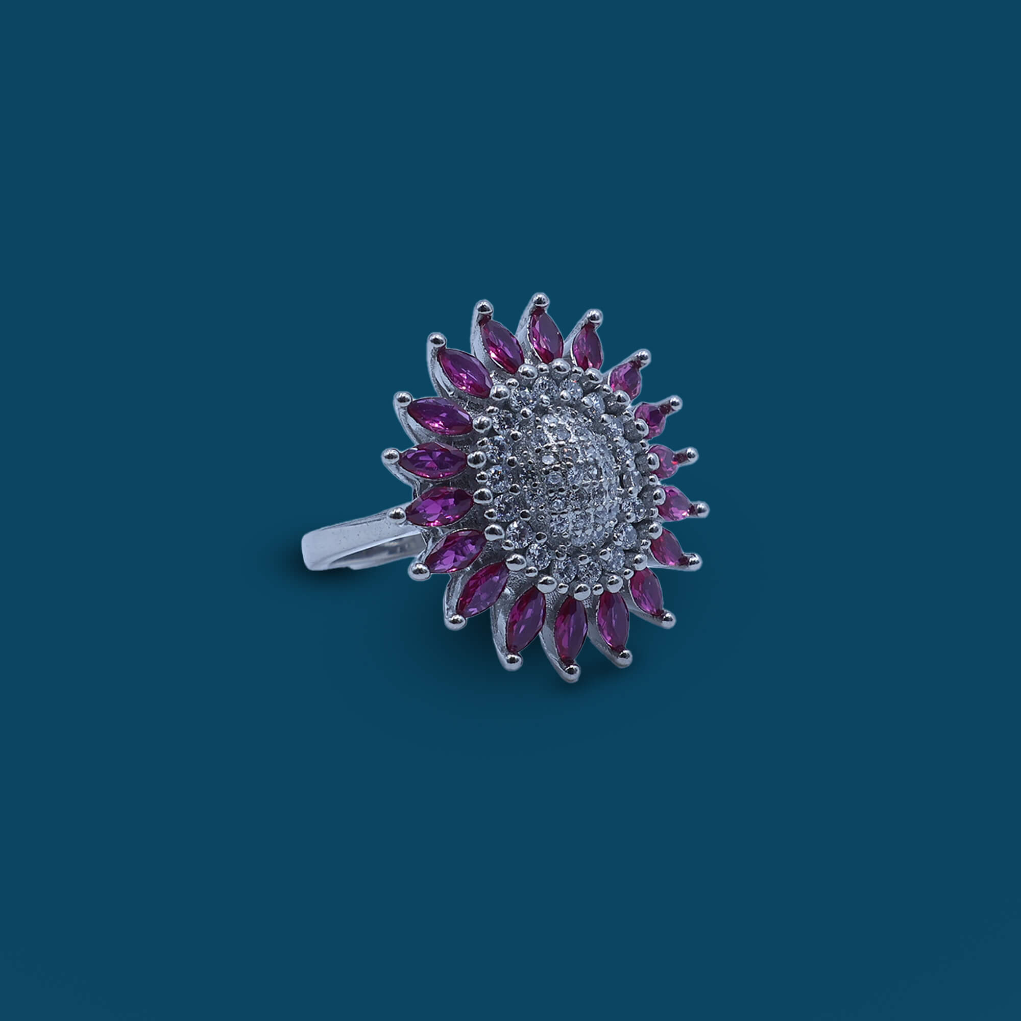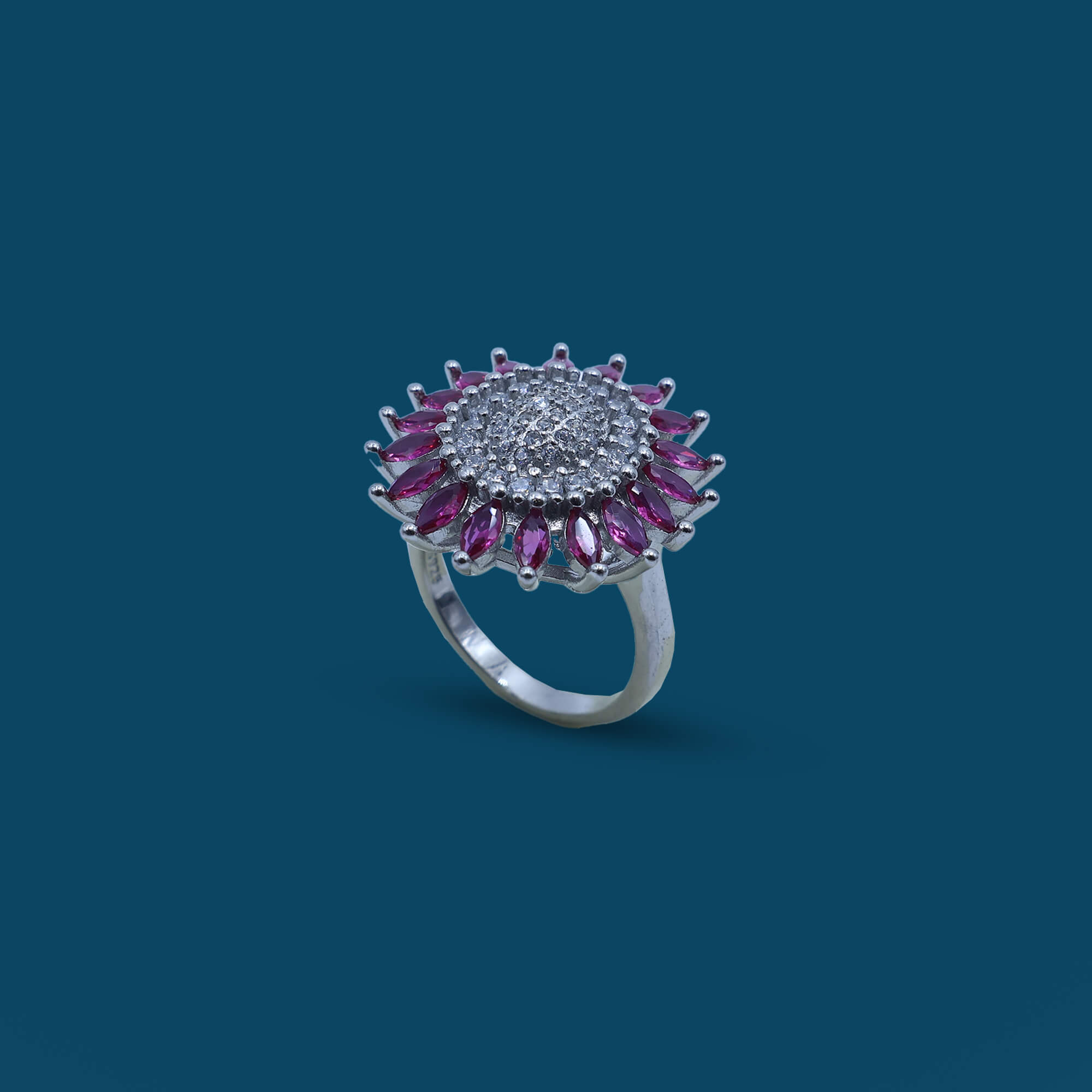 The Roseate Bloom Delight Ladies Ring is a stunning 925 sterling silver piece that captures the essence of floral elegance. The ring features a beautifully crafted rose-inspired design, with delicate petals highlighted by a soft, rosy-hued stone at the center. The intricate detailing of the flower petals adds depth and dimension, while the polished silver band ensures a smooth and comfortable fit. The combination of the rosy stone and the elegant floral motif brings a fresh, feminine touch to the design. Perfect for adding a charming and romantic element to any outfit, the Roseate Bloom Delight Ladies Ring is an ideal accessory for both casual and special occasions.