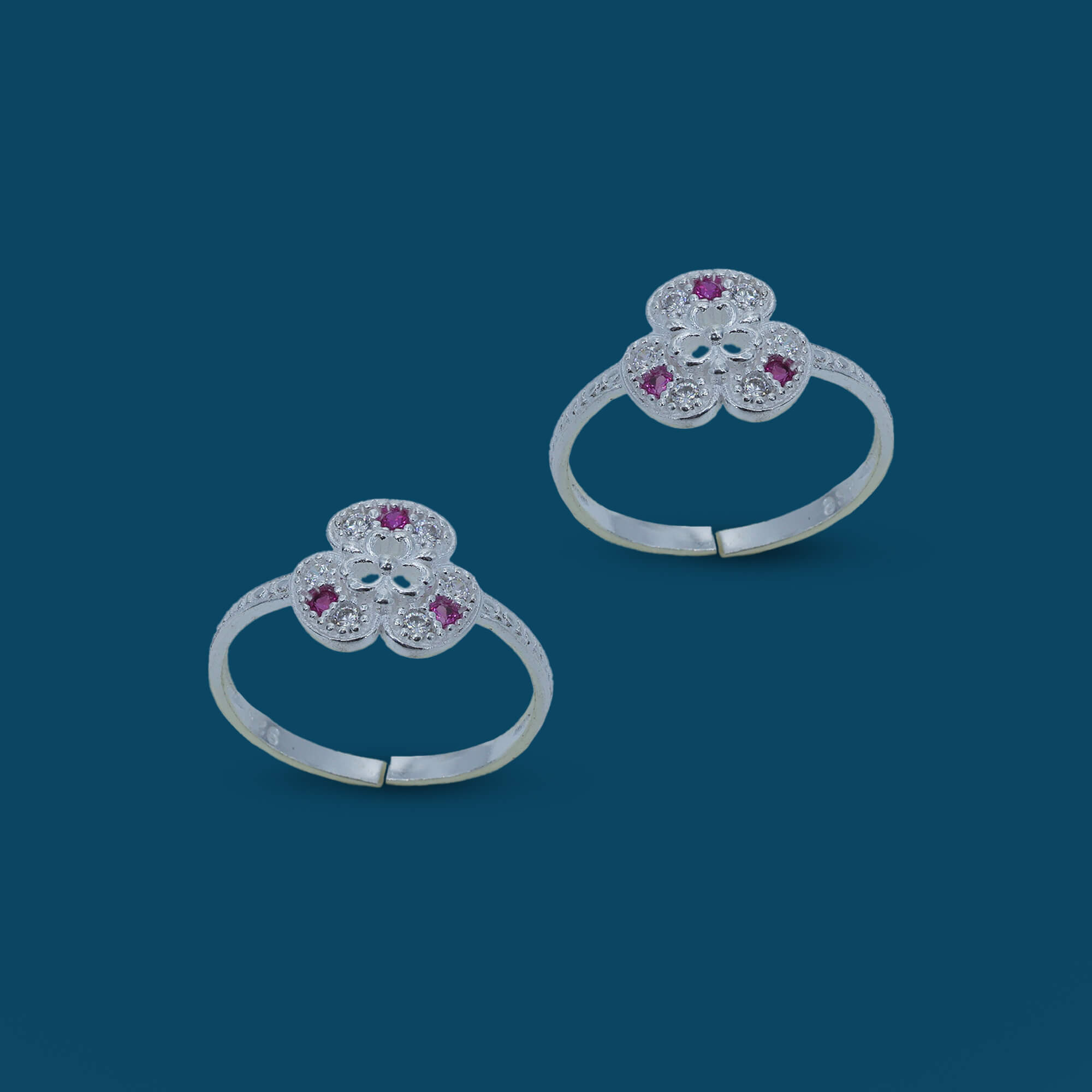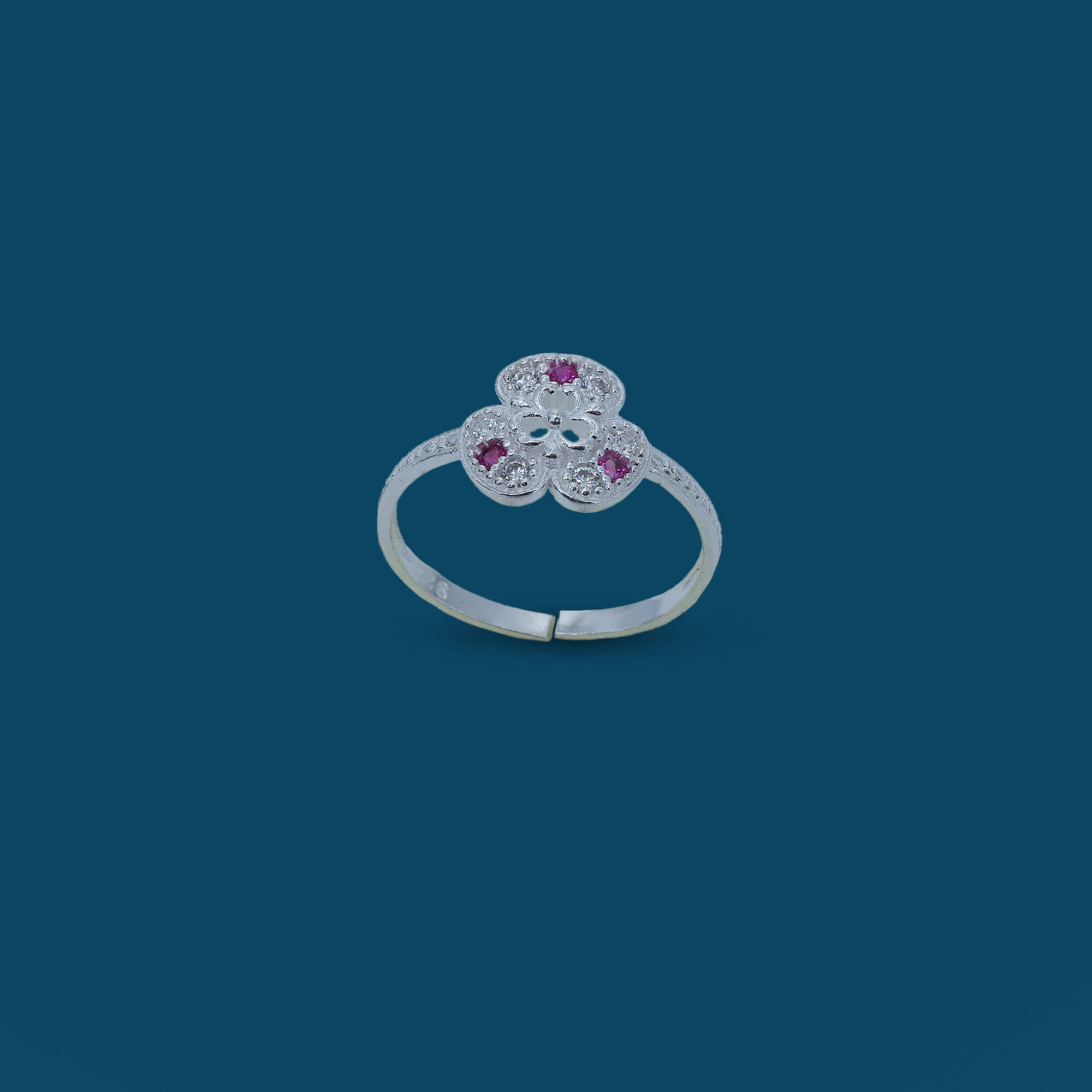 The Blooming Grace Toe Ring in 925 Silver features a delicate floral design adorned with white and pink micro CZ stones, adding a touch of elegance and sparkle. Crafted from high-quality sterling silver, this toe ring radiates feminine charm and grace, making it the perfect accessory for any occasion.