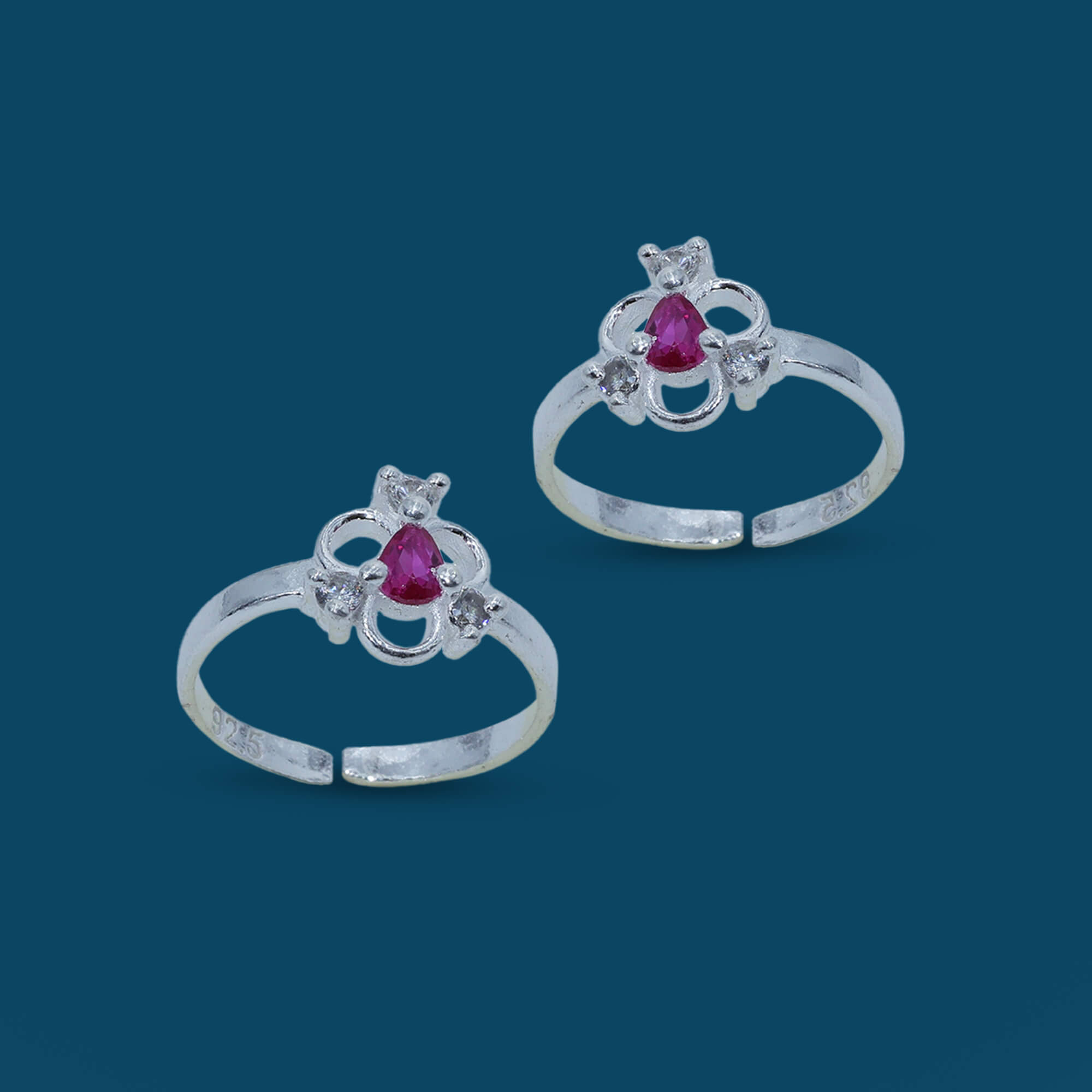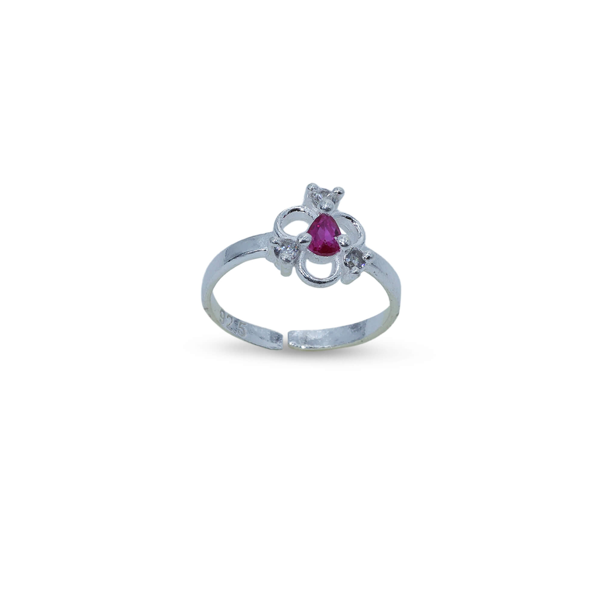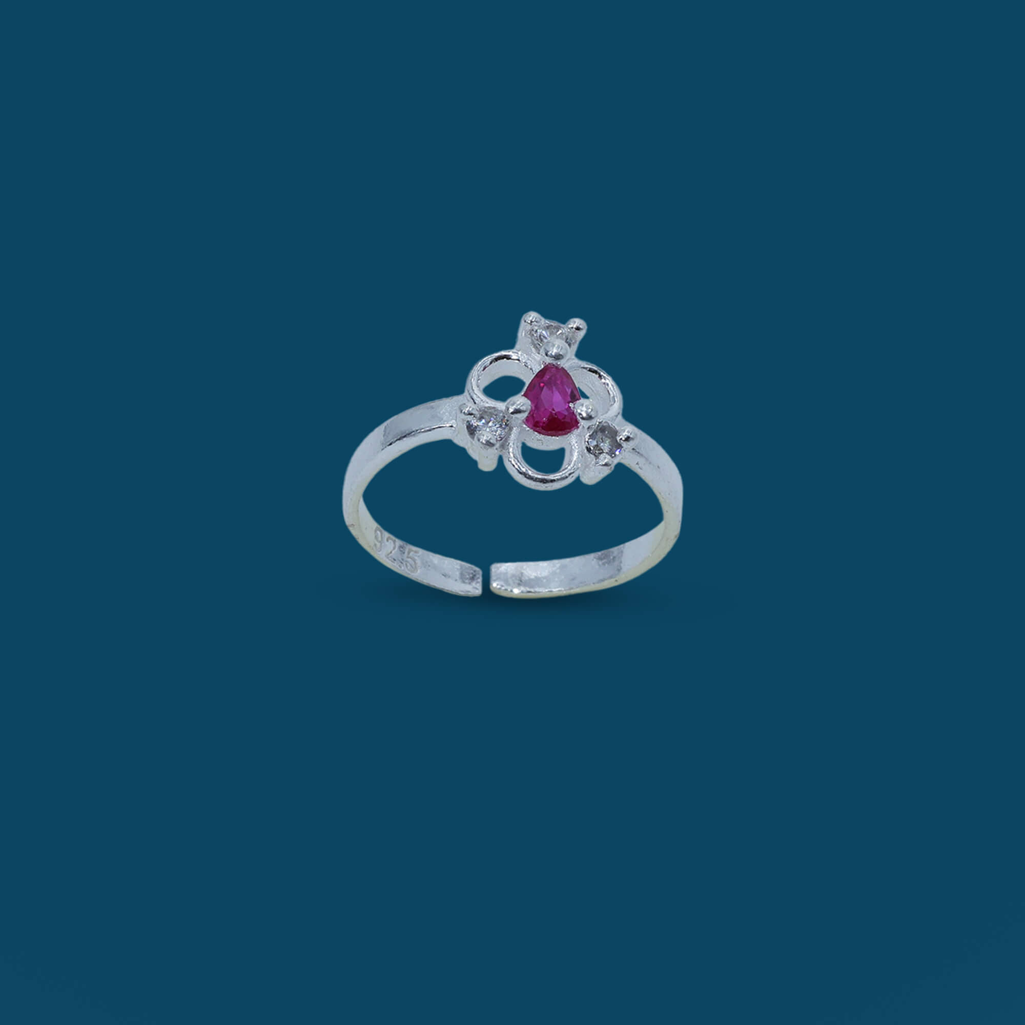 The Rosy Charm Toe Ring in 925 Silver features a beautifully crafted flower shape with a vibrant pink stone at its center. Made from high-quality sterling silver, this toe ring combines elegance and femininity, adding a delicate pop of color to any look. Perfect for adding a touch of charm and grace to your style.