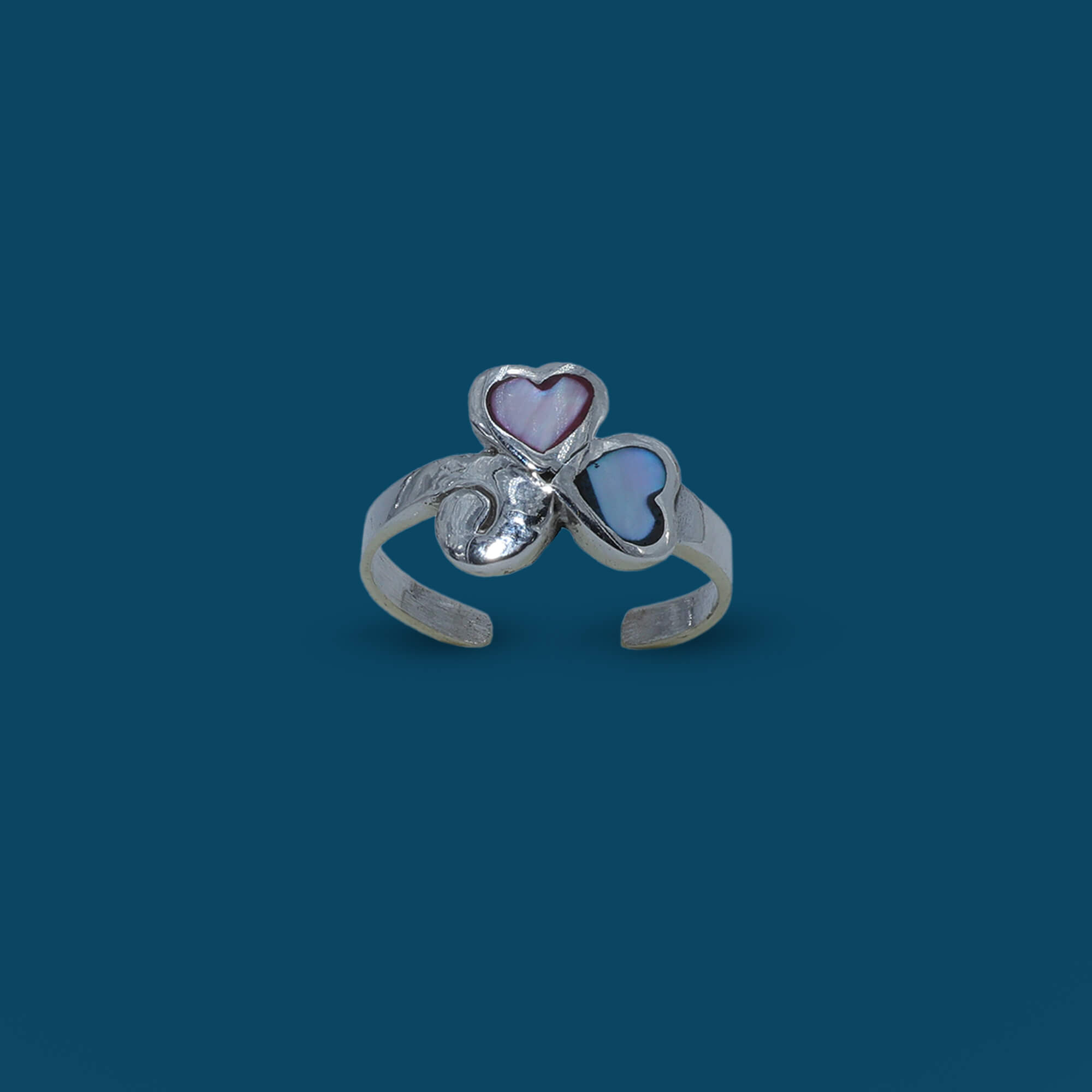 This charming sterling silver toe ring features two delicate hearts in soft pink and blue, symbolizing love and serenity. With a polished finish and adjustable fit, it’s the perfect accessory for adding a subtle touch of romance and color to any outfit, from beach days to casual nights out.