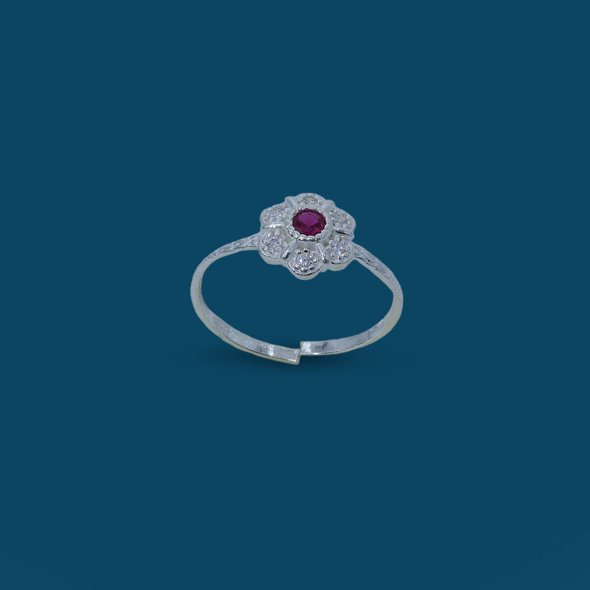 Crafted in 925 sterling silver, the Petal Glow Toe Ring features a vibrant red center stone surrounded by delicate white micro CZ stones. Its floral-inspired design captures timeless elegance and adds a subtle yet stunning sparkle to any look.