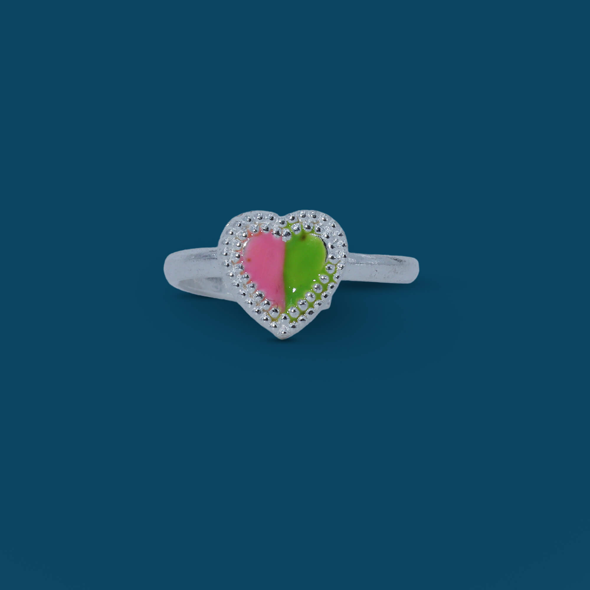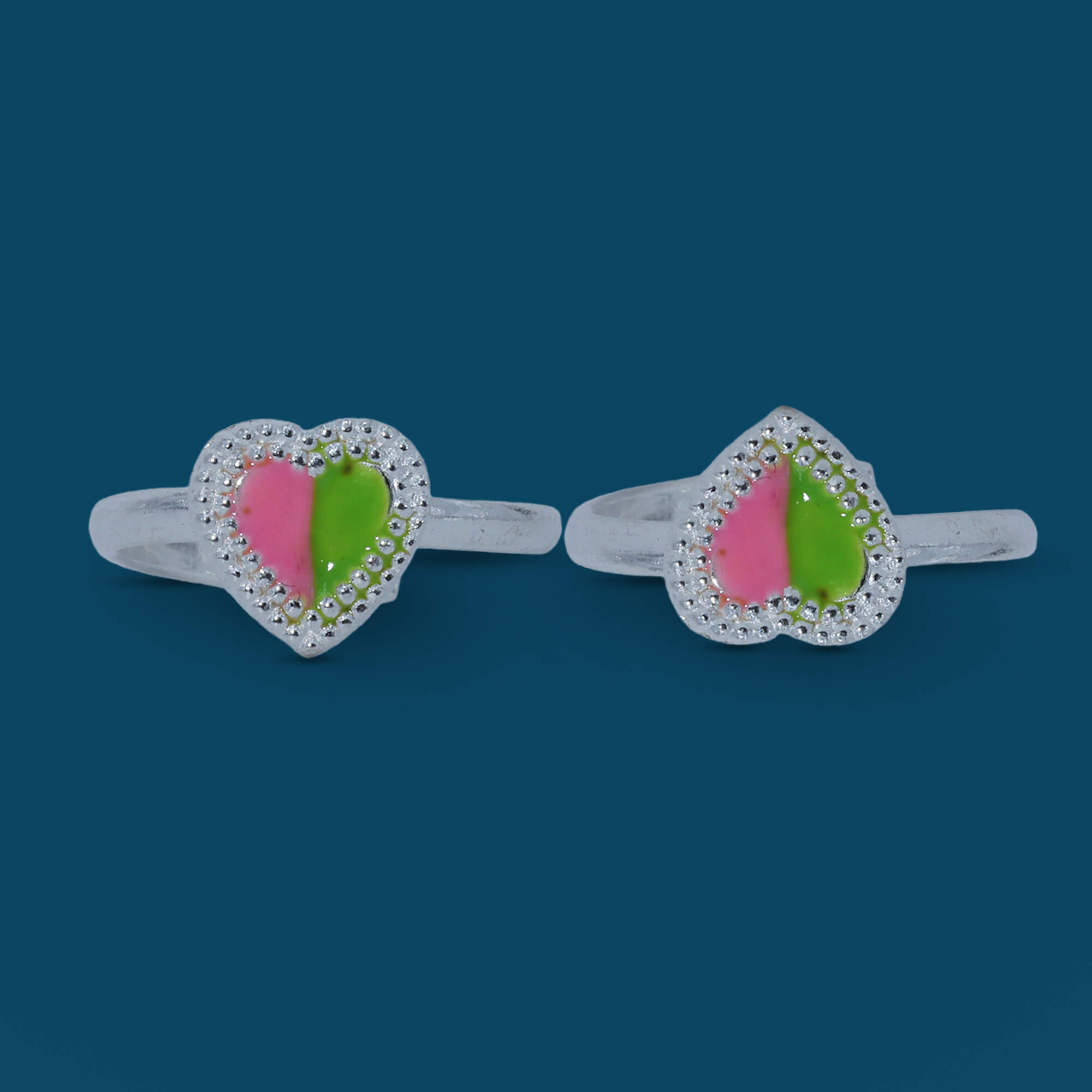 The Two-Tone Love Toe Ring in 925 Silver features a unique half green, half pink heart design, symbolizing harmony and love. Crafted from high-quality sterling silver, this toe ring combines vibrant colors with timeless elegance, making it a perfect accessory for adding a touch of romance and color to your style.